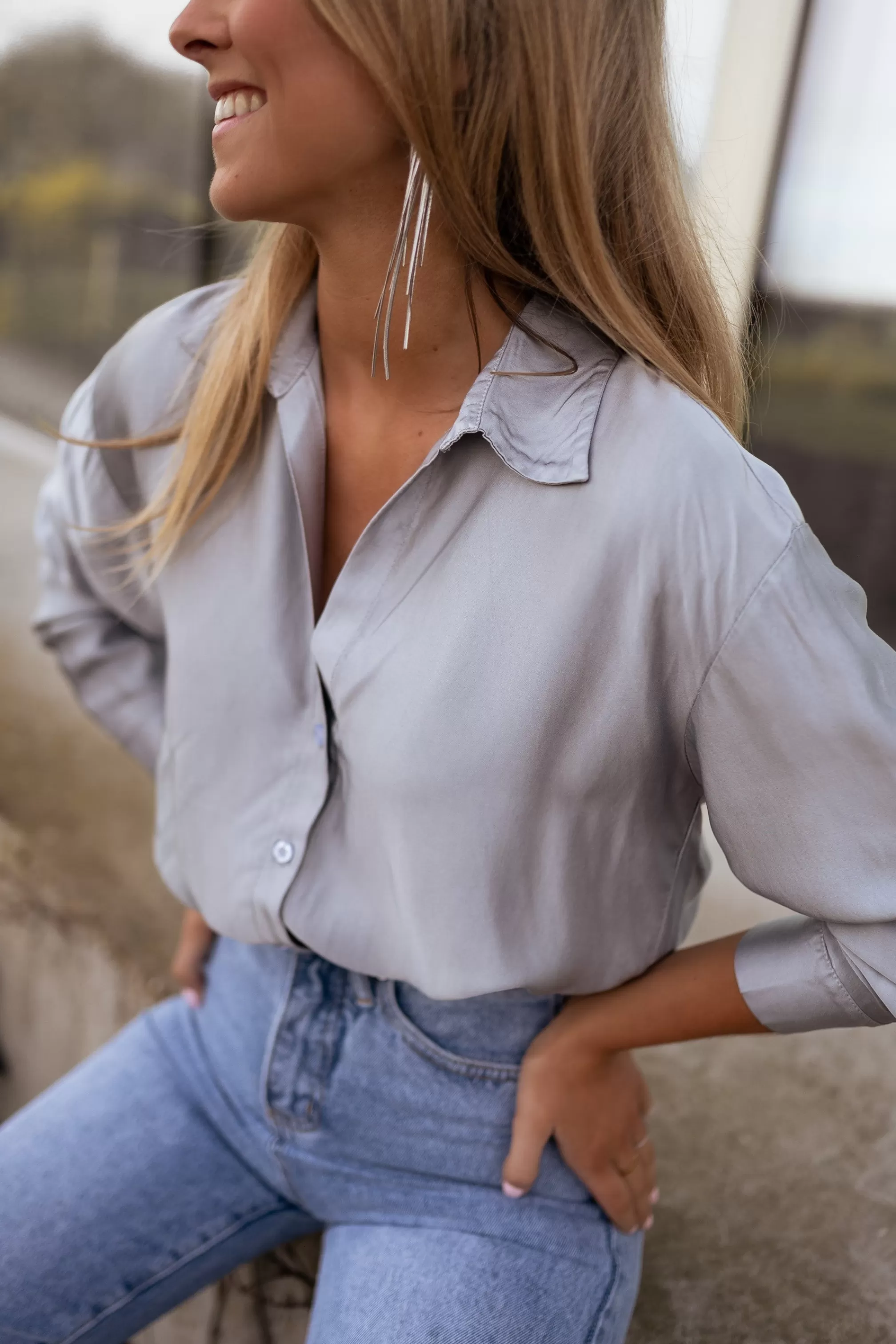 Silk shirt Shirt collarFluidLong sleevesDetachable buttons SoftNot lined Not tr…