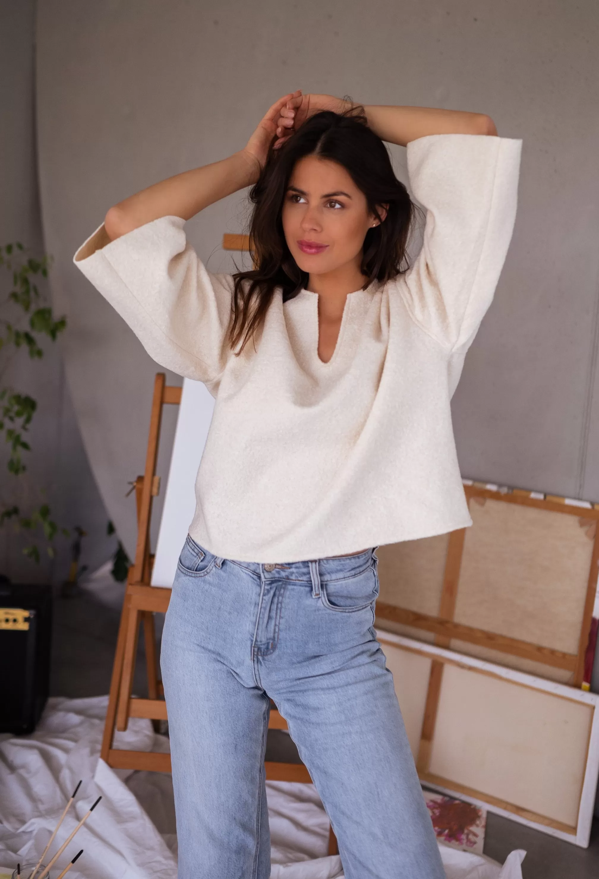 V-neckSlightly looseOphélie is 1m68, Larissa is 1m74 and both usually wear a size SLong sligh…