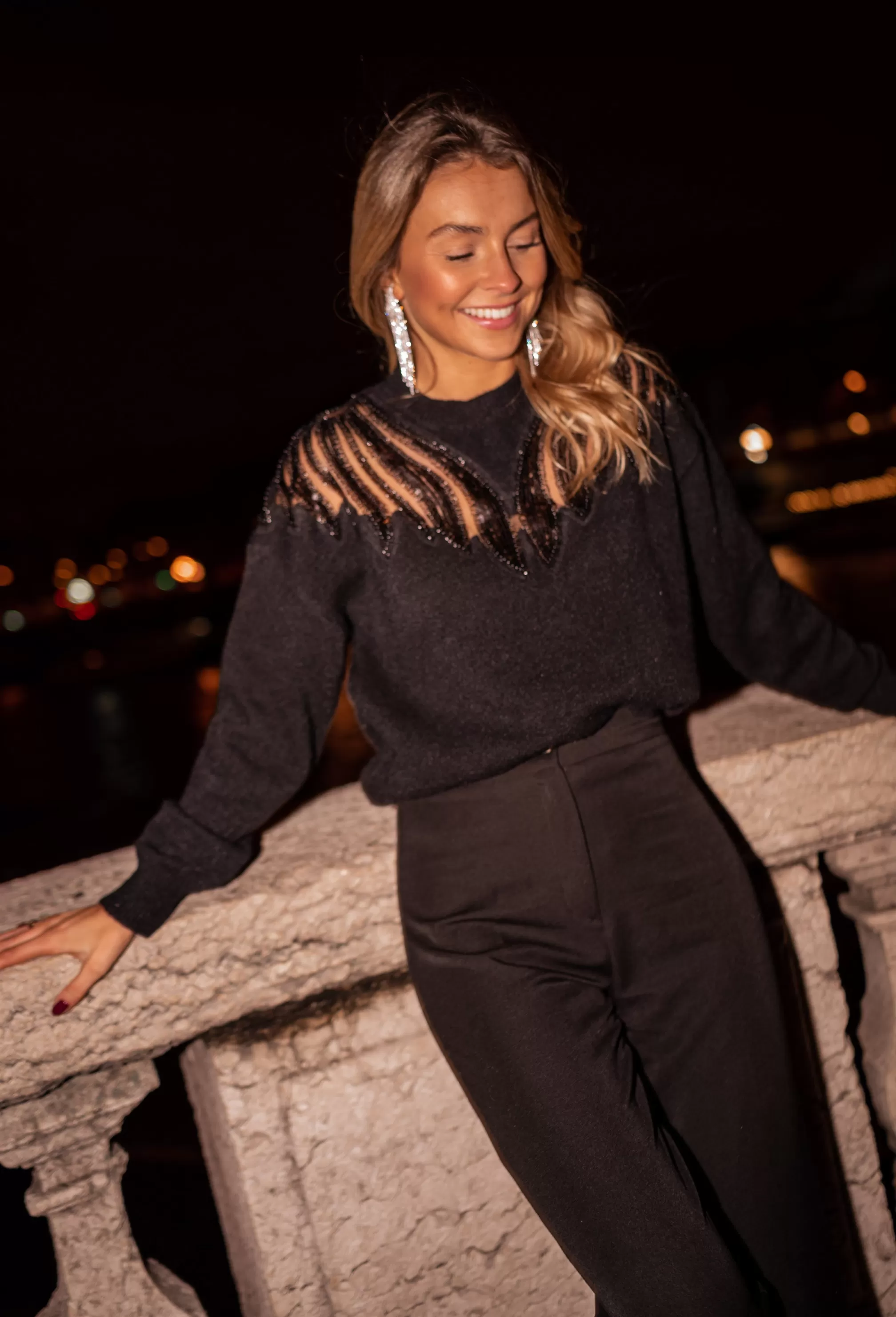 Glitter and pearls on the bust and shouldersCrewneck Ophélie is 1m68 and usually wears a…