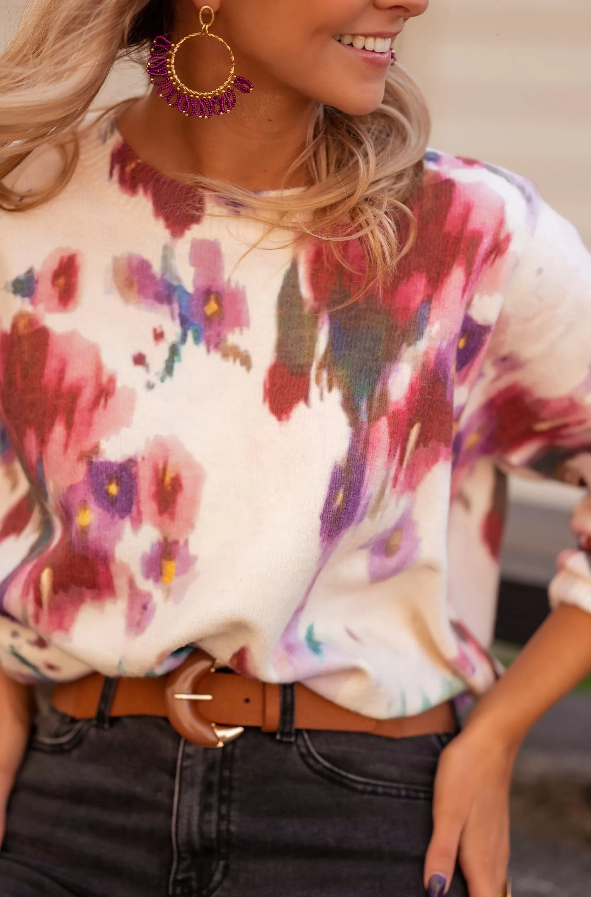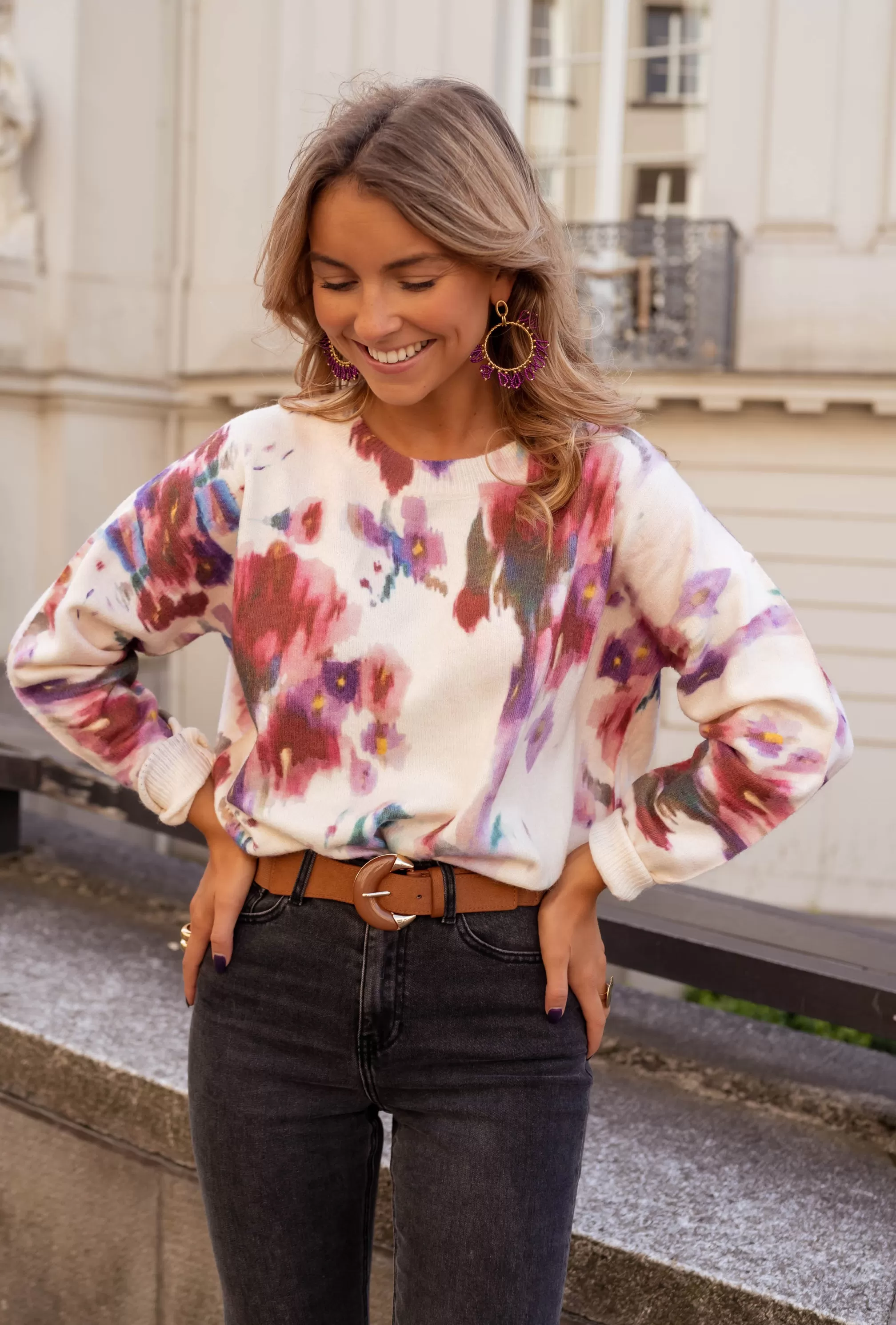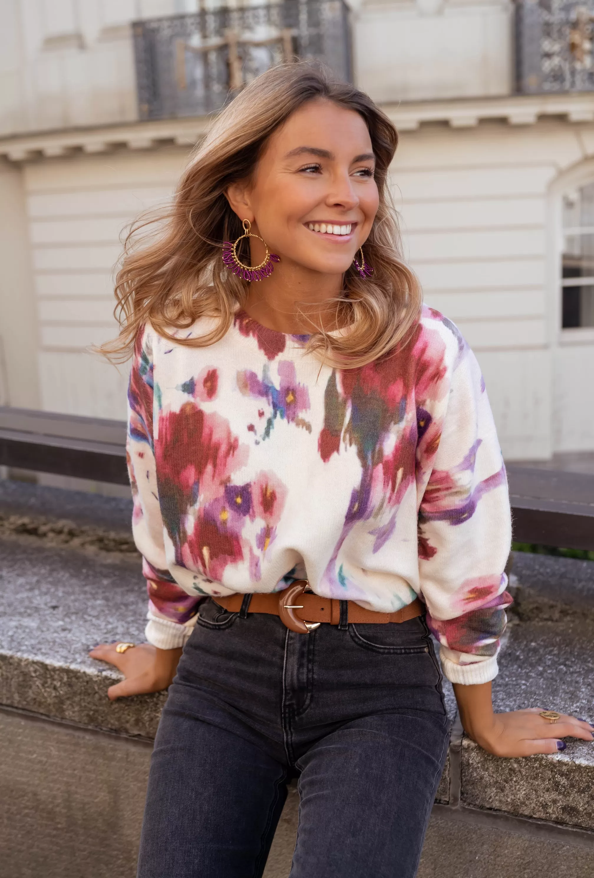 Long sleevesCrewneckFloral patternSoftOphélie is 1m68 and usually wears a size S / Kénia is …