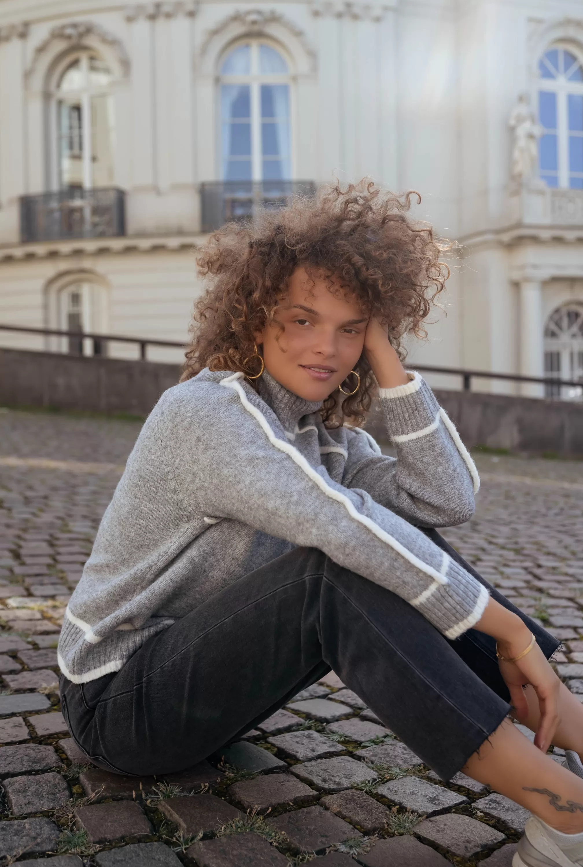 Long sleevesMockneck Slightly loose cutSoftGrey and ecruSizes : S-M / M-LS-M : Length 55 …