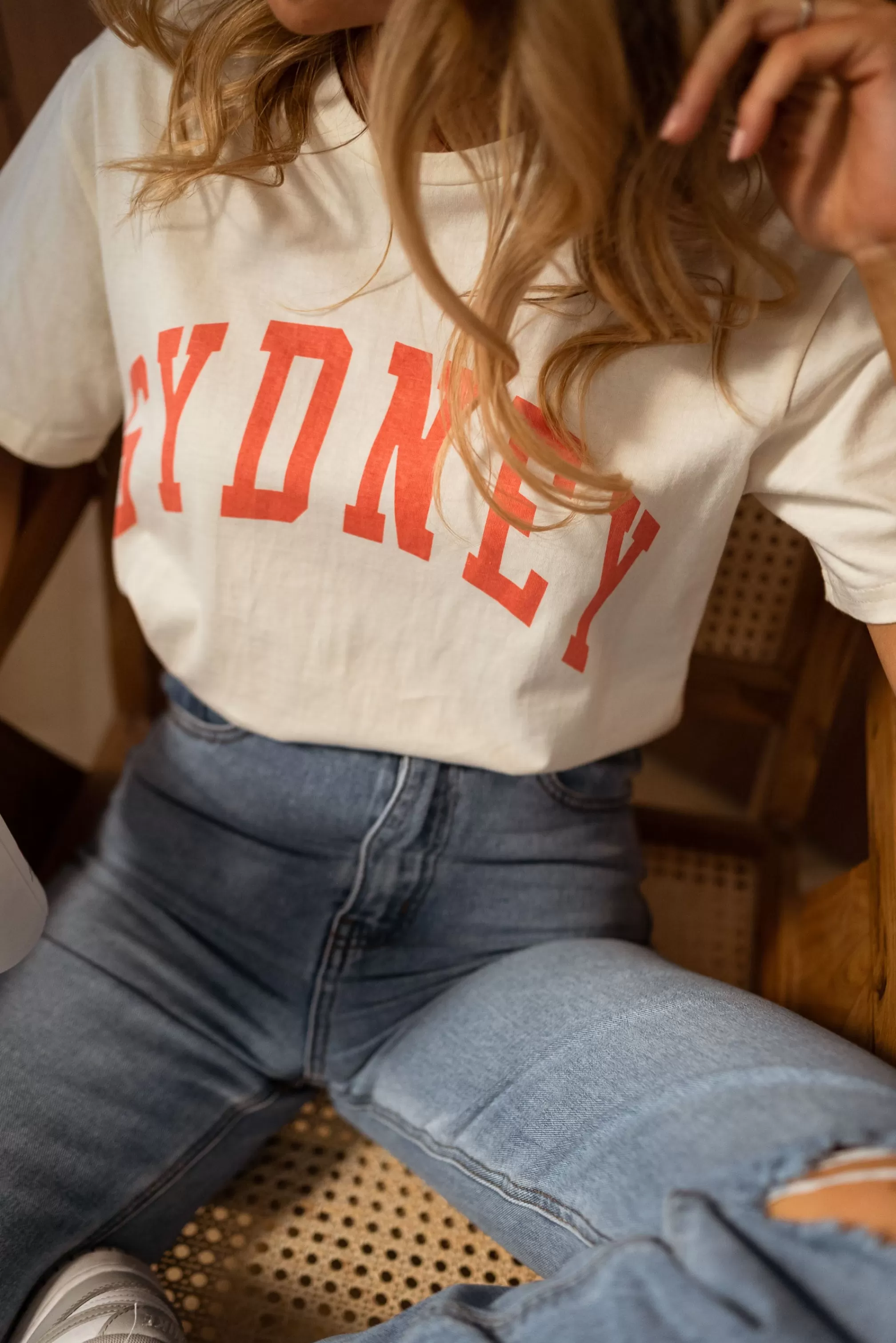 Shirt sleeves“SIDNEY” writings in orange Ophélie is 1m68 and wears a size SCrewneckO…
