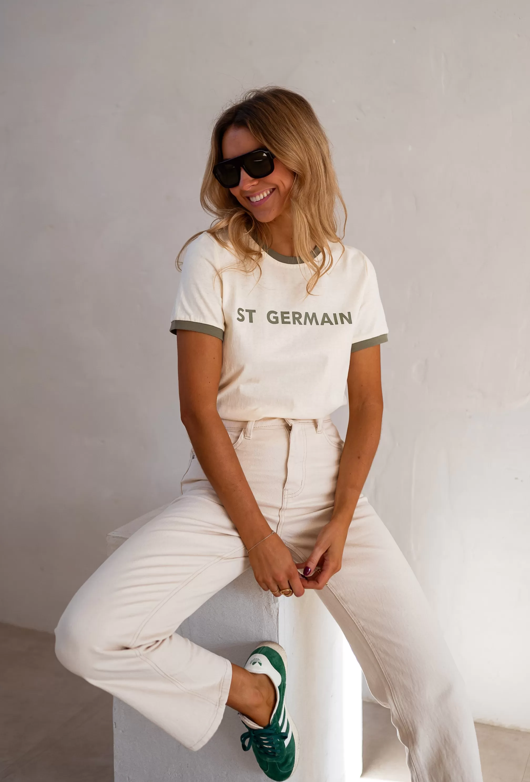 Crewneck with khaki edgeOphélie is 1m68 and wears a size S Short sleeves with khaki edges W…