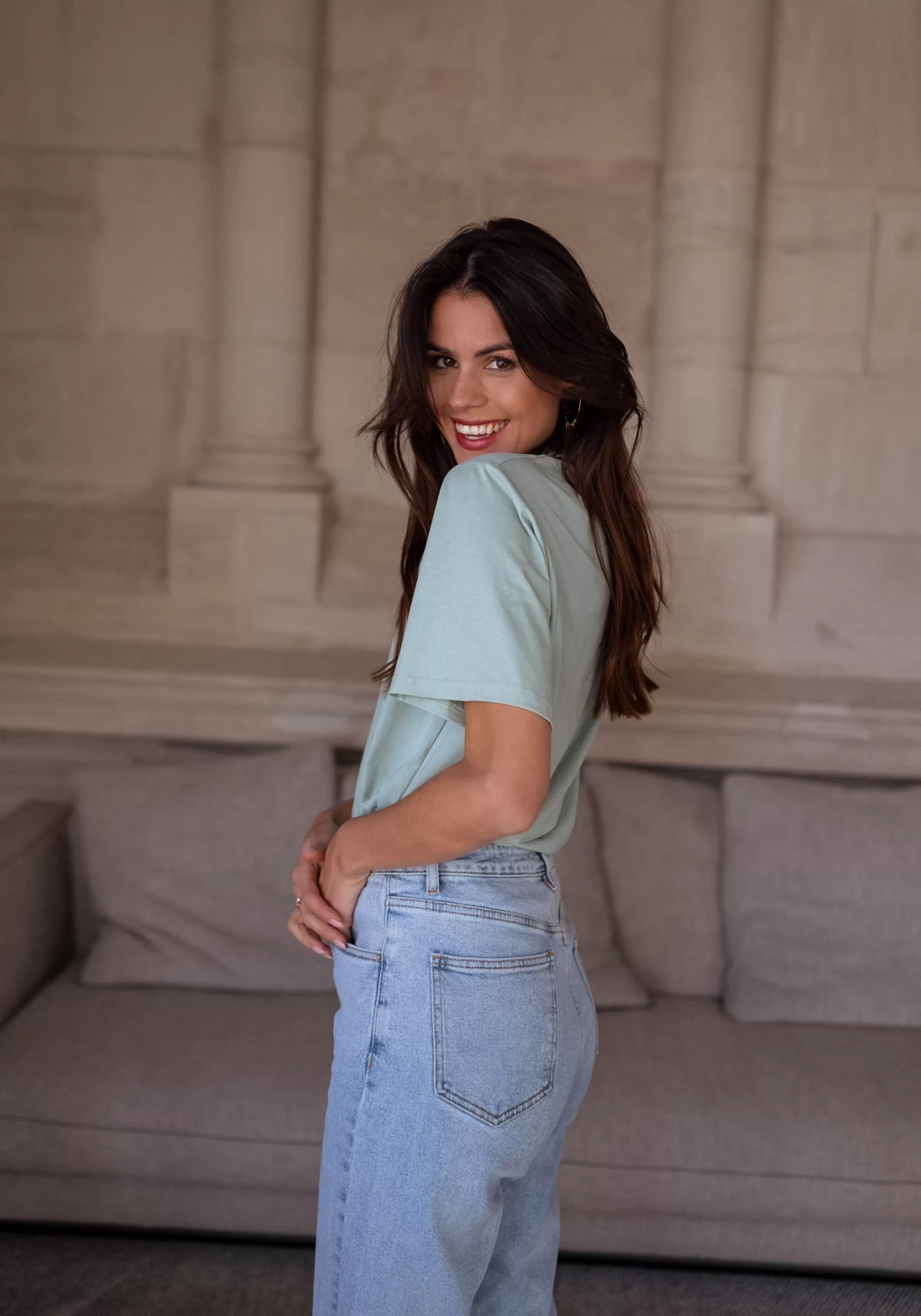 Short sleevesColors : sea green Ophélie is 1m68, Larissa is 1m74 and both wear a size S&…