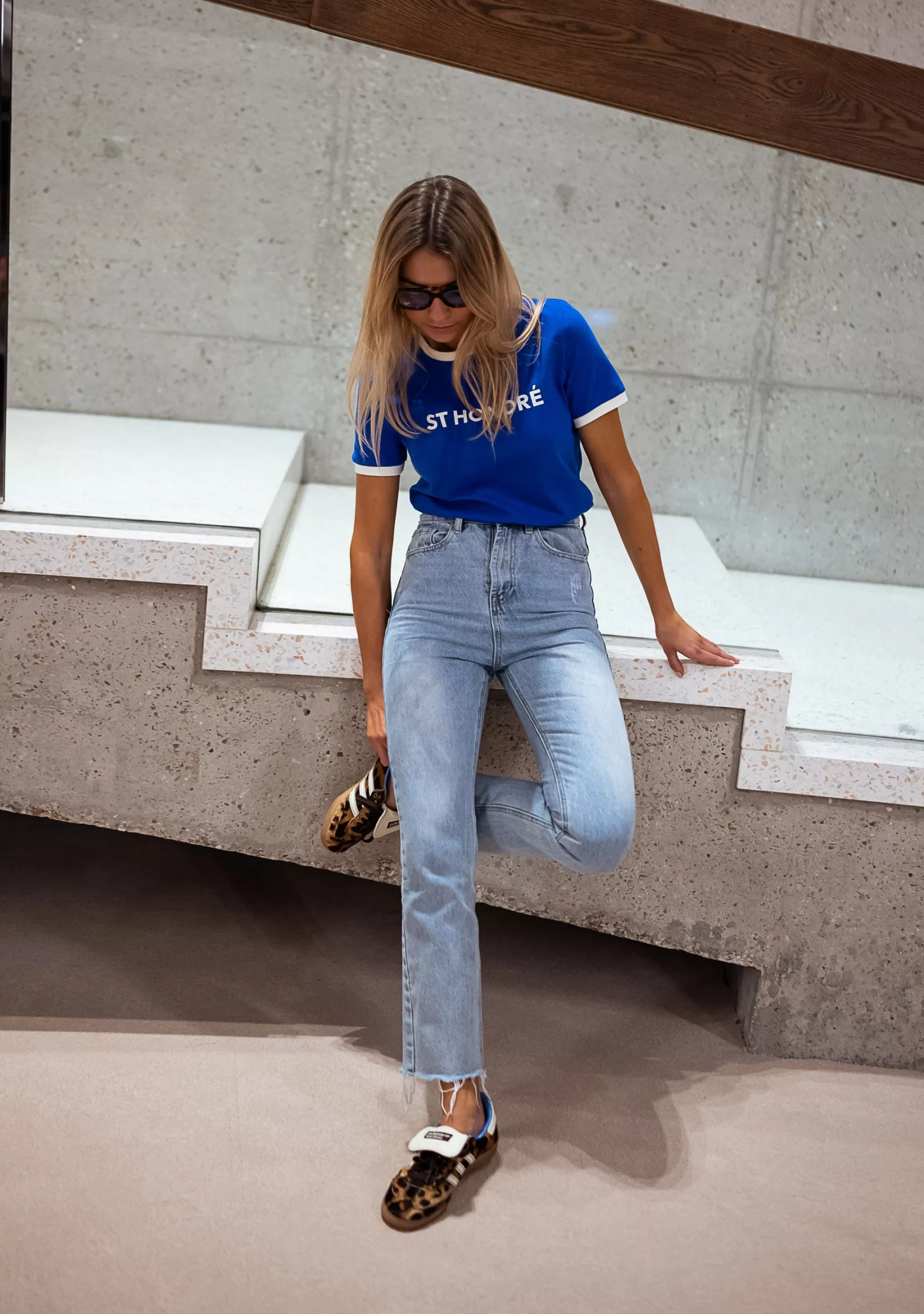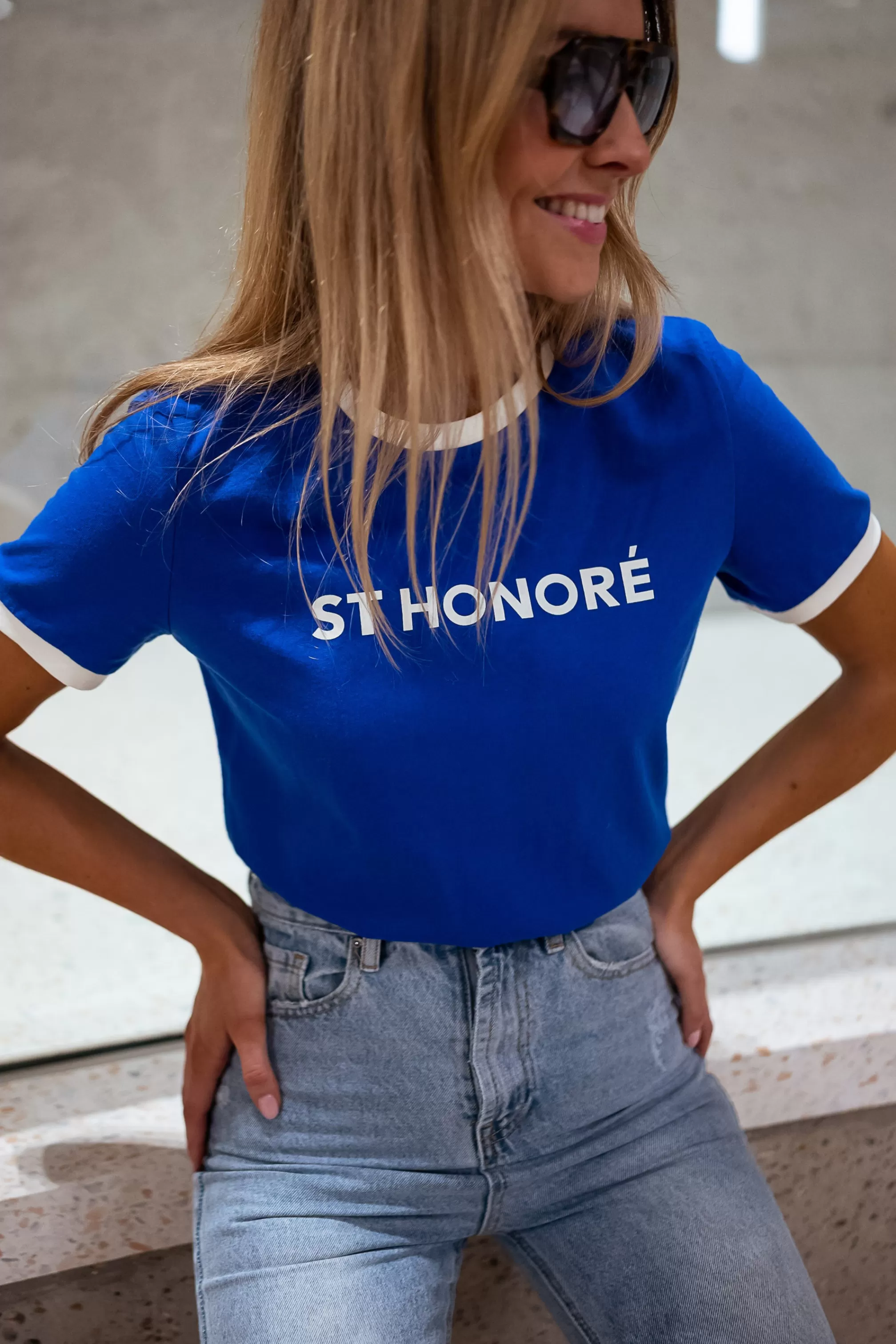 Crewneck with white edgeOphélie is 1m68 and wears a size S Short sleeves with white edge…
