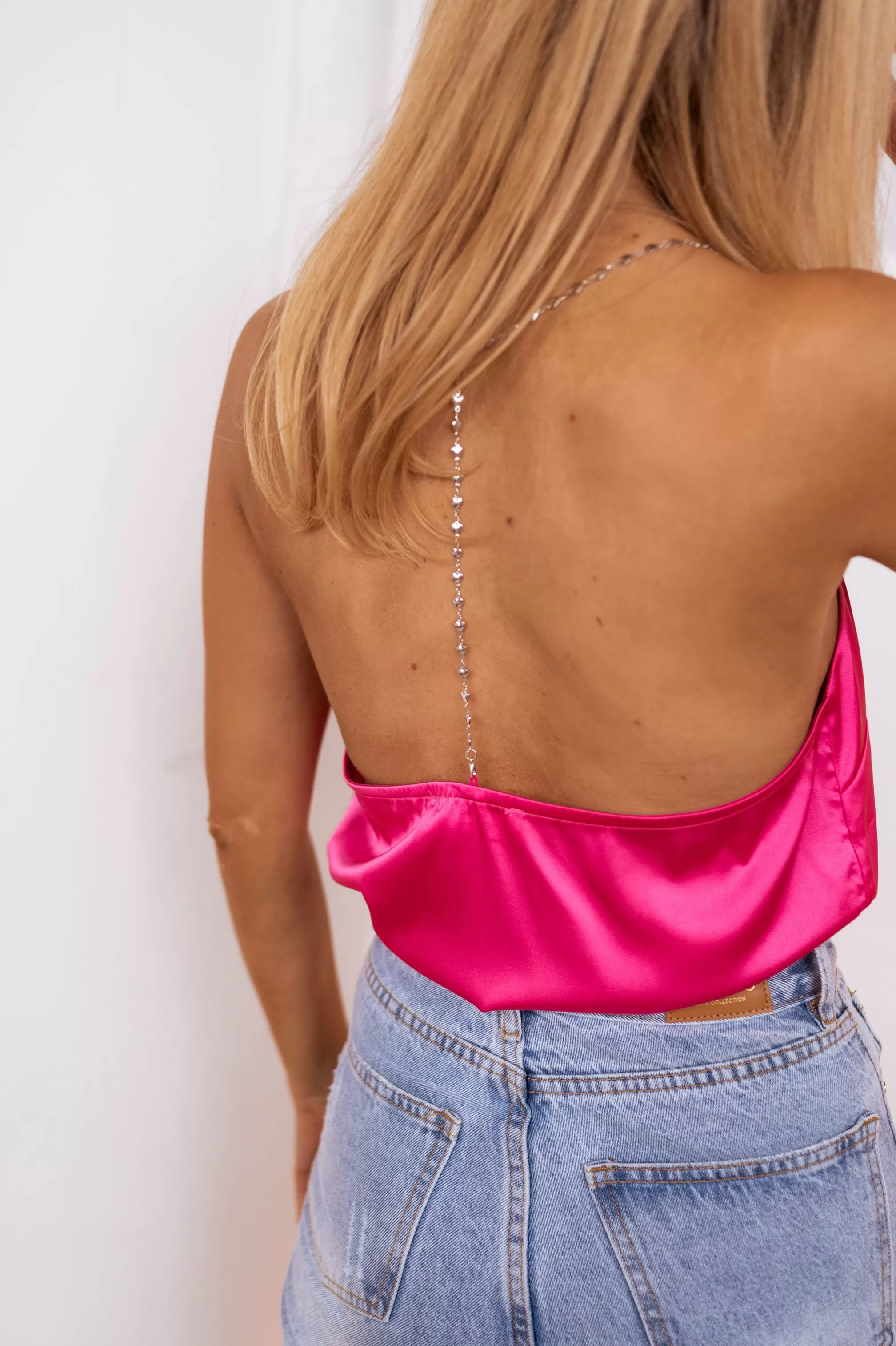 Silvery heart shaped strapsDETACHABLE strapsSatin effectV-neckSizes : S / M / LS : Length 47 c…