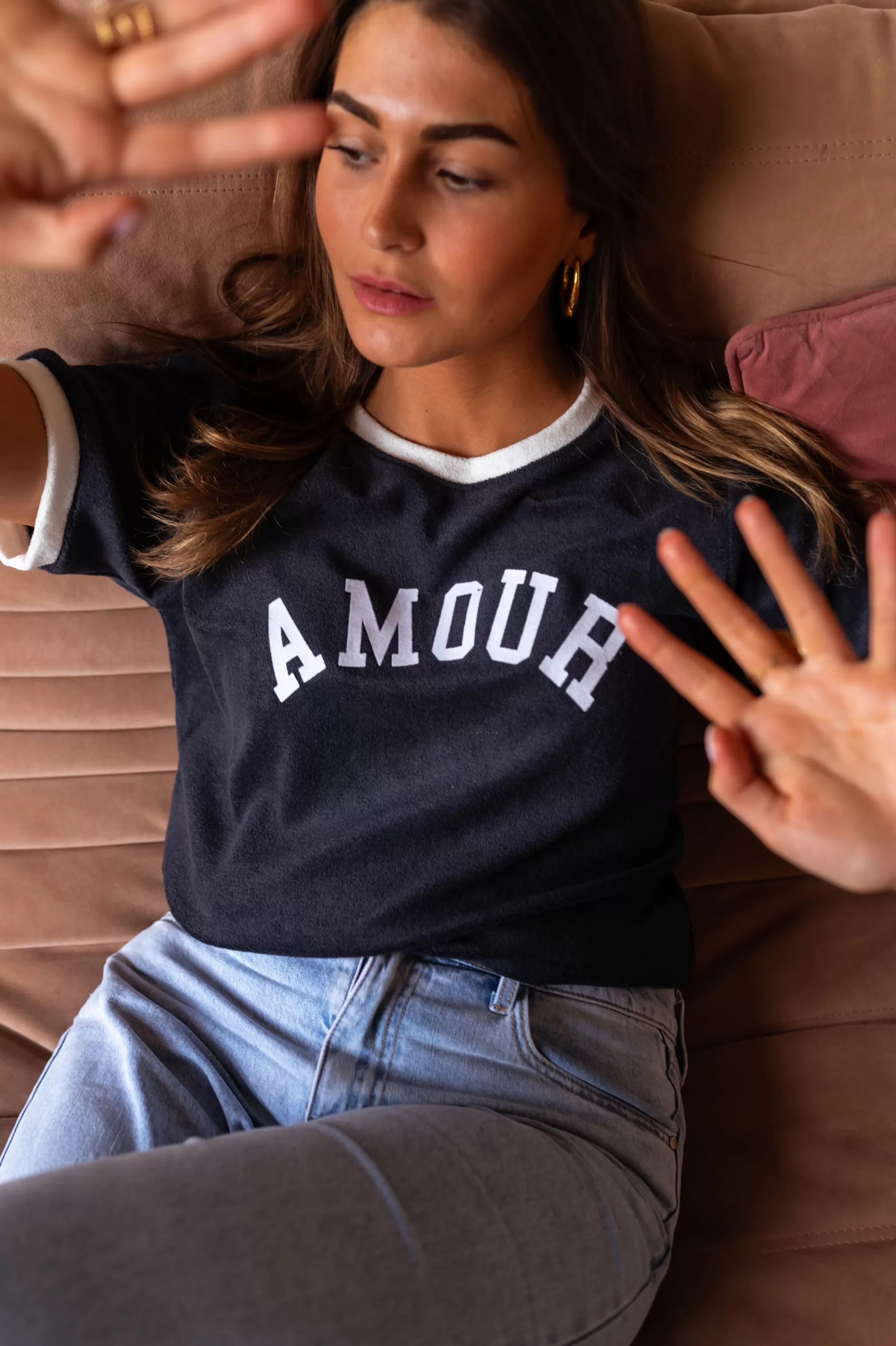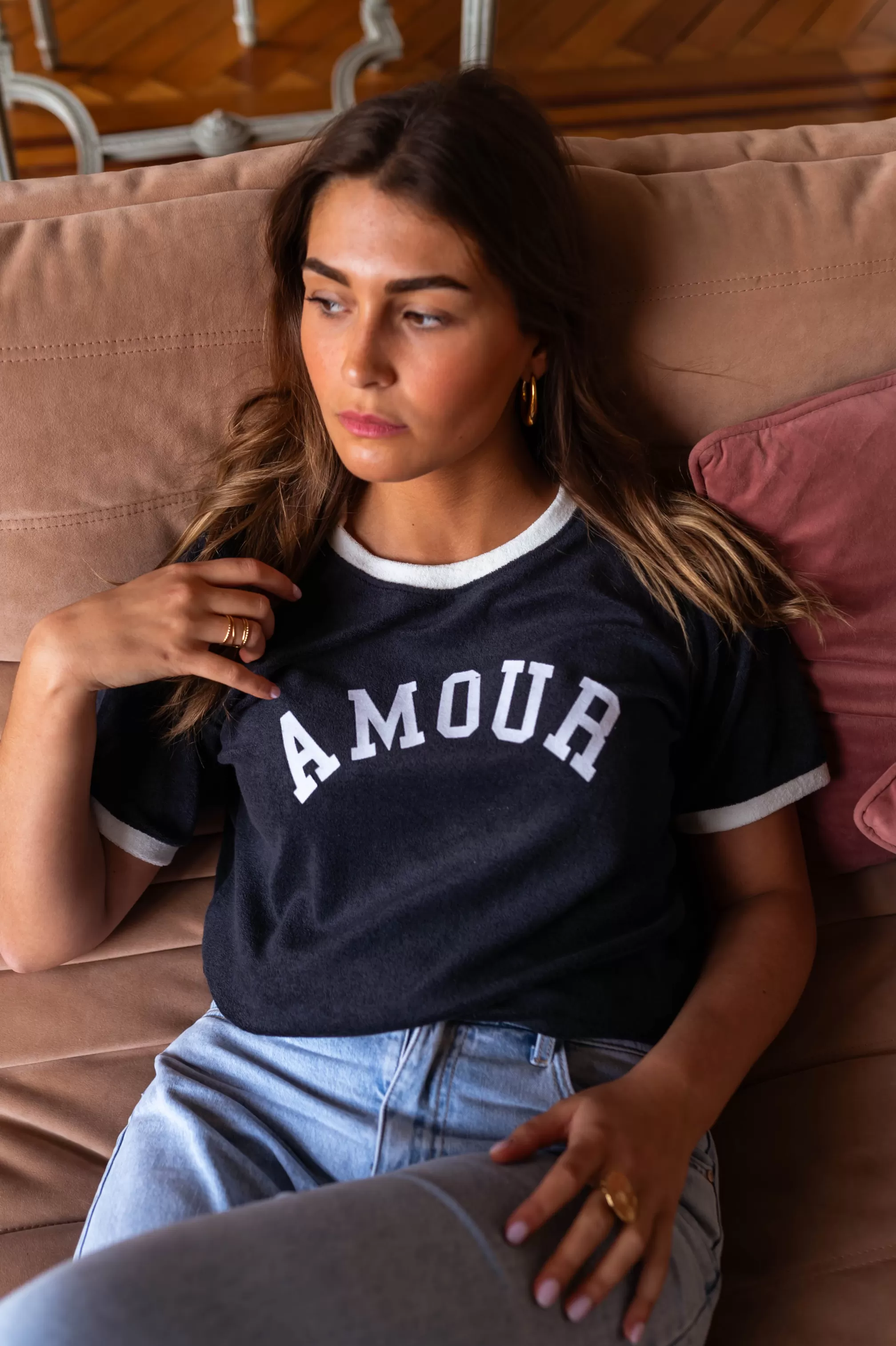 Crewneck with white edgeOphélie is 1m68 and wears a size S-MManon is 1m69 and wears a size M-…