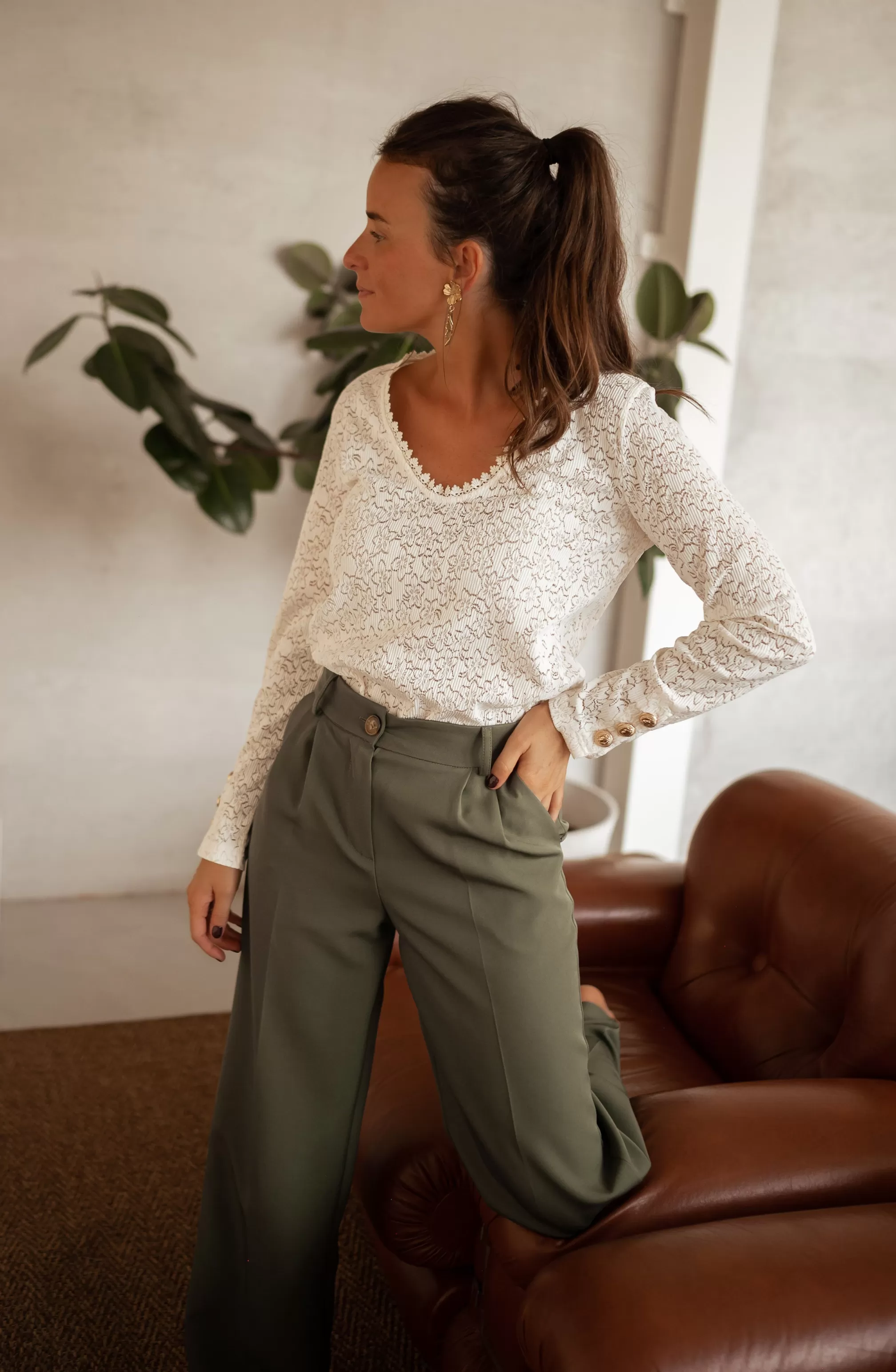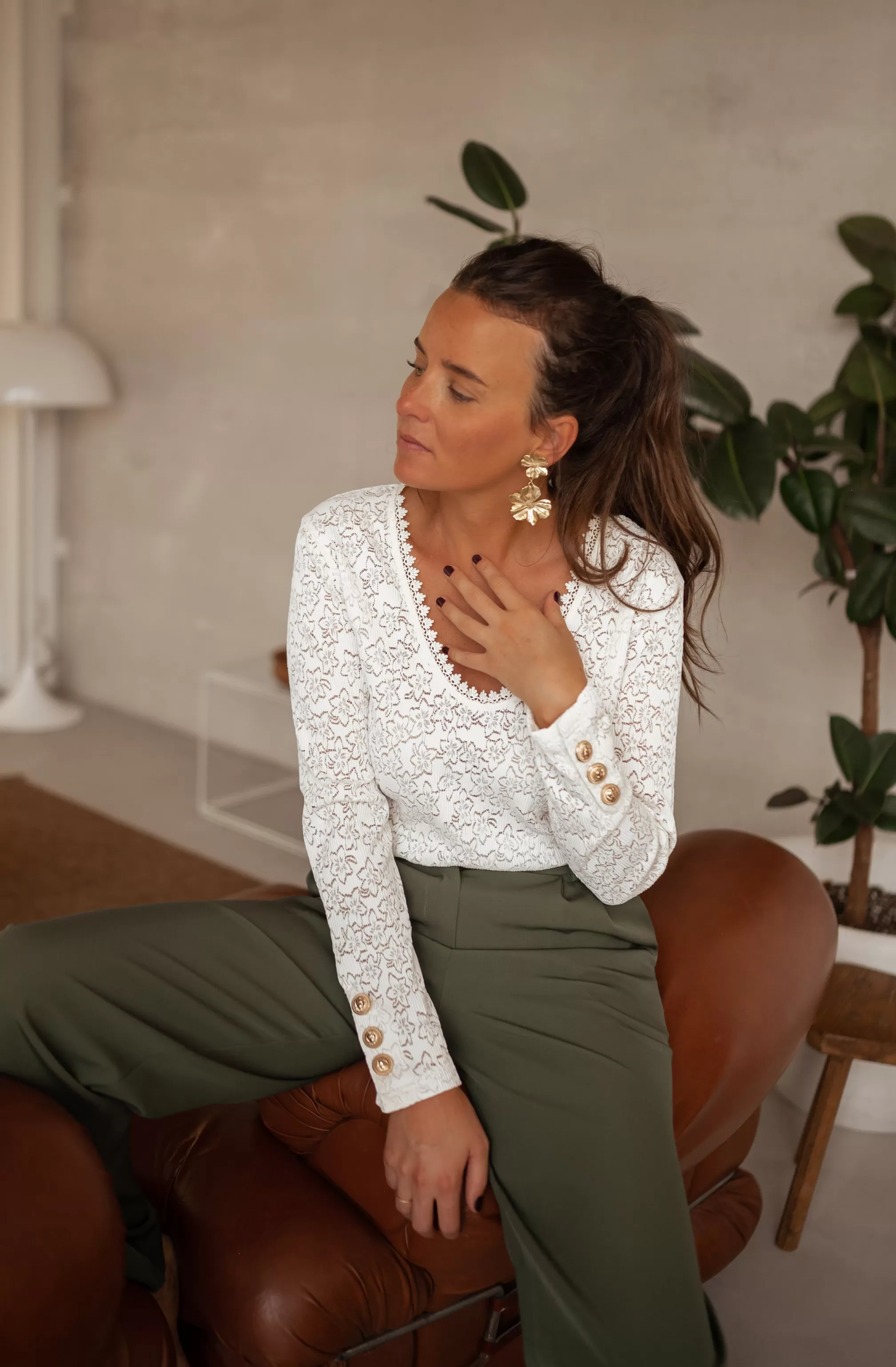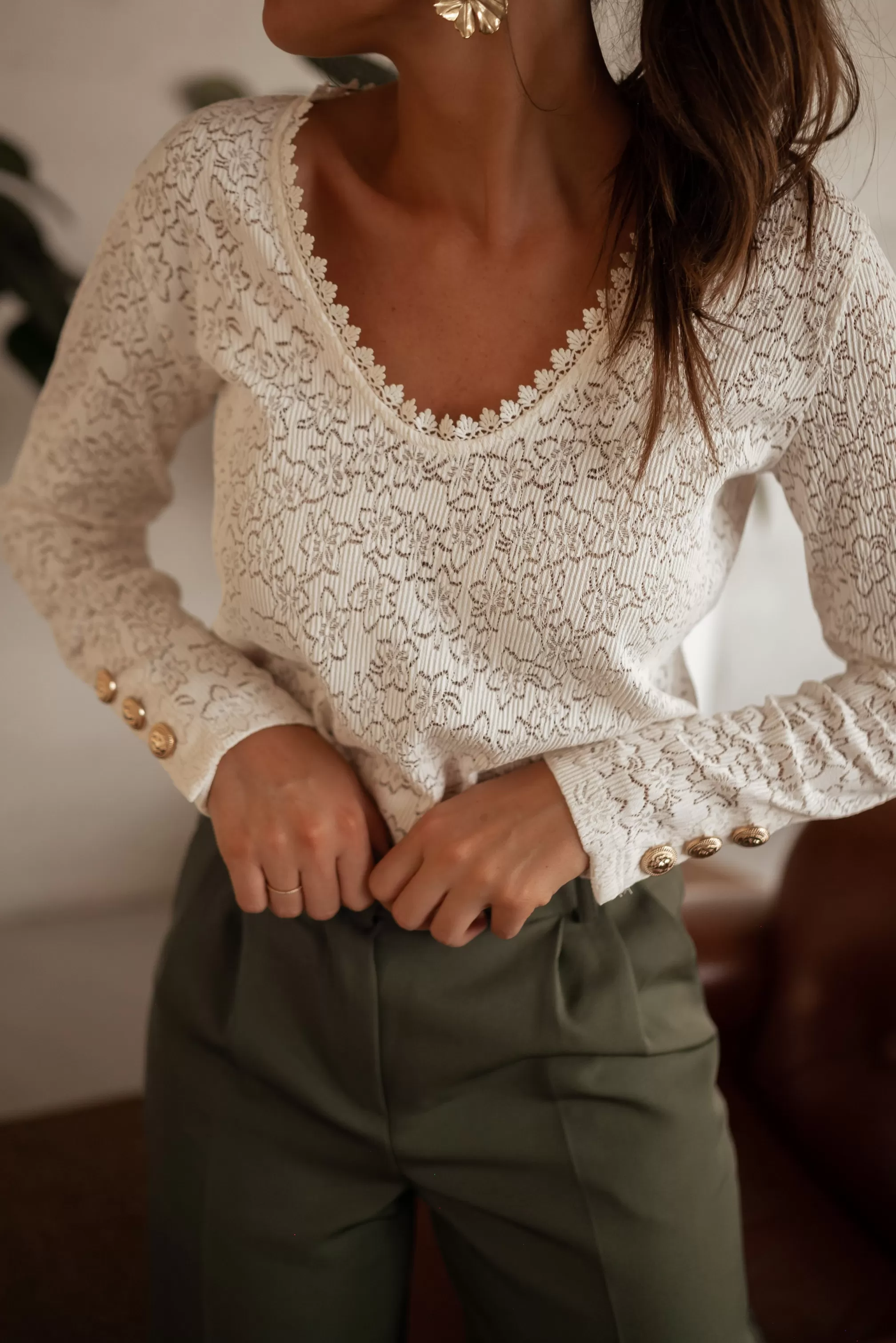 Long sleevesLaceV-neck with embroidery3 golden buttons on the sleevesSizes : S-M / M-LS-M : Le…