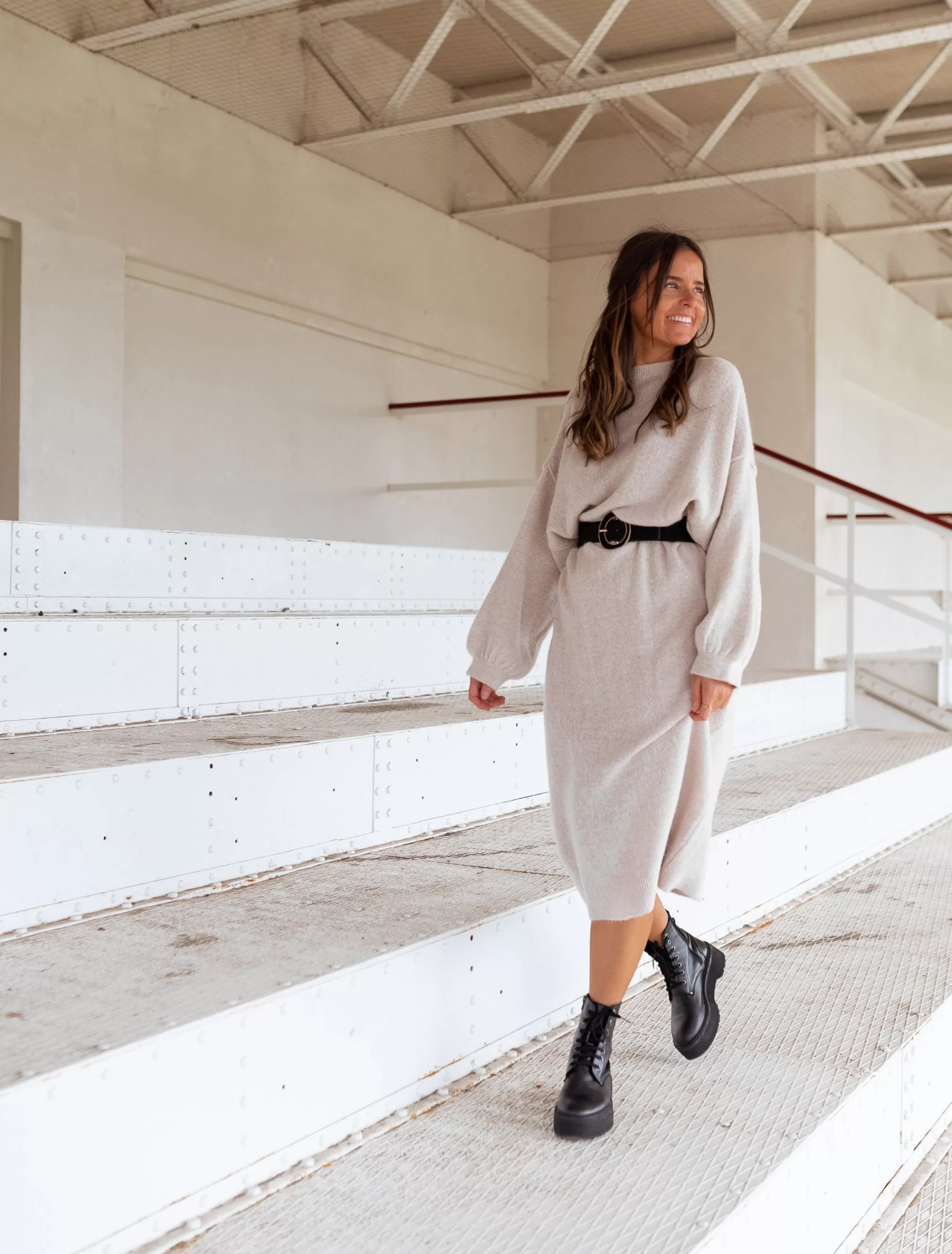- Golden finish on round buckle