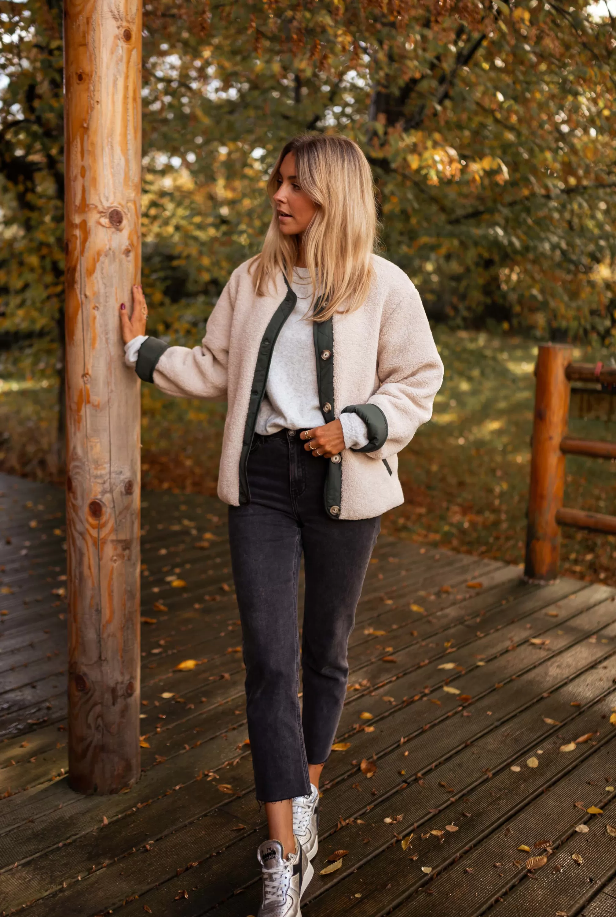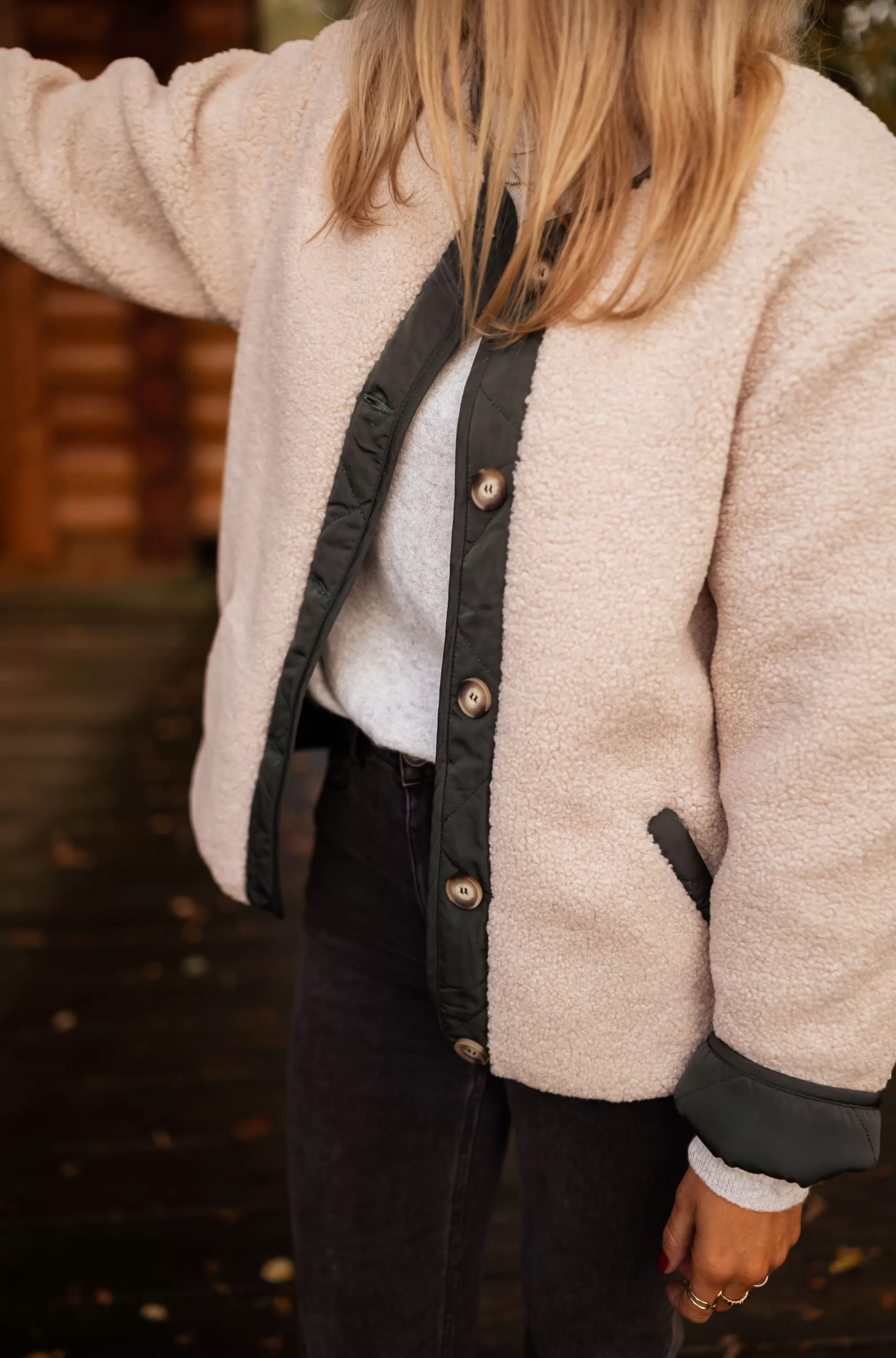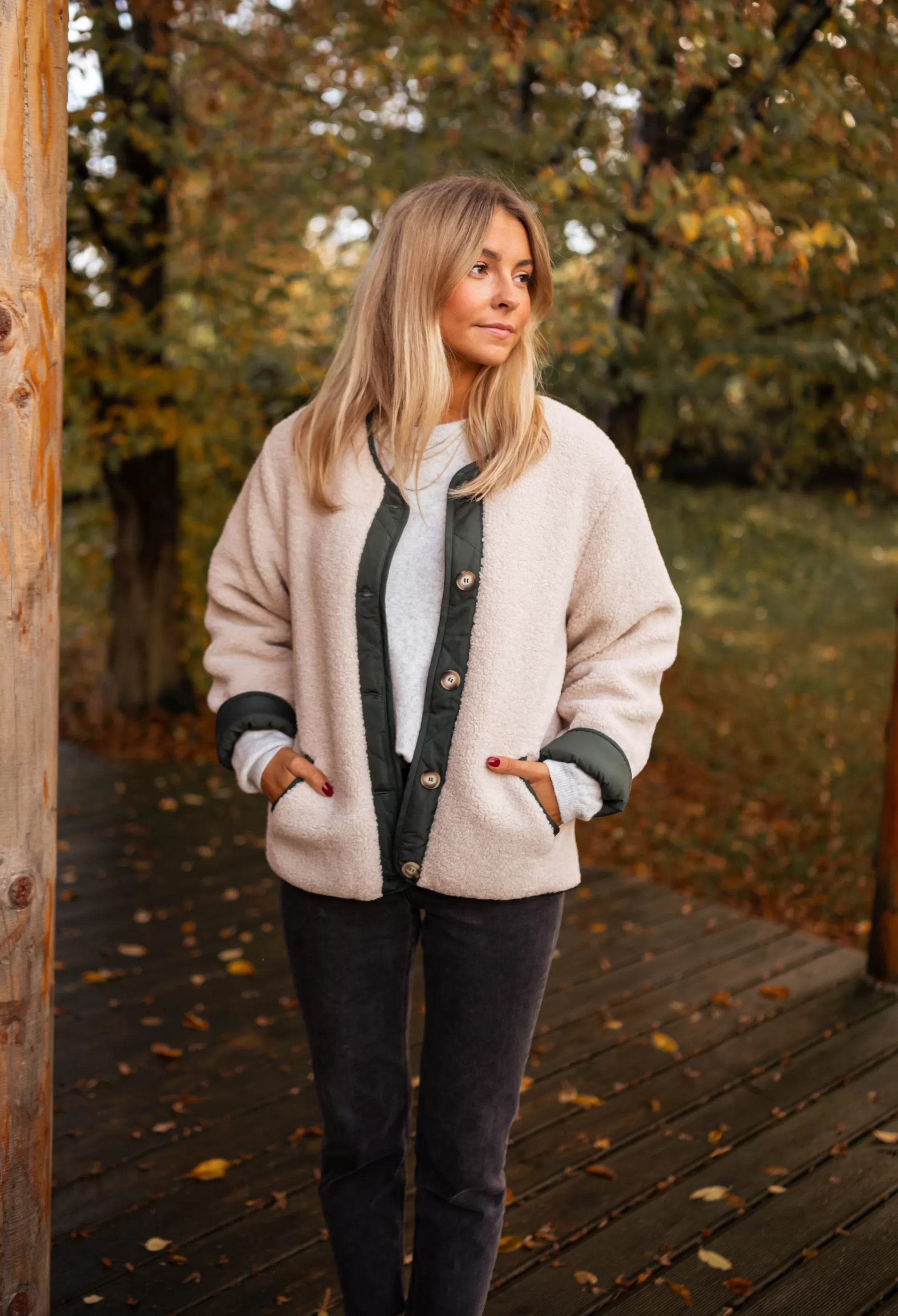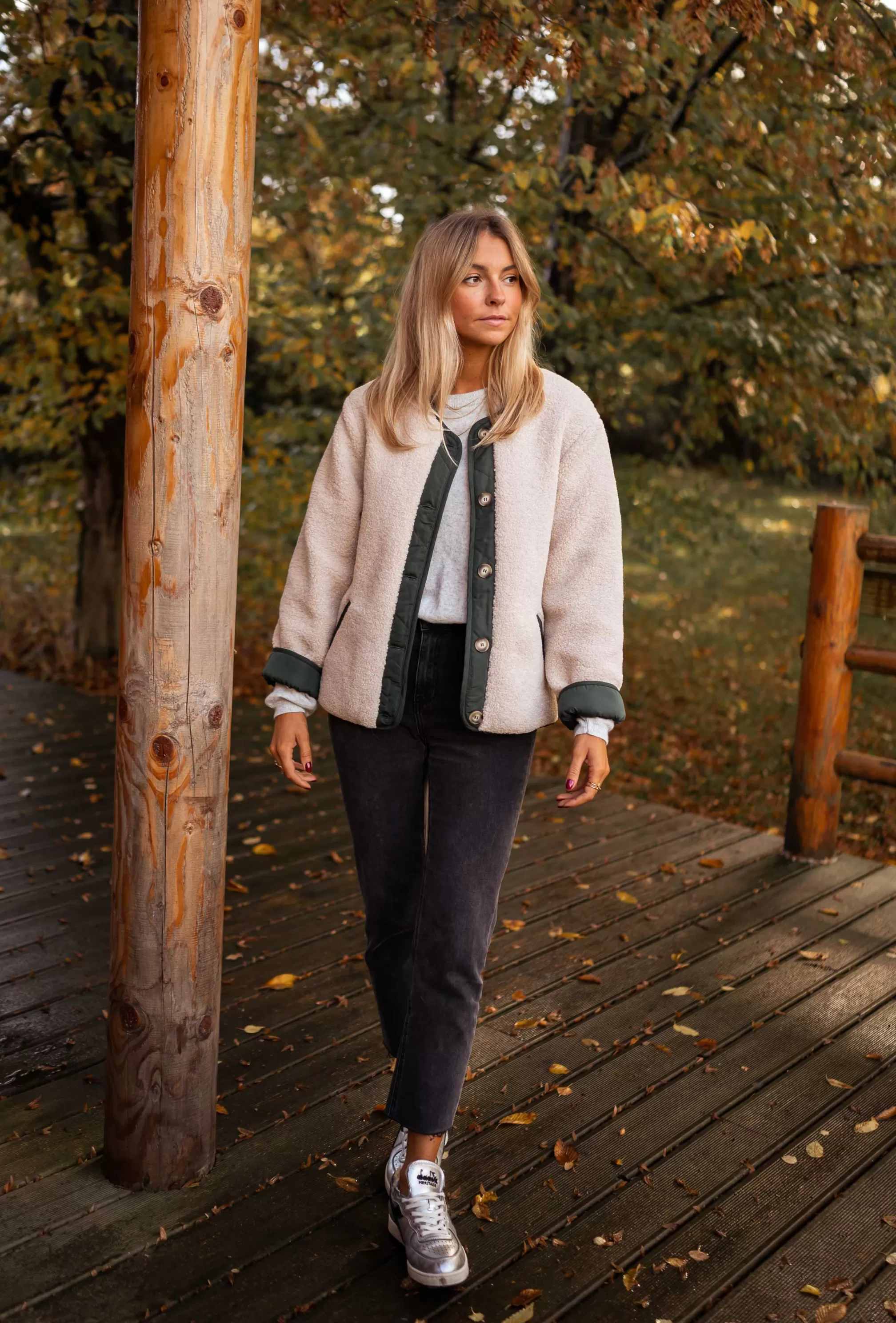 Long sleeves Quilted effect on the green partBeige faux-sheepOphélie is 1m68 and wears a…