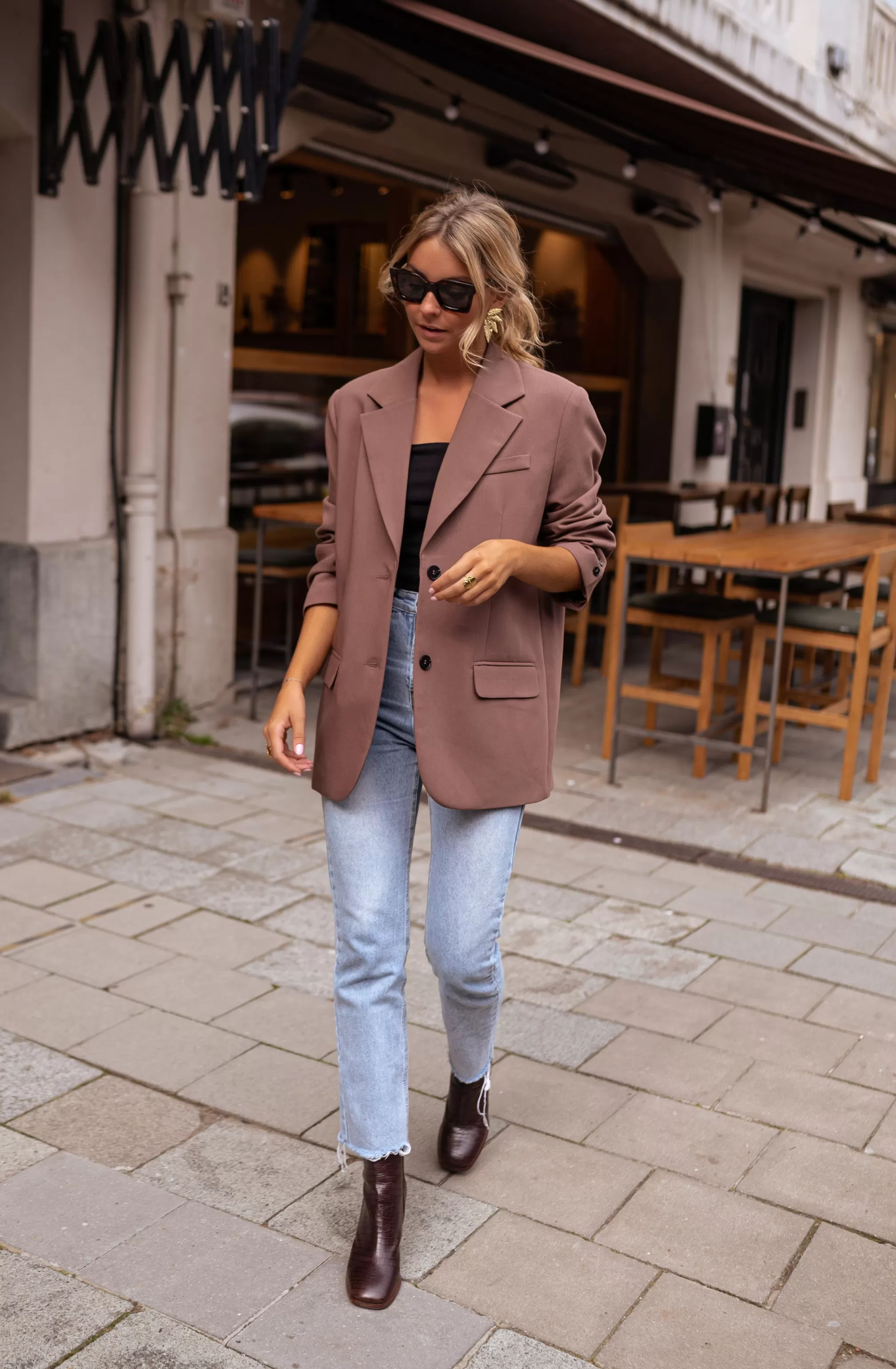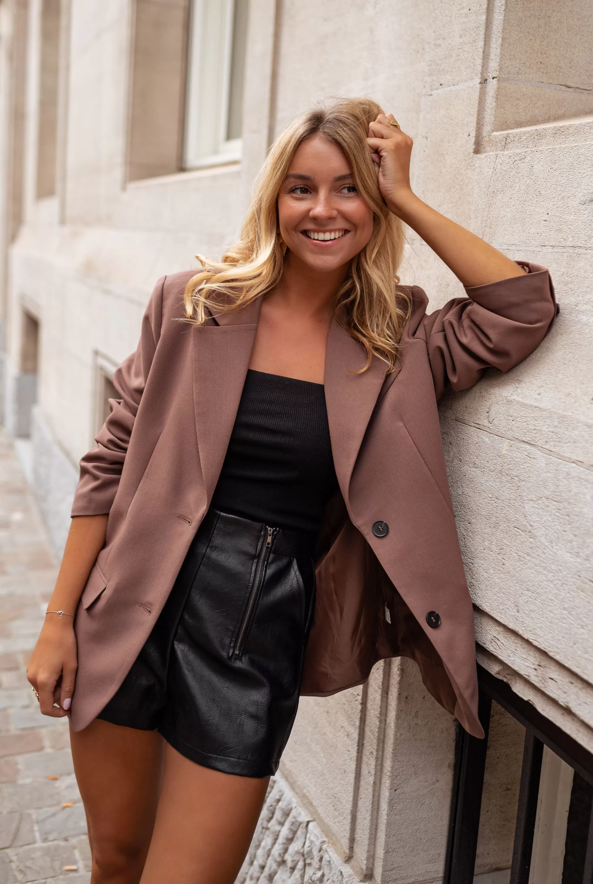 Loose fit Black buttons Shoulder pads Long fit Ophélie is 1m68 and wears …