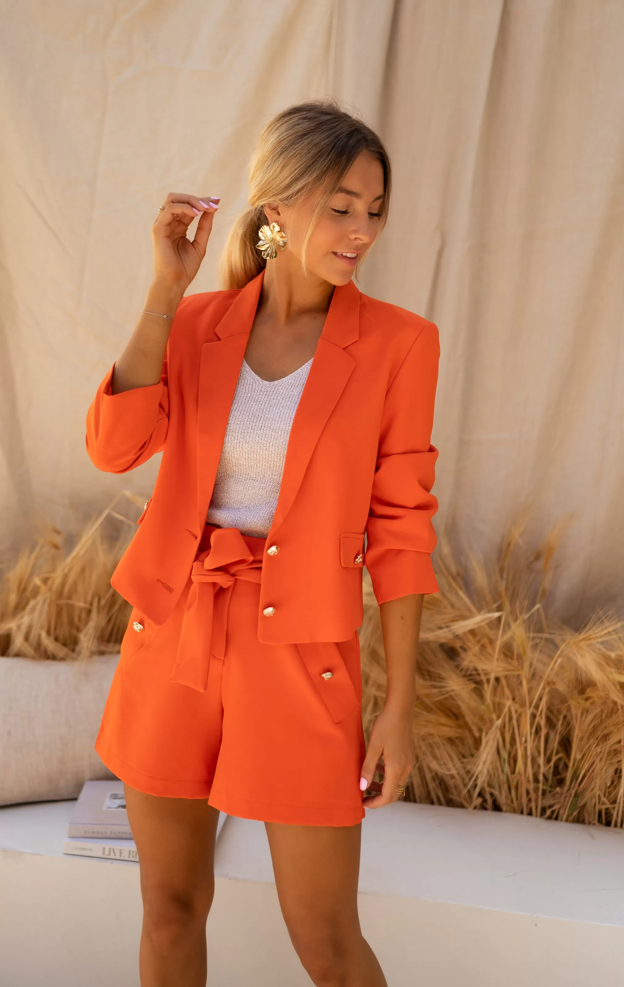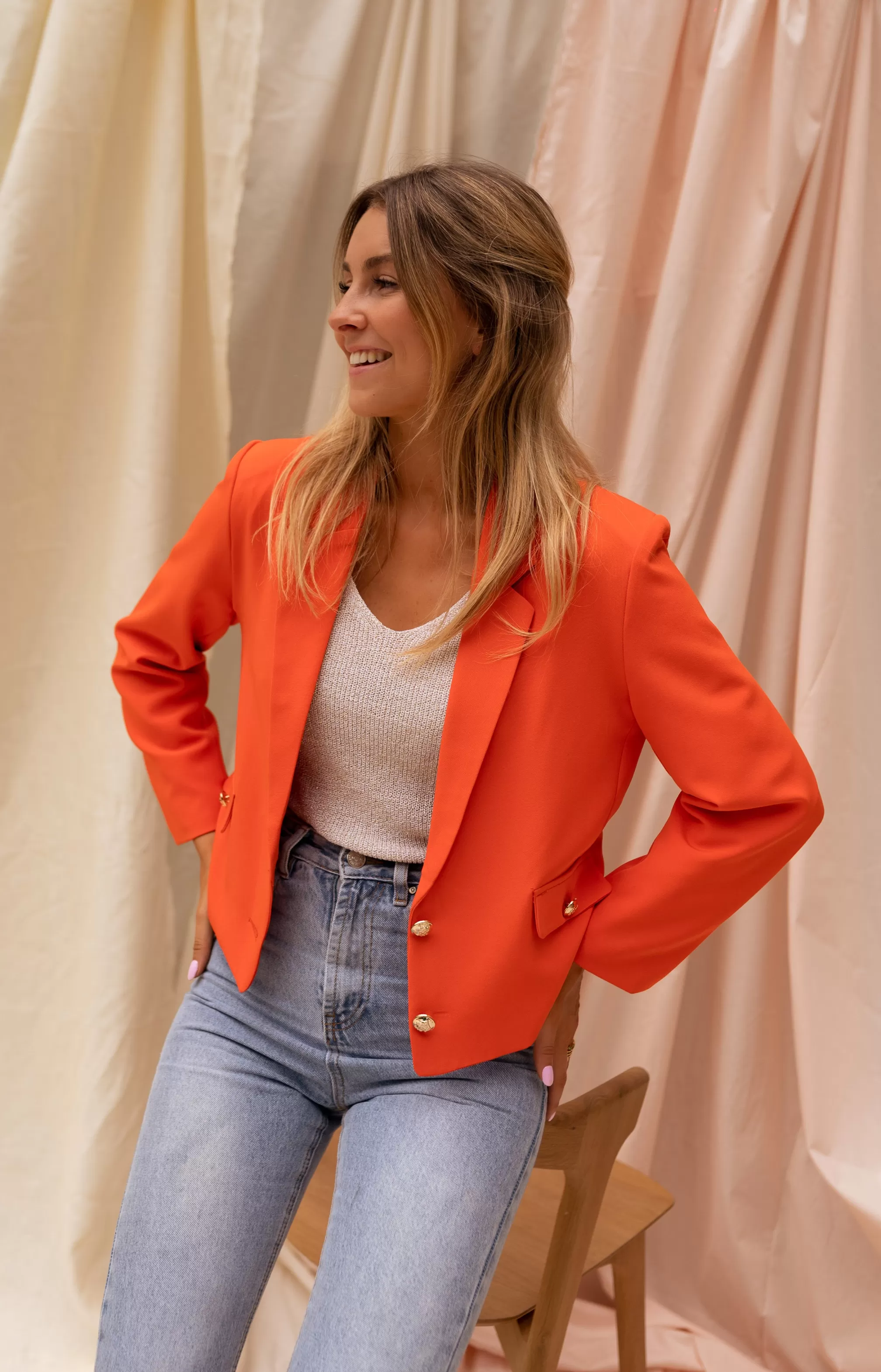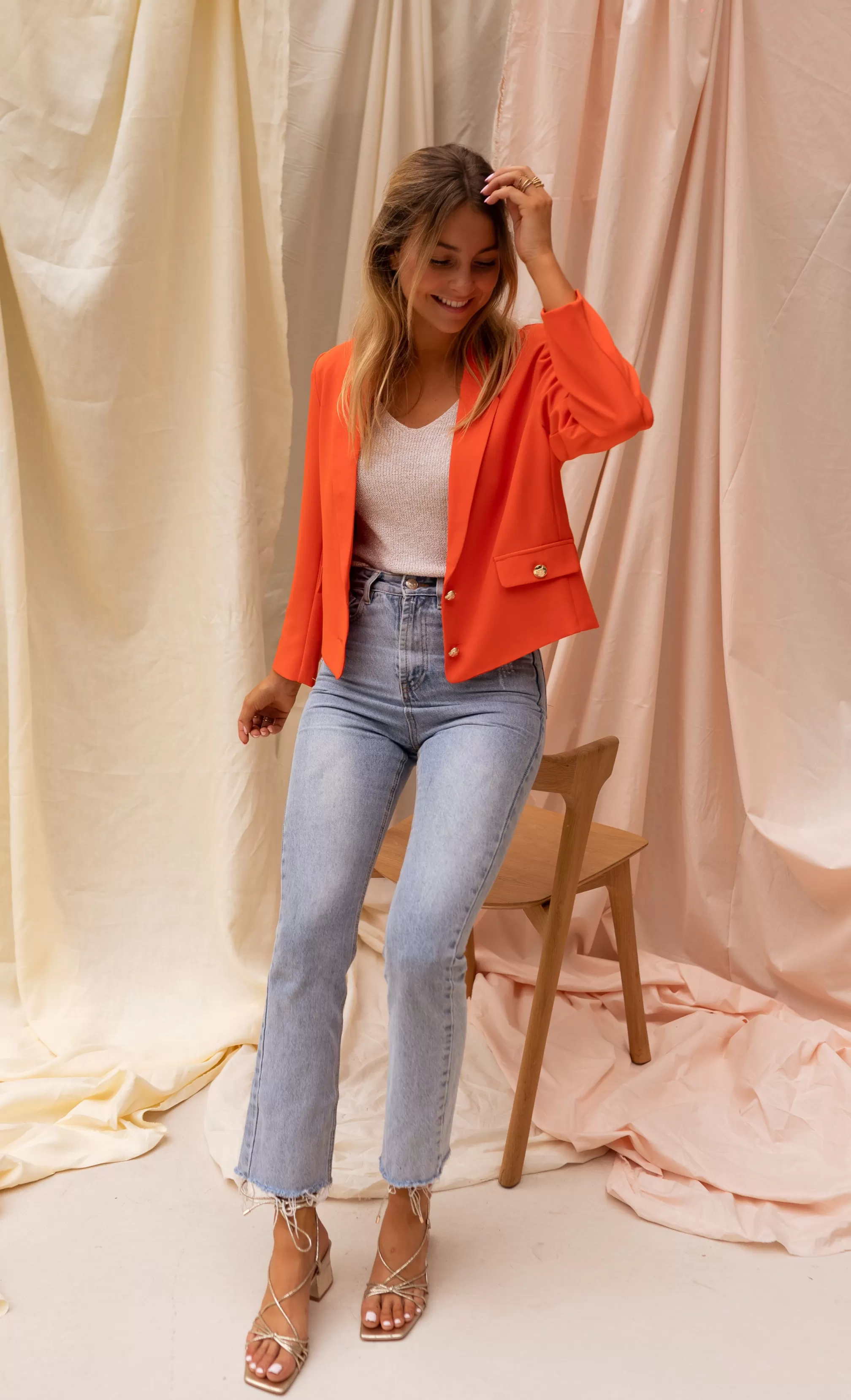 Slightly cropOphélie is 1m68 and wears a size SLong sleevesGolden detailsLiningSizes : S / M …