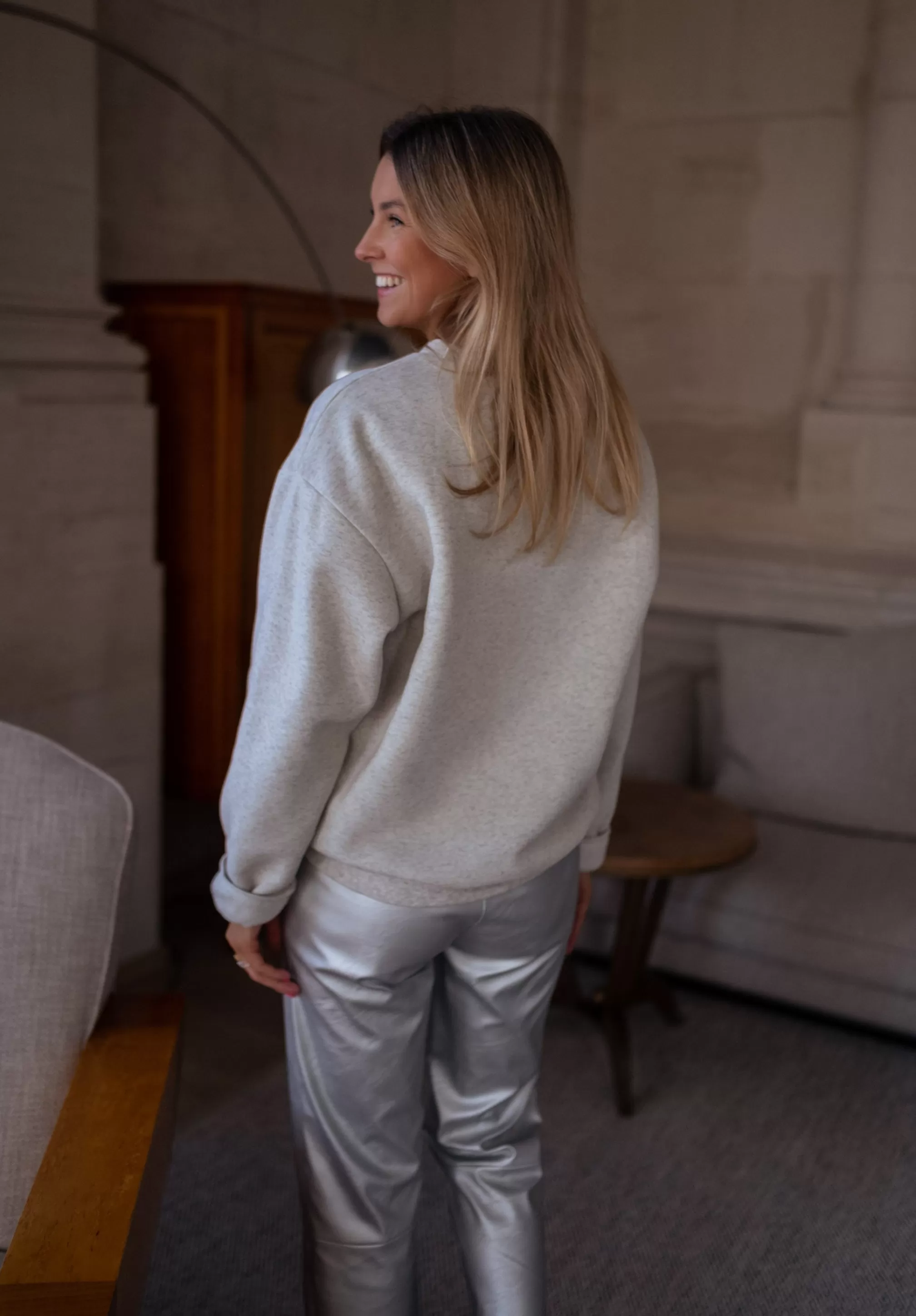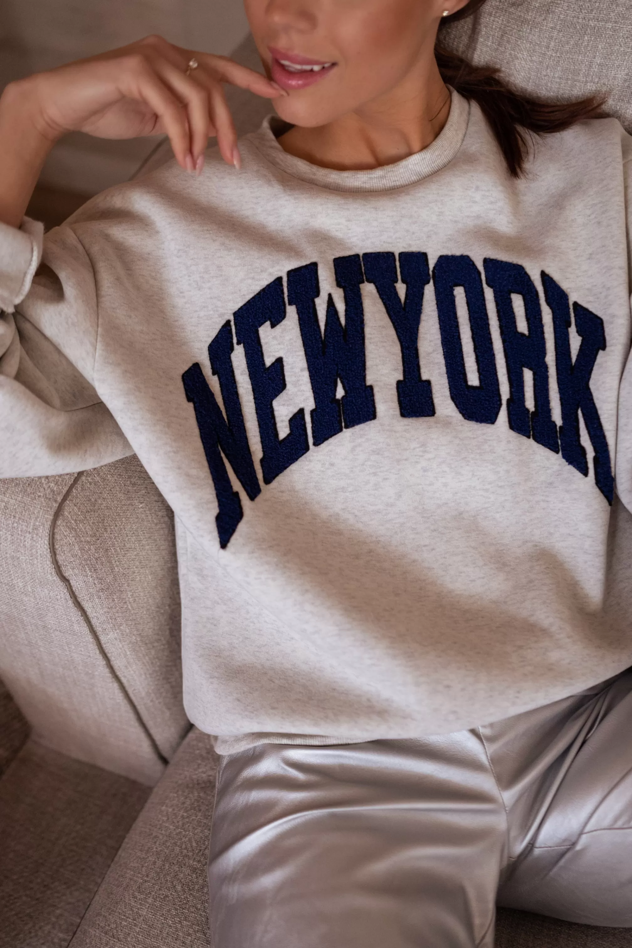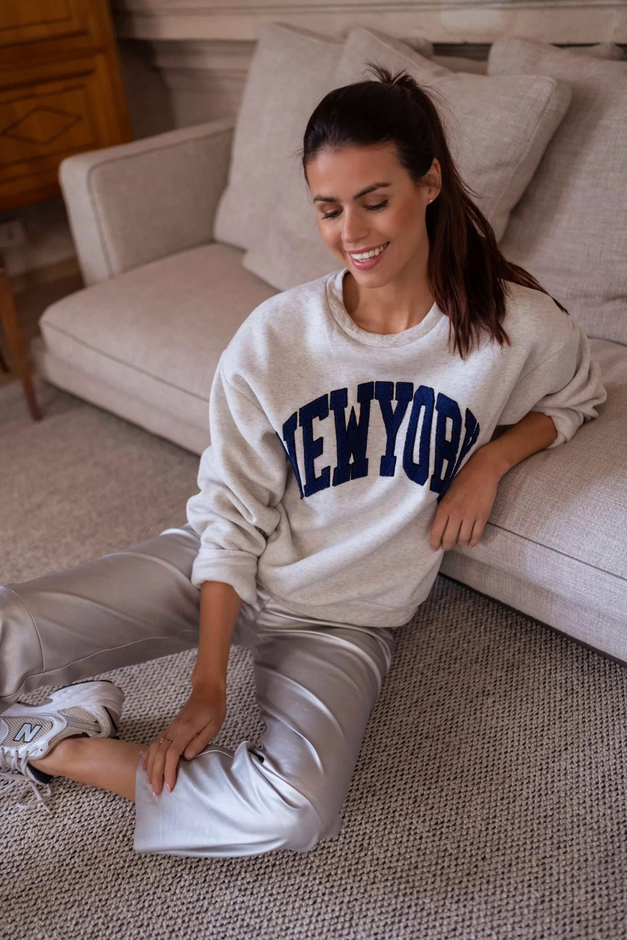 Soft sweaterBlue “New York” logo Ophélie is 1m68, Larissa is 1m74 and both usually w…