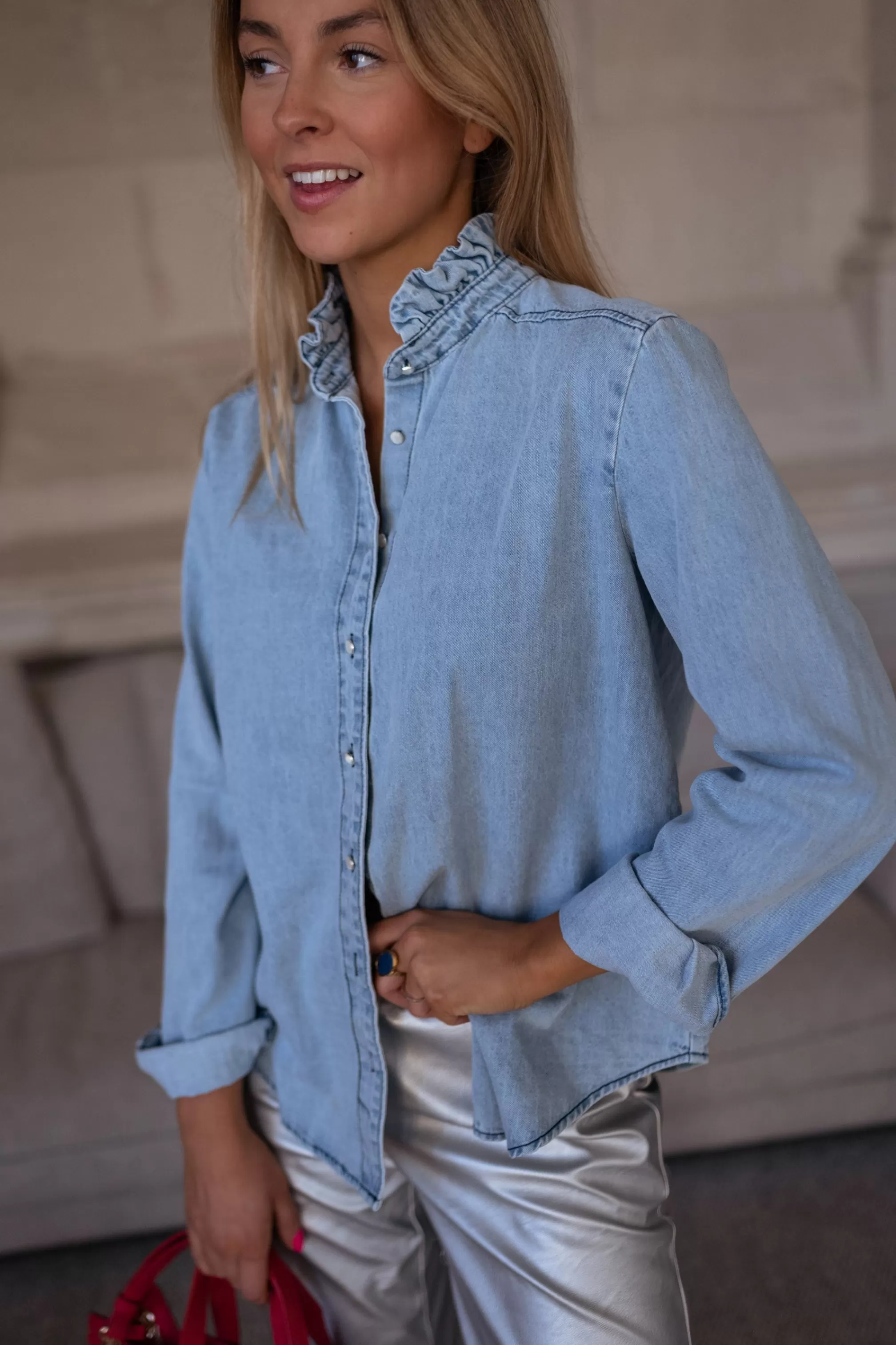 Long sleevesOphélie is 1m68, Larissa is 1m74 and they are wearing a Size SDenim shirt Ruffles…