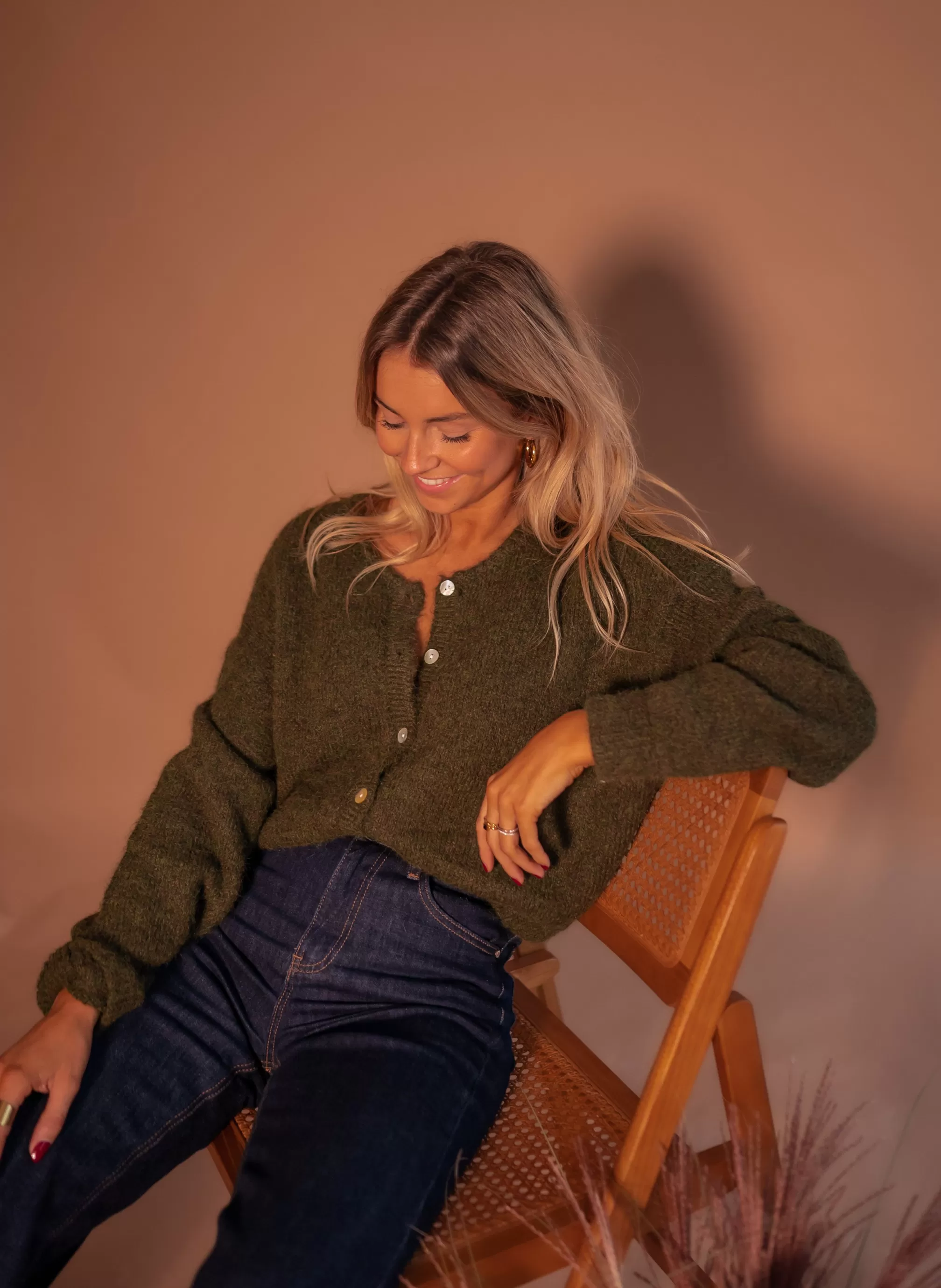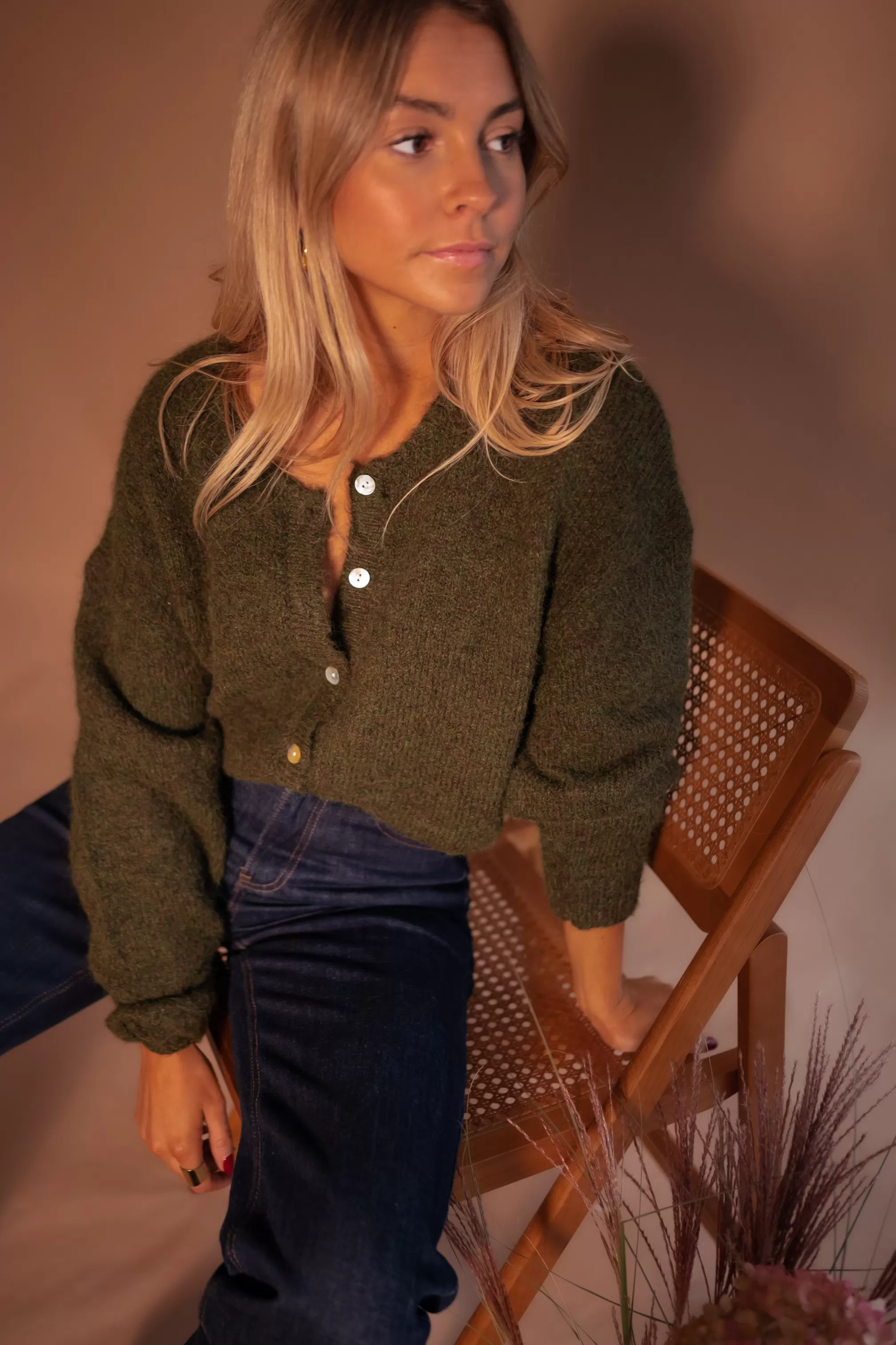 - Pearly buttons all along the cardigan