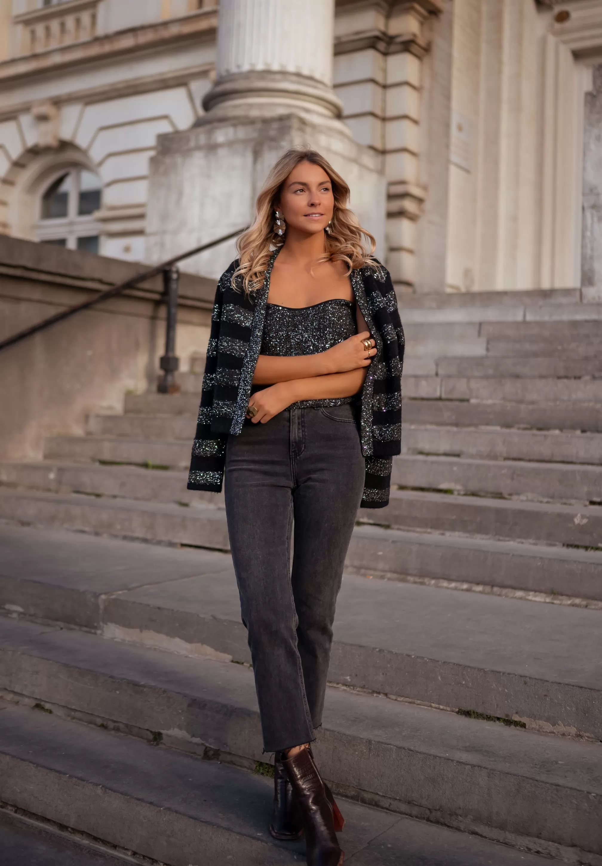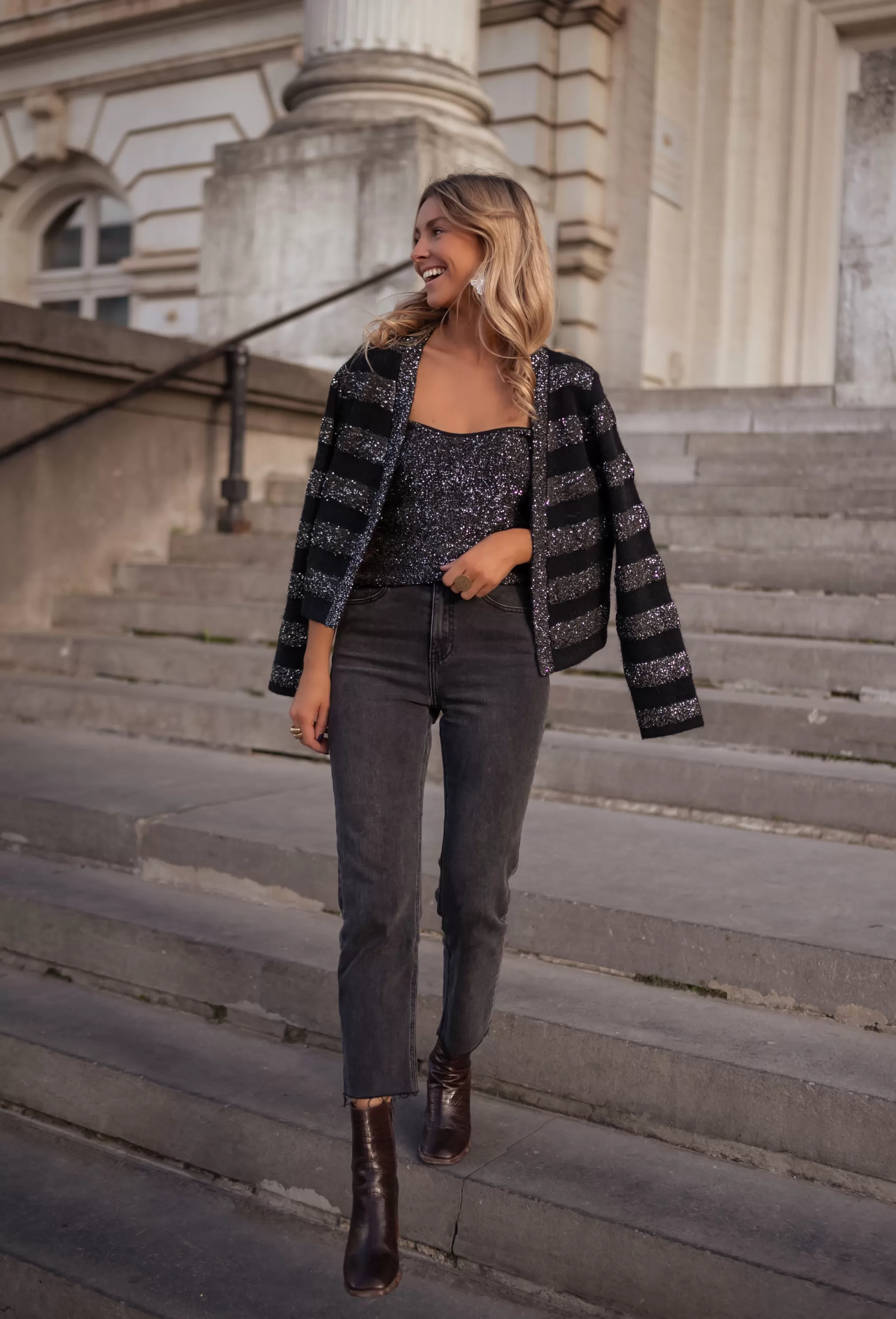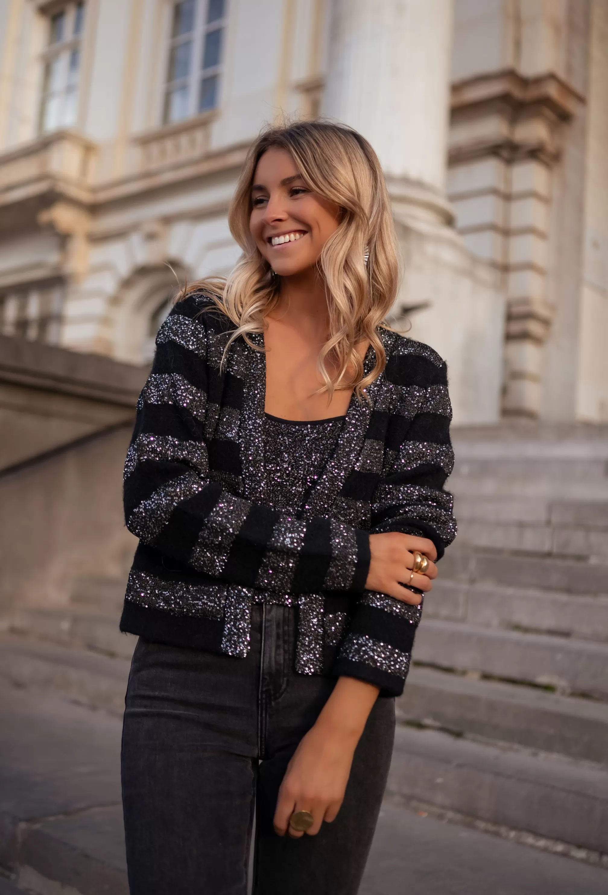 Long sleevesBlack and silverySilvery glittersOphélie is 1m68 and usually wears a size S=36ONE…