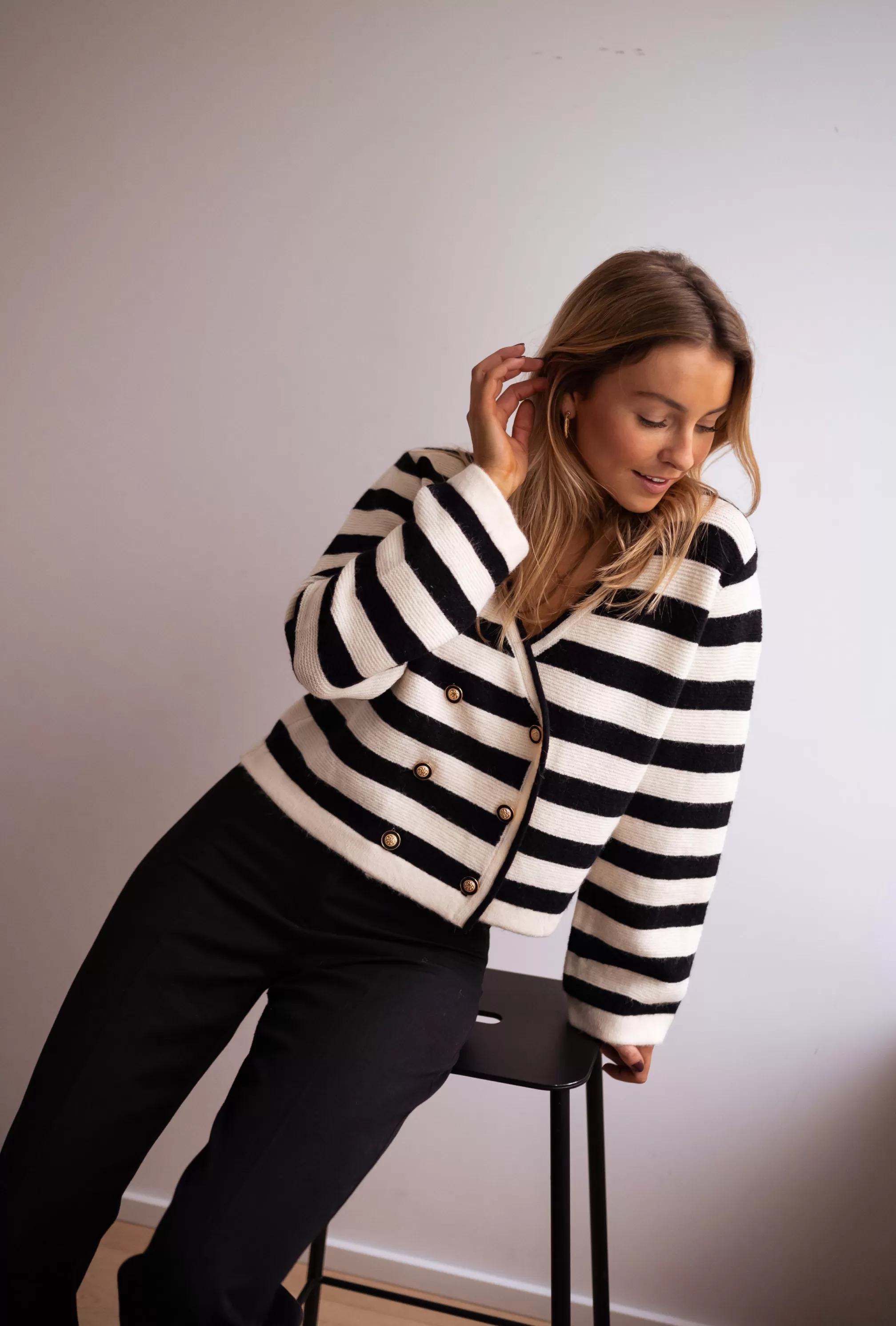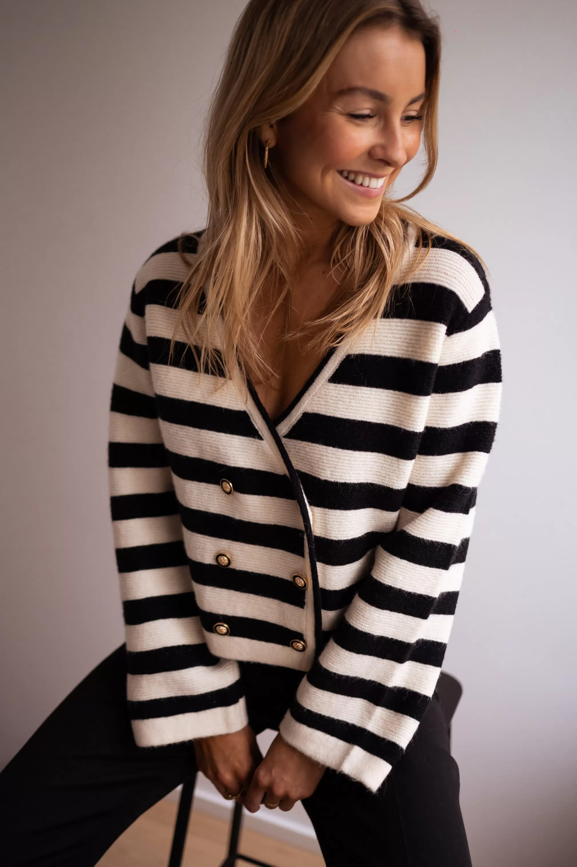 V-neck Long sleevesOphélie is 1m68 and wears a size S-M Golden buttons Straigh…