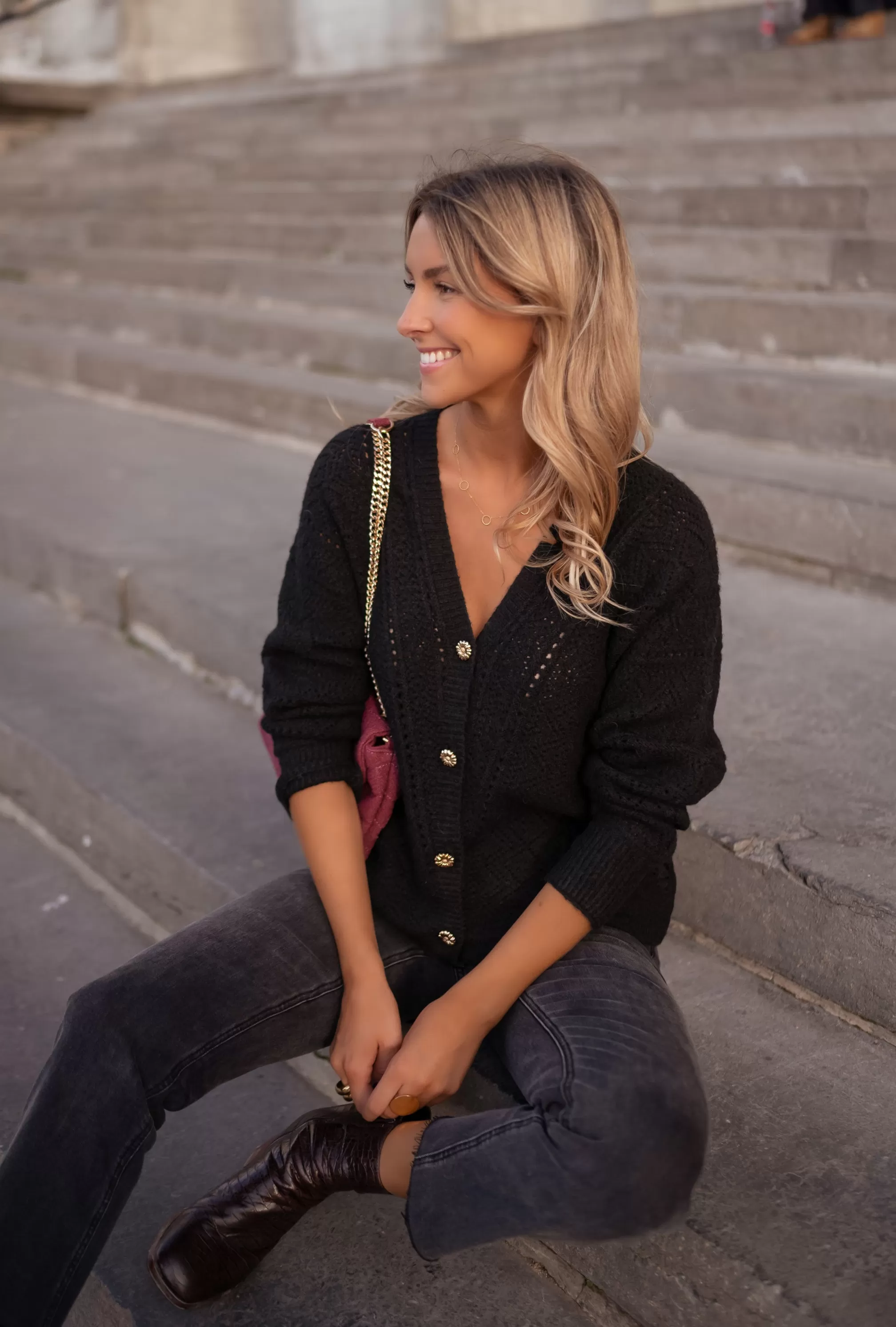 Long sleevesSoftFlower shape buttonsGolden buttons V NeckOphélie is 1m68 and usually wea…