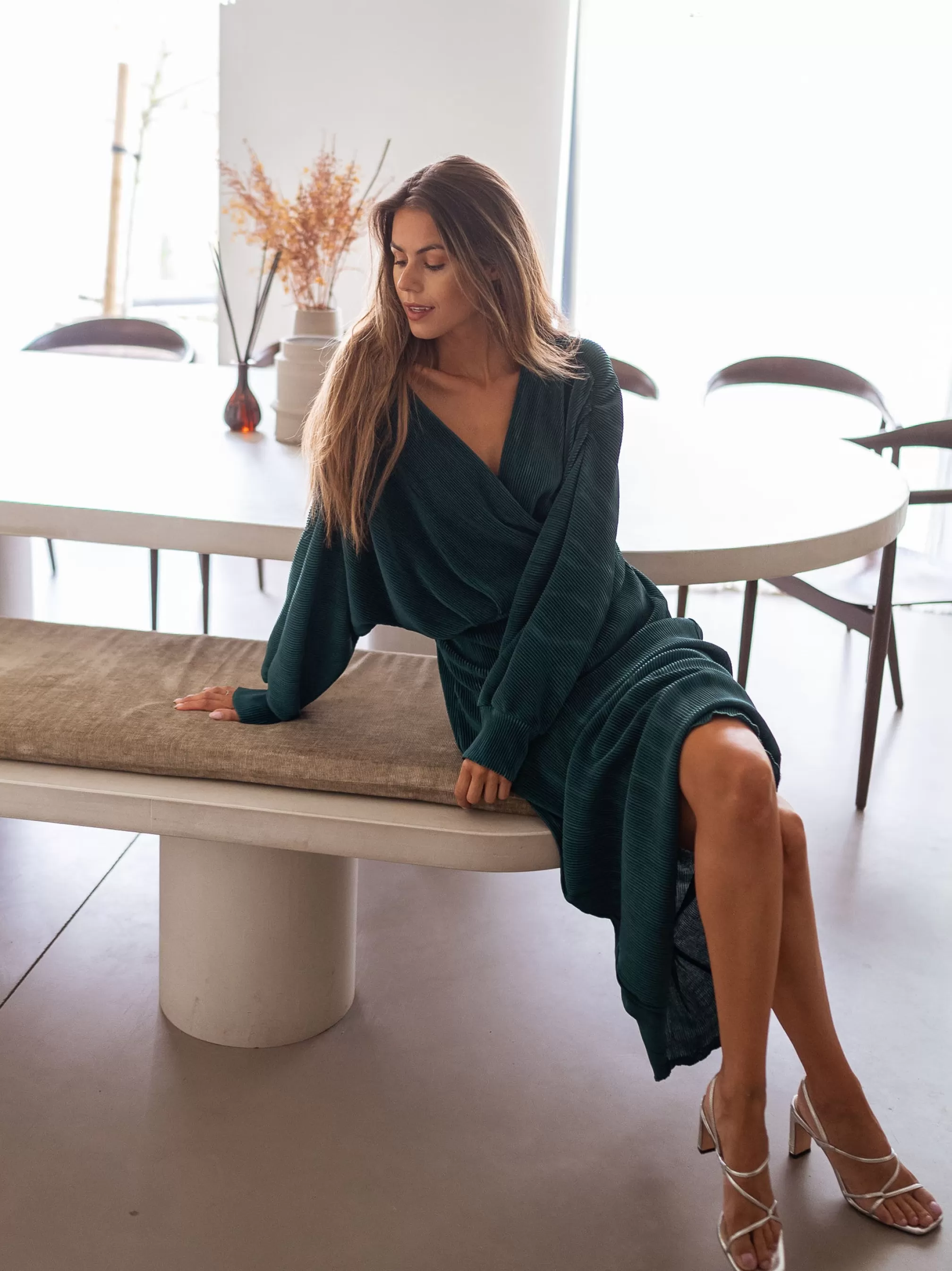 Made in ITALY Long sleevesSlightly flared sleevesWrap-front Pleated fabricElastic at…