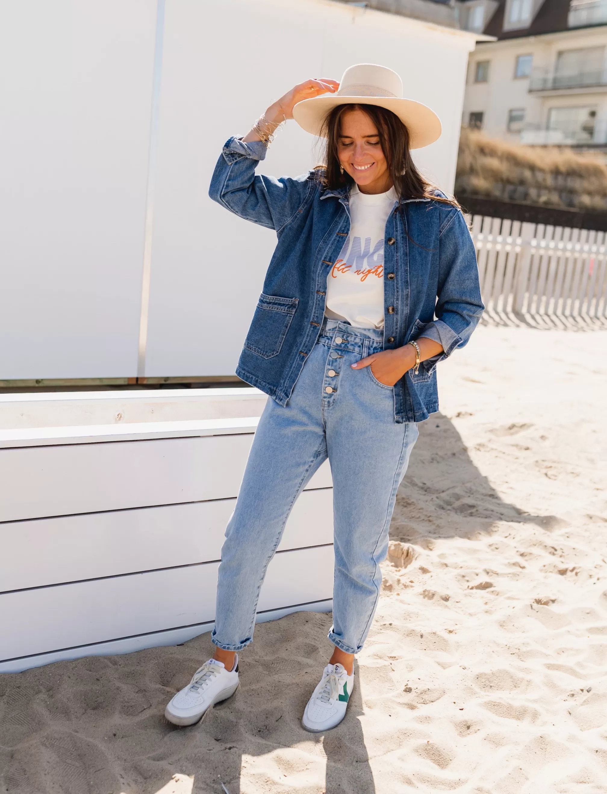 Easy Clothes CreationMADE IN FRANCE Short sleevesStitched edgesCrewneckBlue and orange lo…
