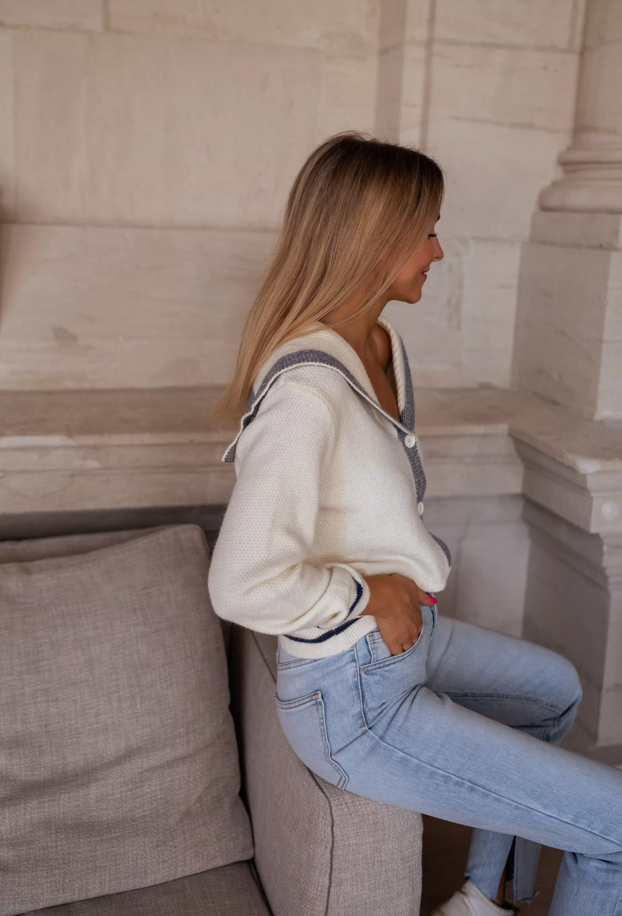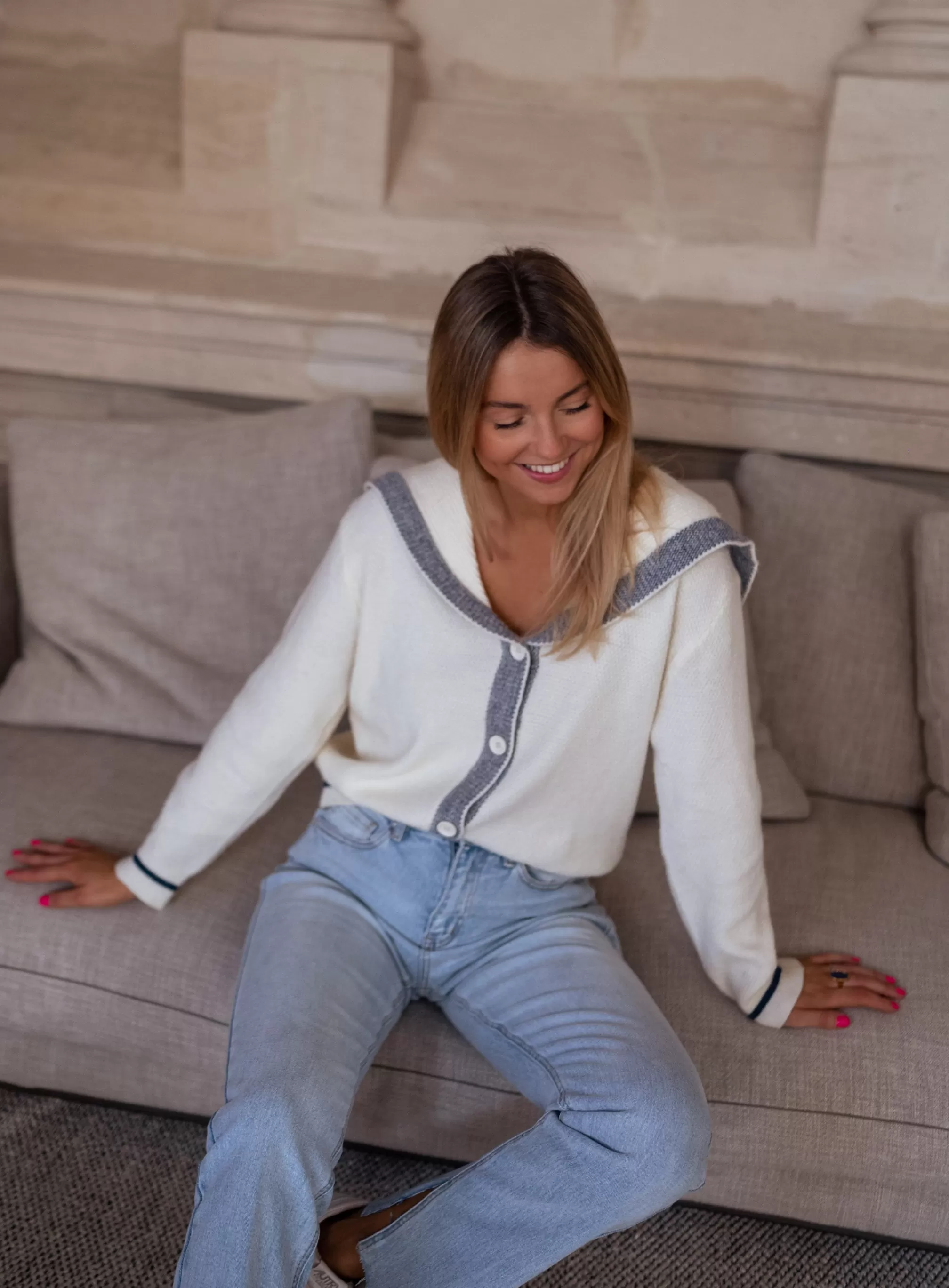 Lapel collarBlue detailsOphélie is 1m68, Larissa is 1m74 and both wear usually a size SLong s…