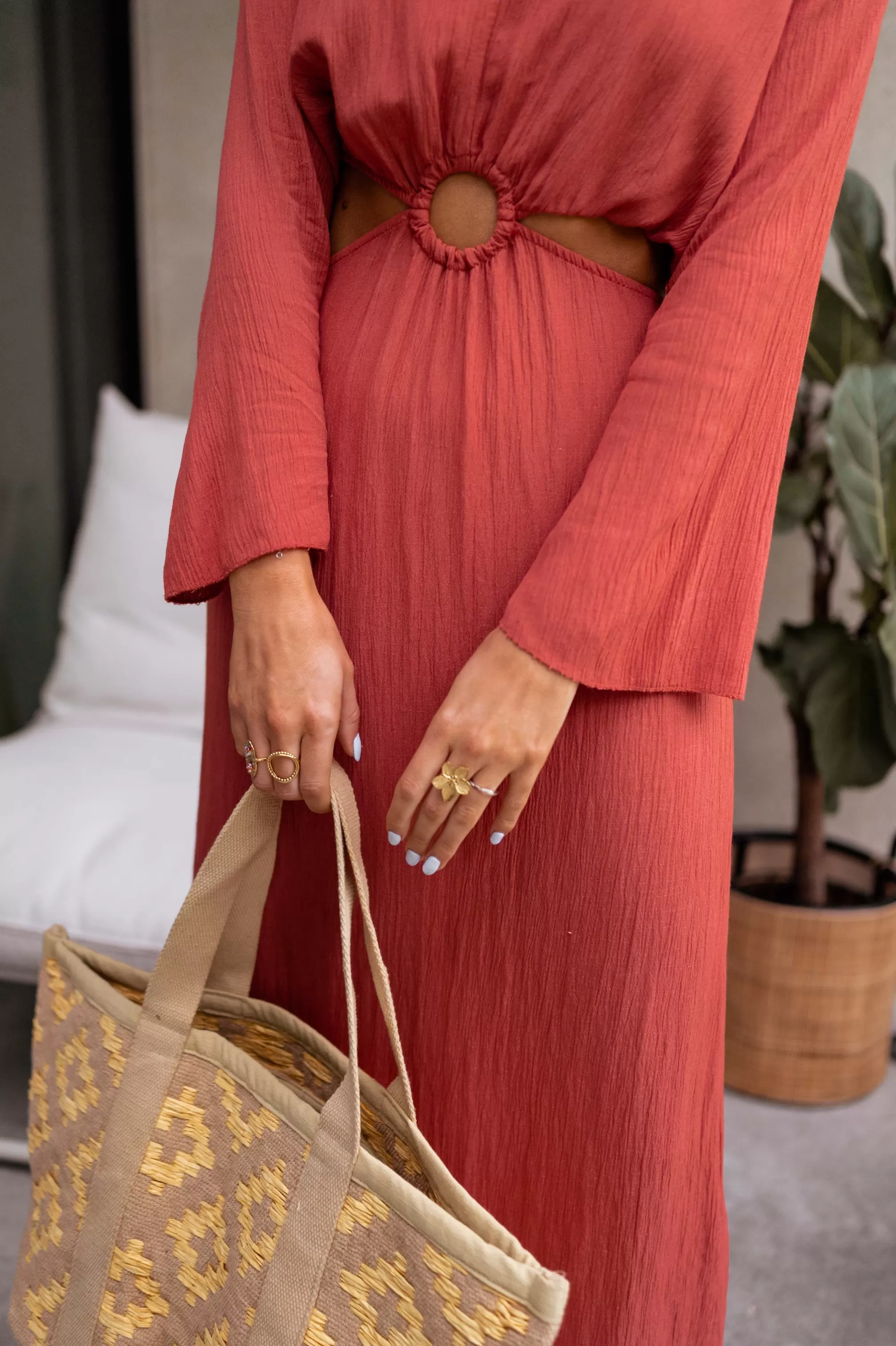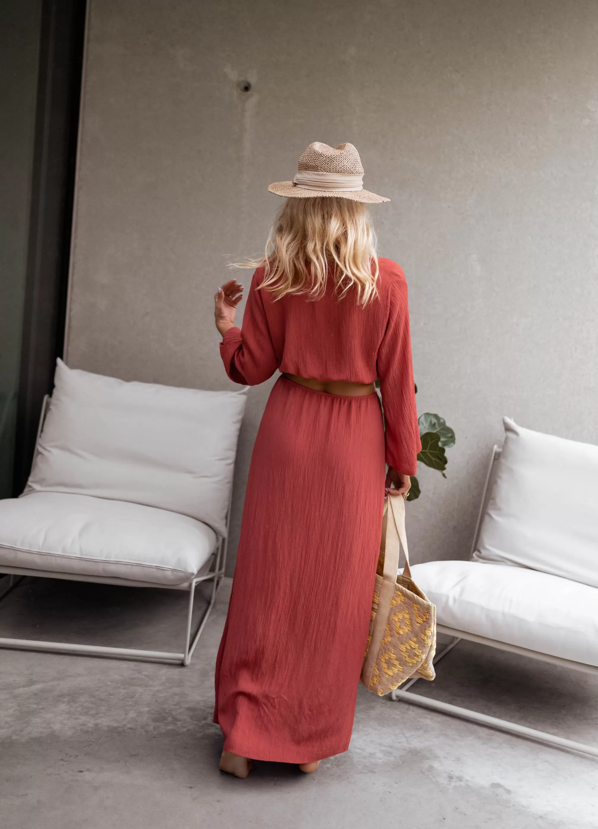Midi dressOpening on the sidesOphélie is 1m68 and usually wears a size SColors : brick M…