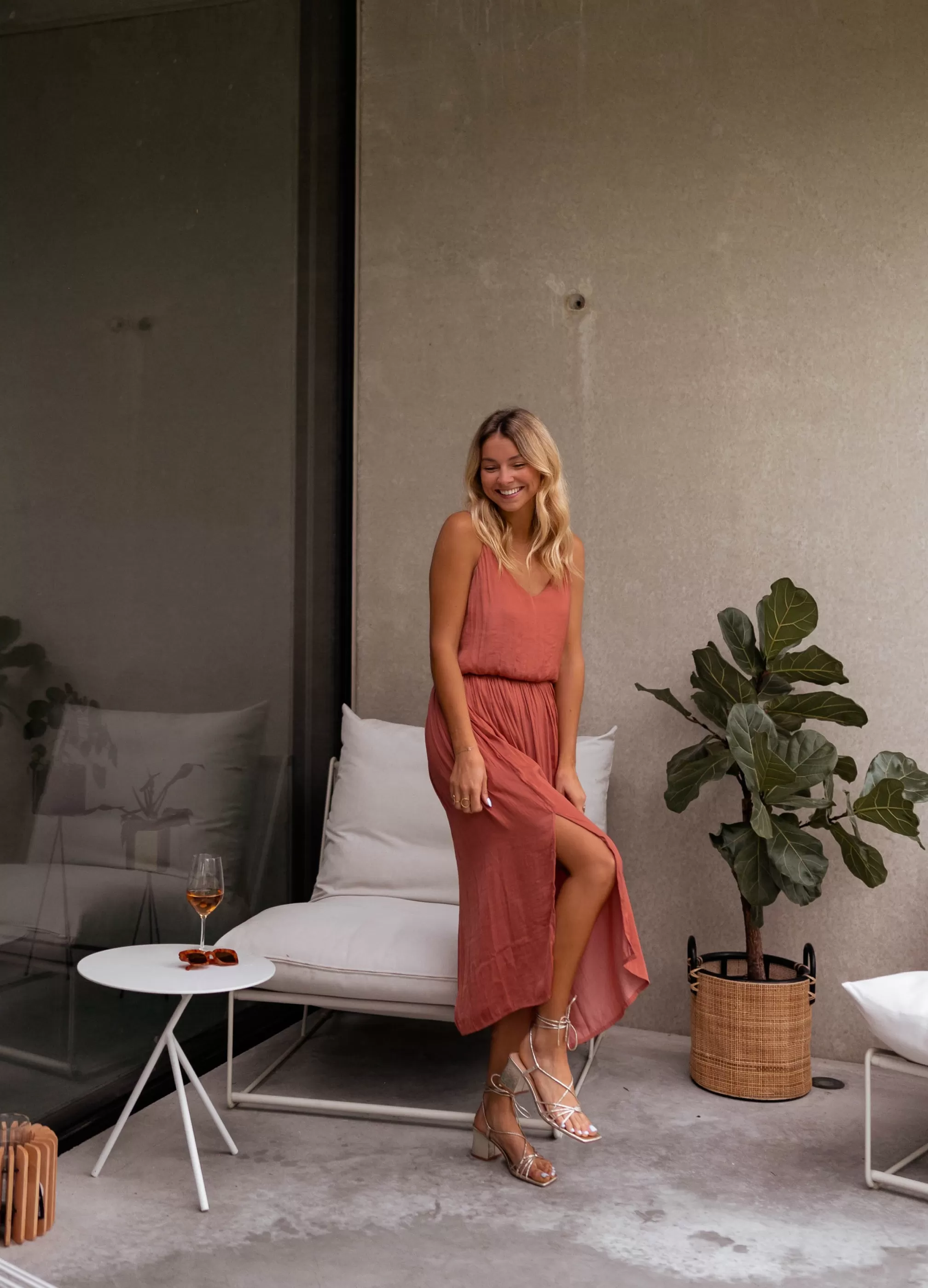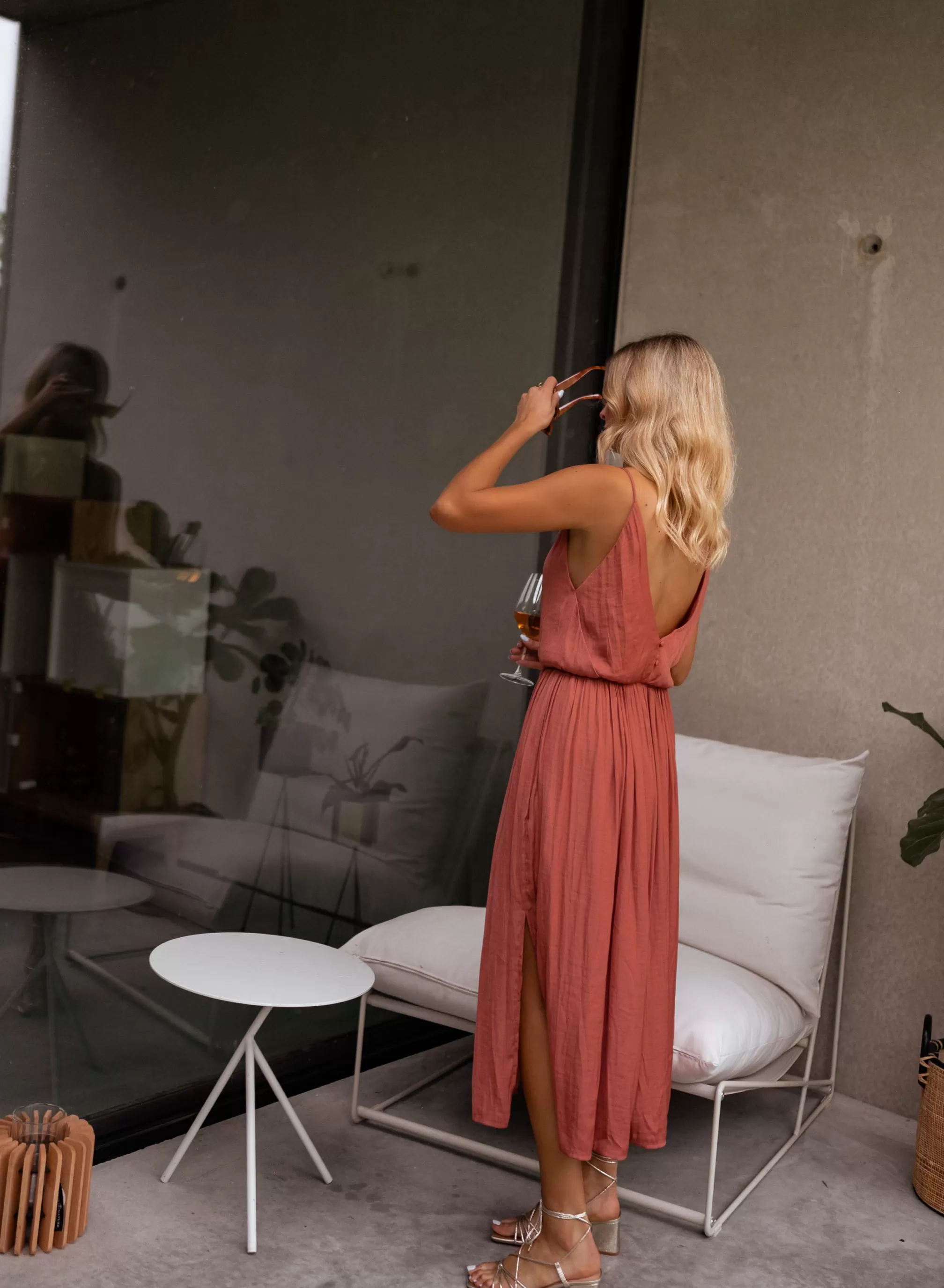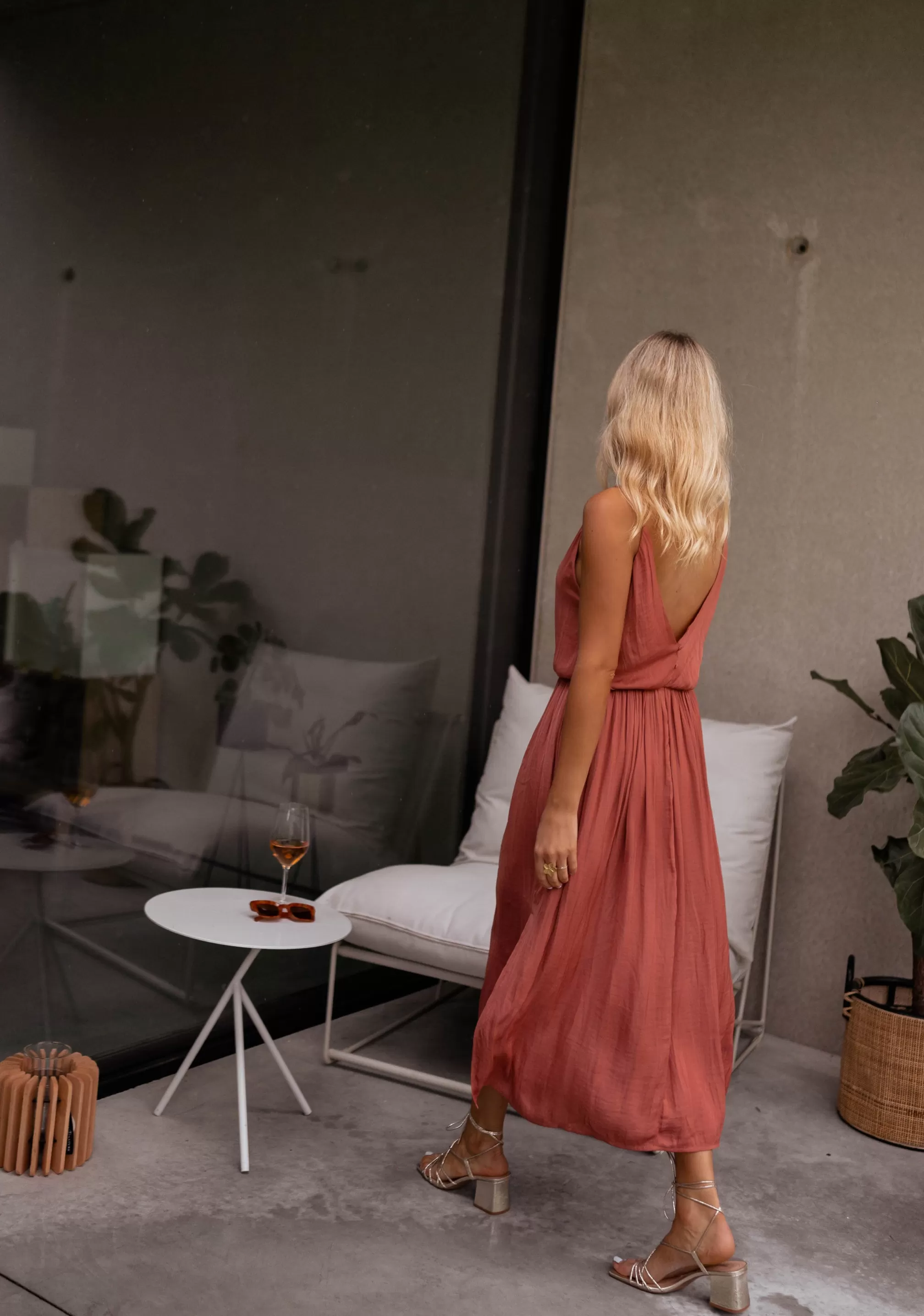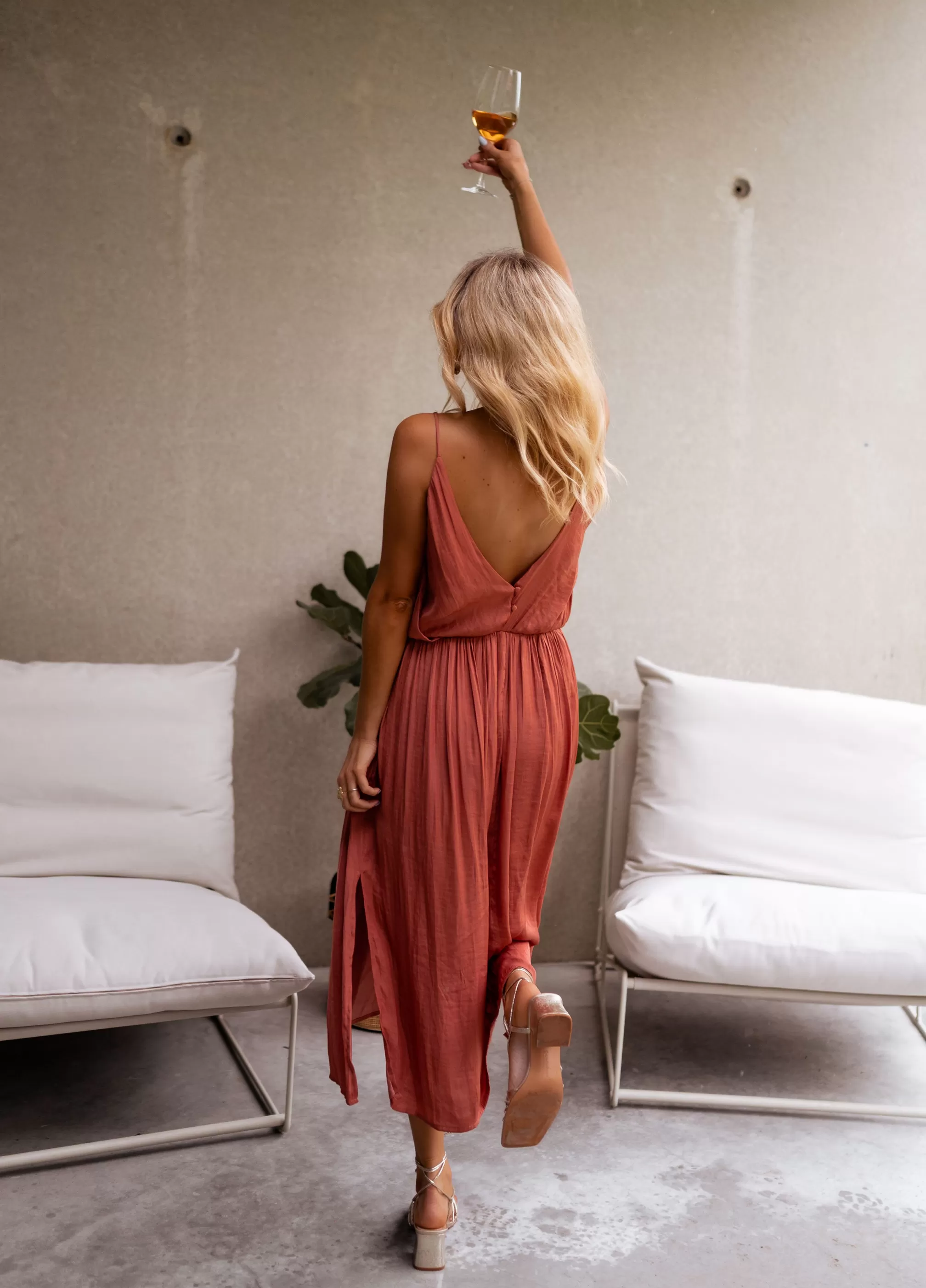 - Deep neckline in the back