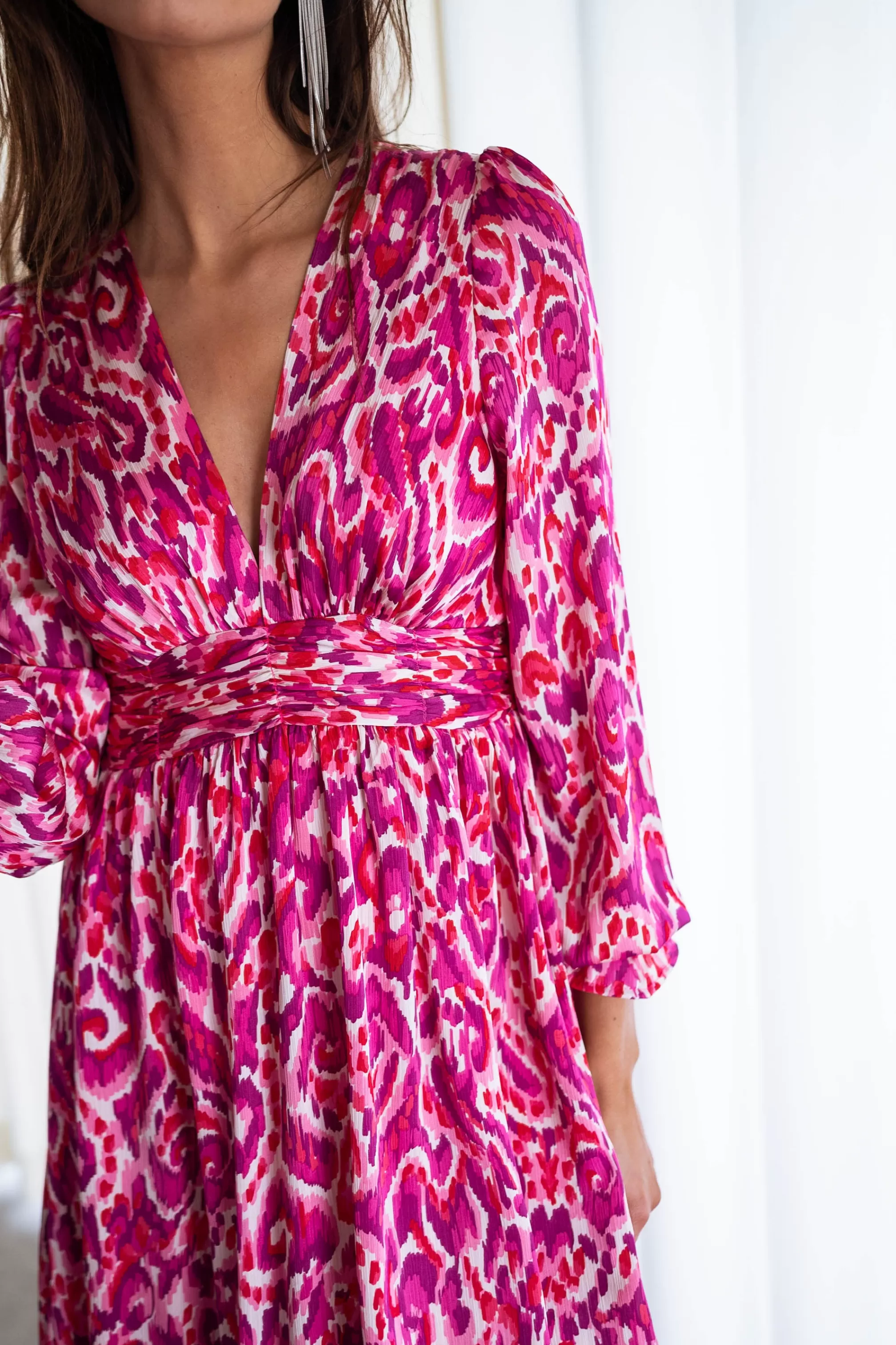 Long sleevesV-neckOphélie is 1m68, Larissa is 1m74 and both wear a size S-MSlightly tight bel…