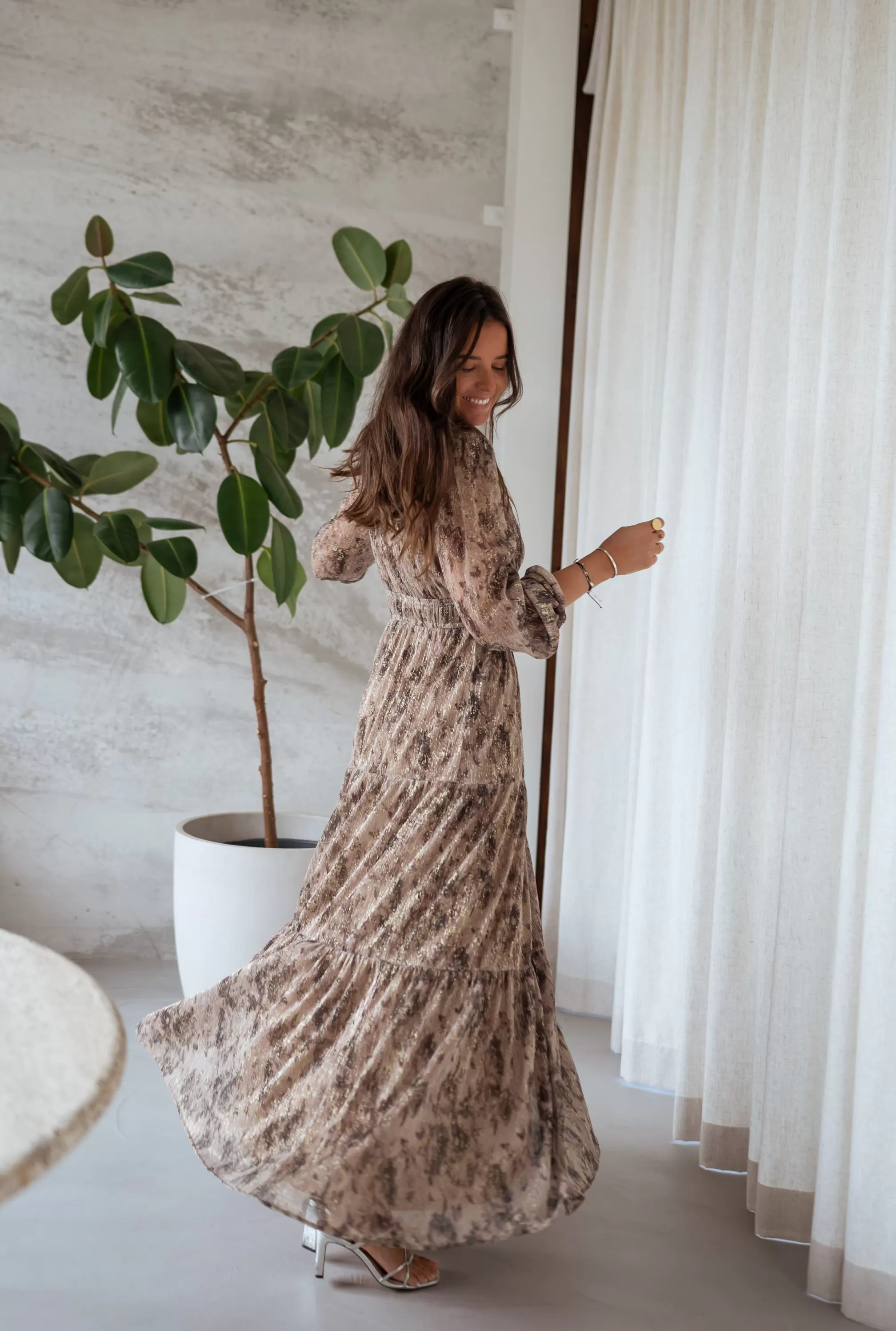 Long sleevesEntirely lined V-neck Silvery and golden LurexElastic at the waist …