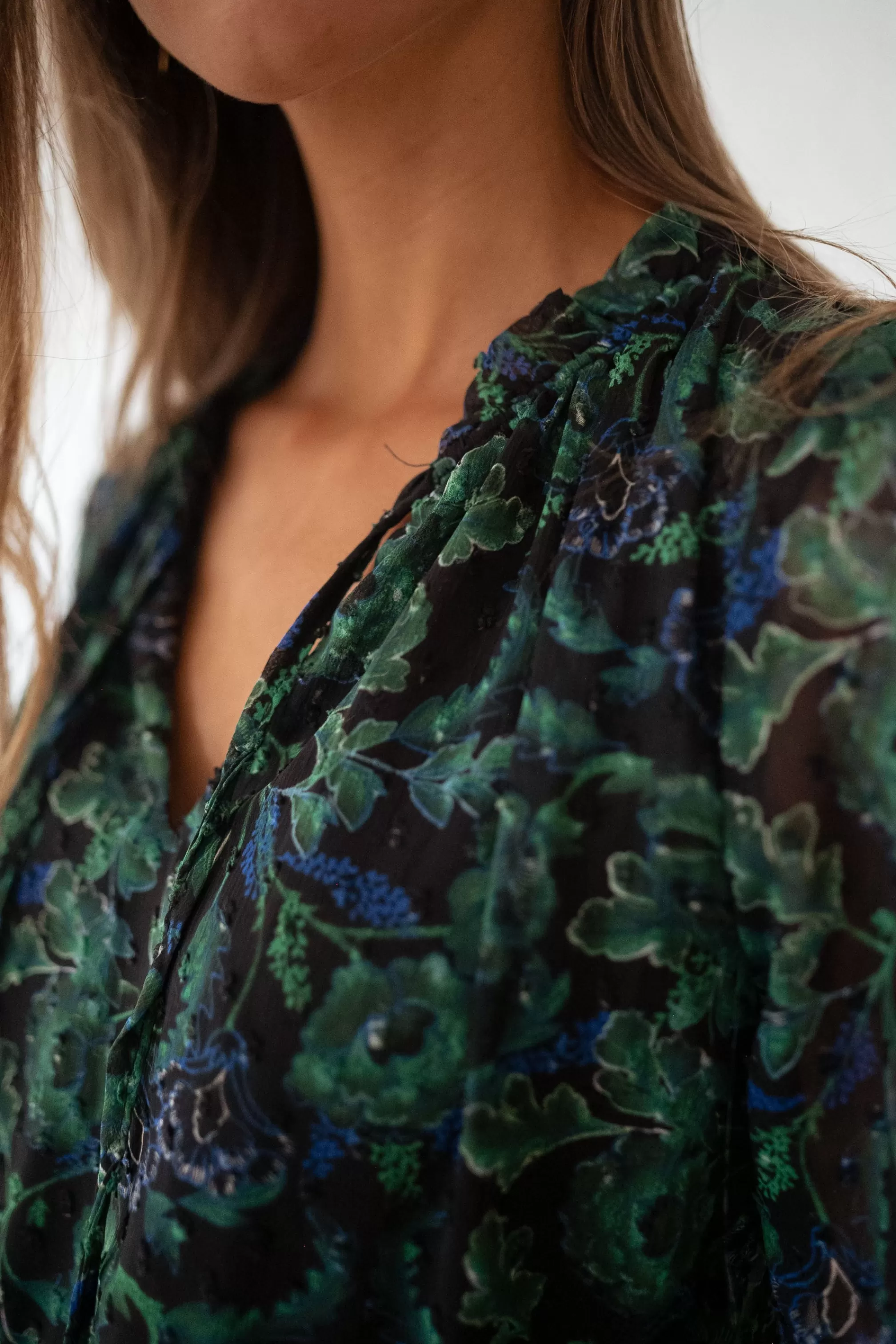 Long sleevesV-neck with lanyardSwiss dot fabricFluidElastics at the wristsLined except at the …