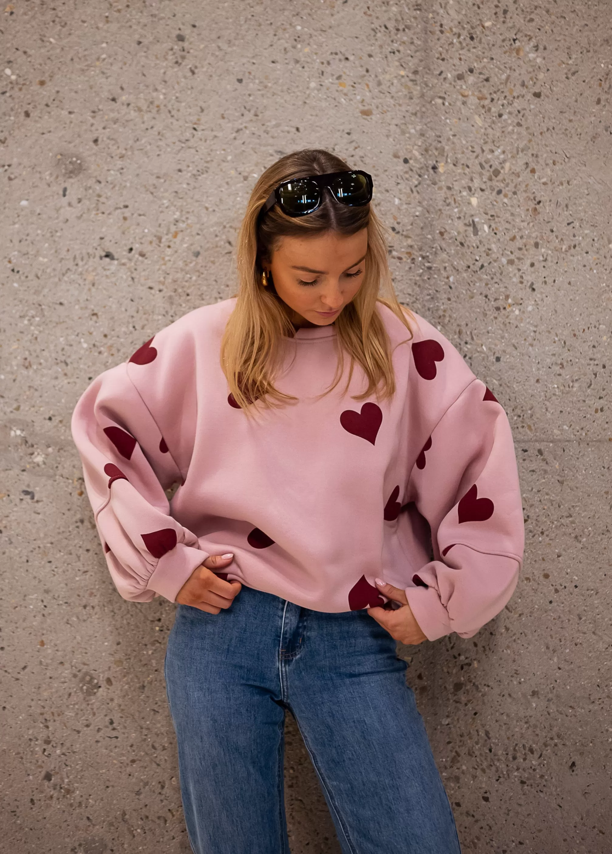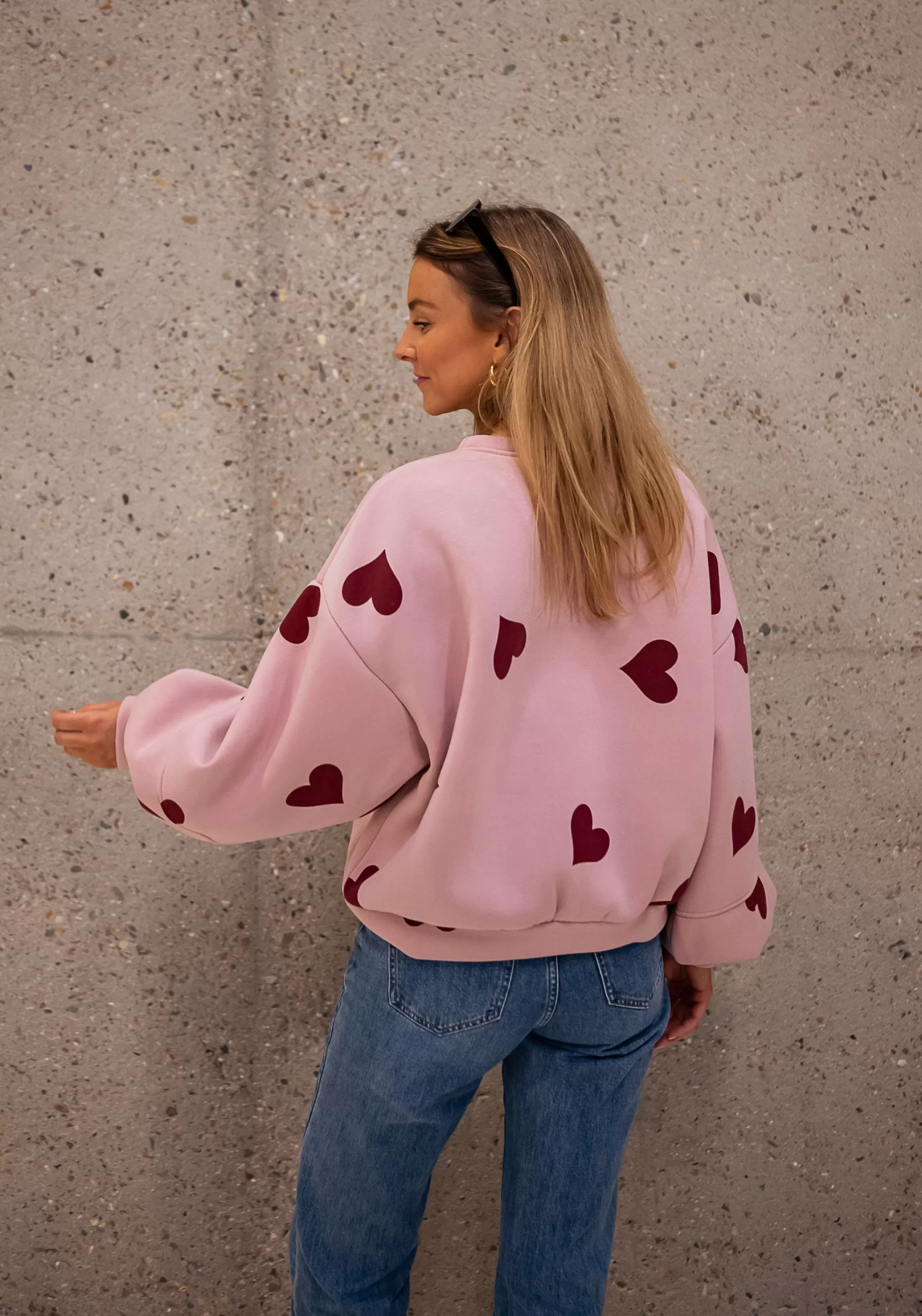 Loose sweater Pink background with red hearts Made in ItalyOphélie is 1m68 and usua…