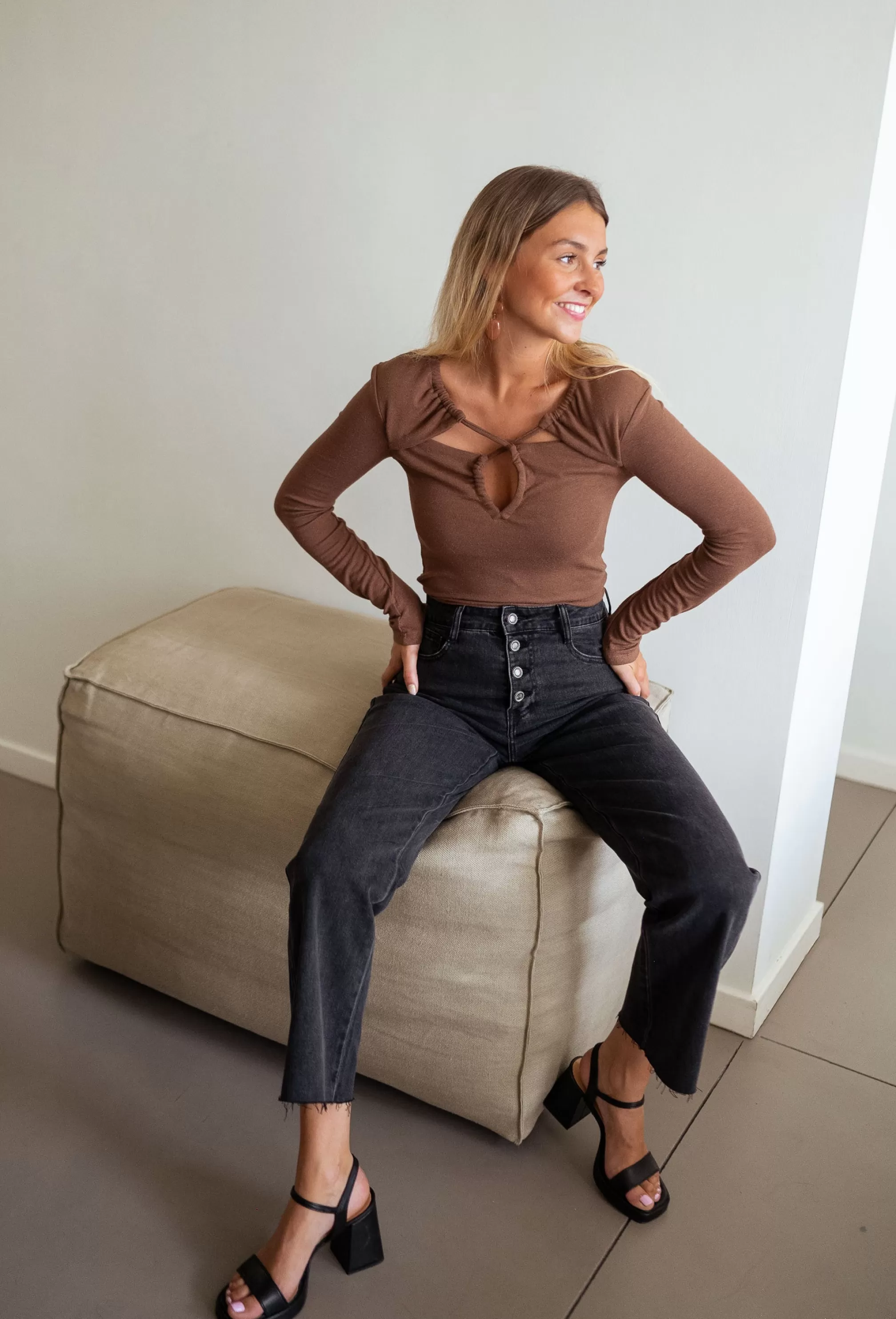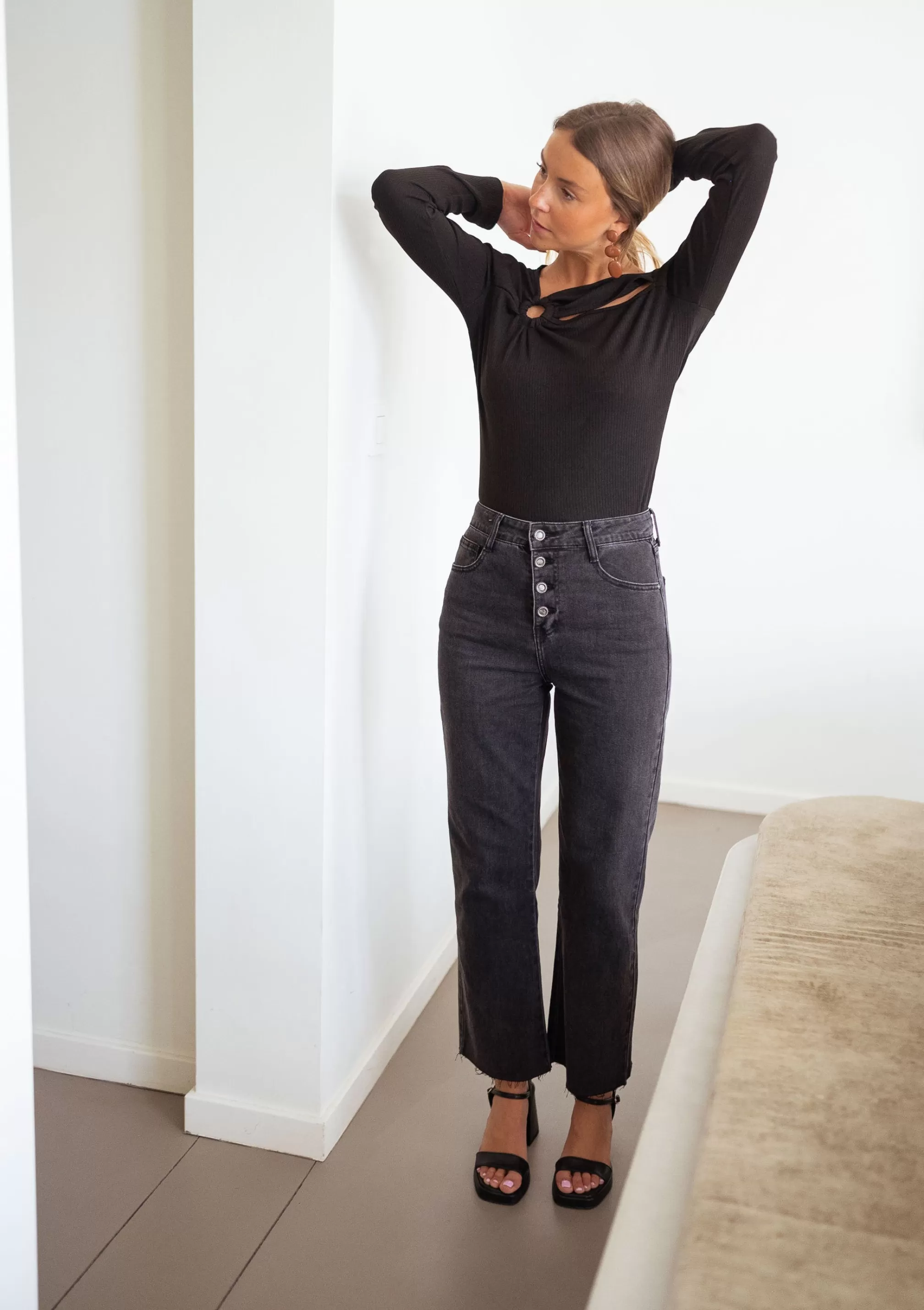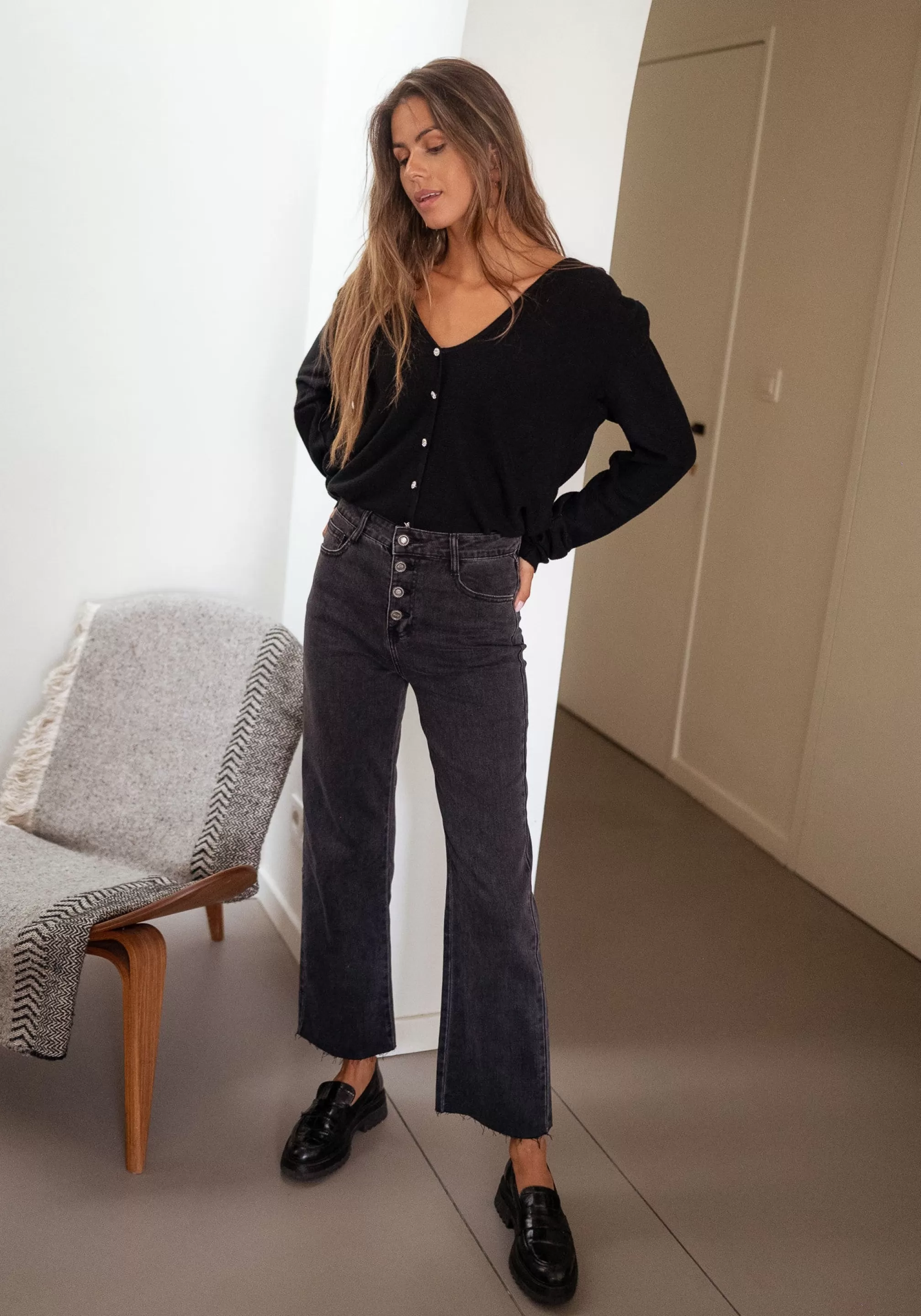 - 4 silvery buttons on the front