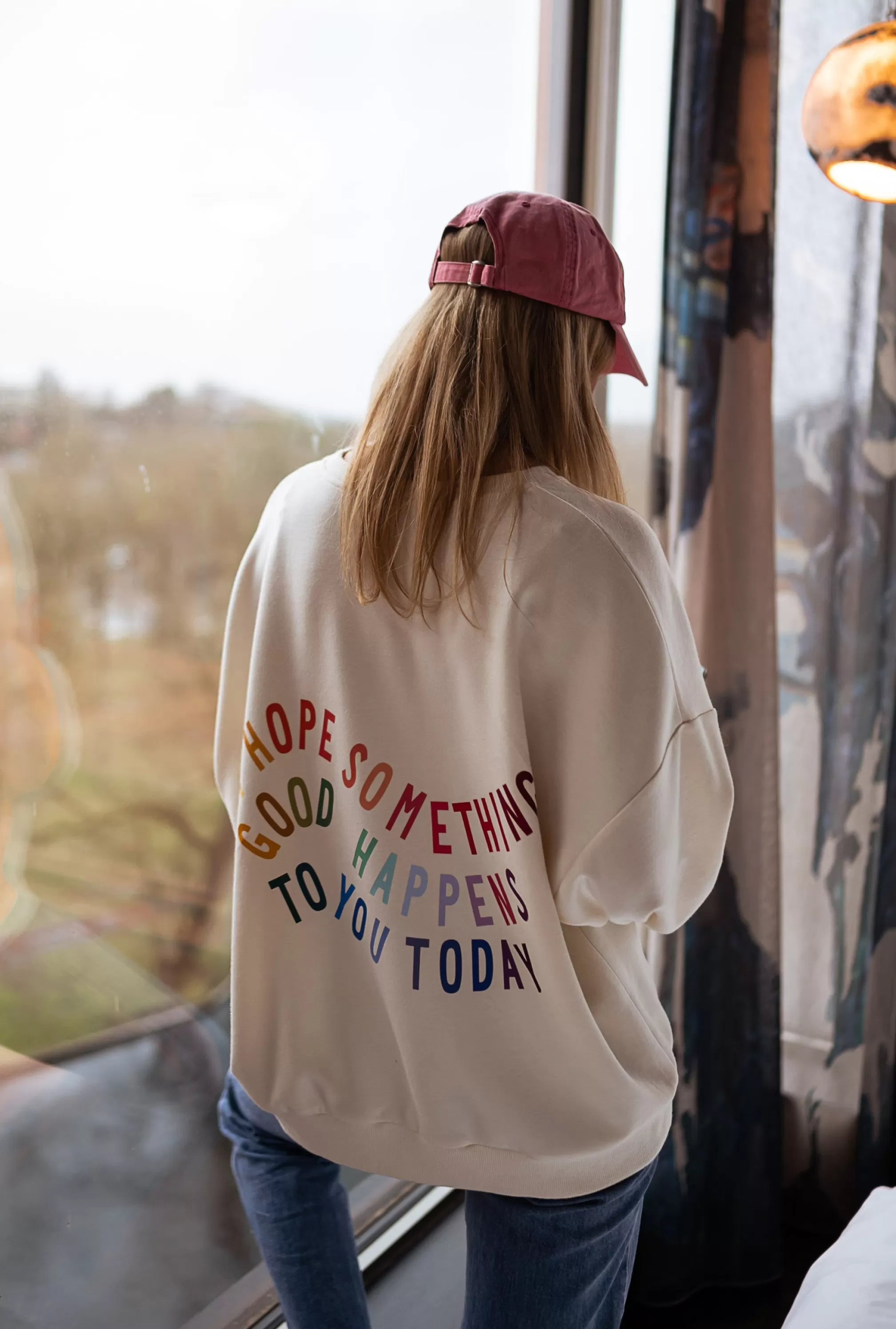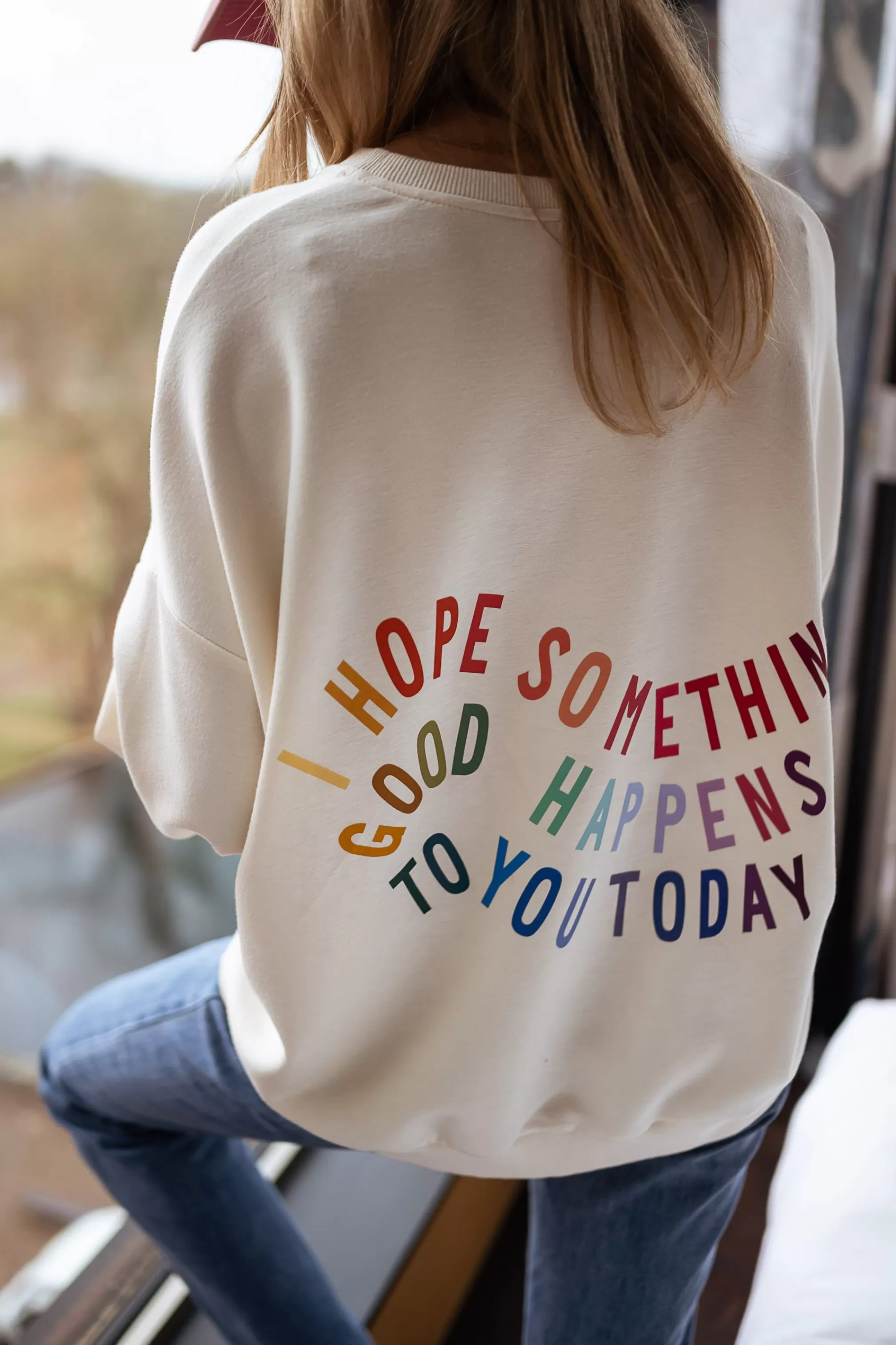 Loose sweaterColorful writings and logo in the backOphélie is 1m68 and usually wears a size S…