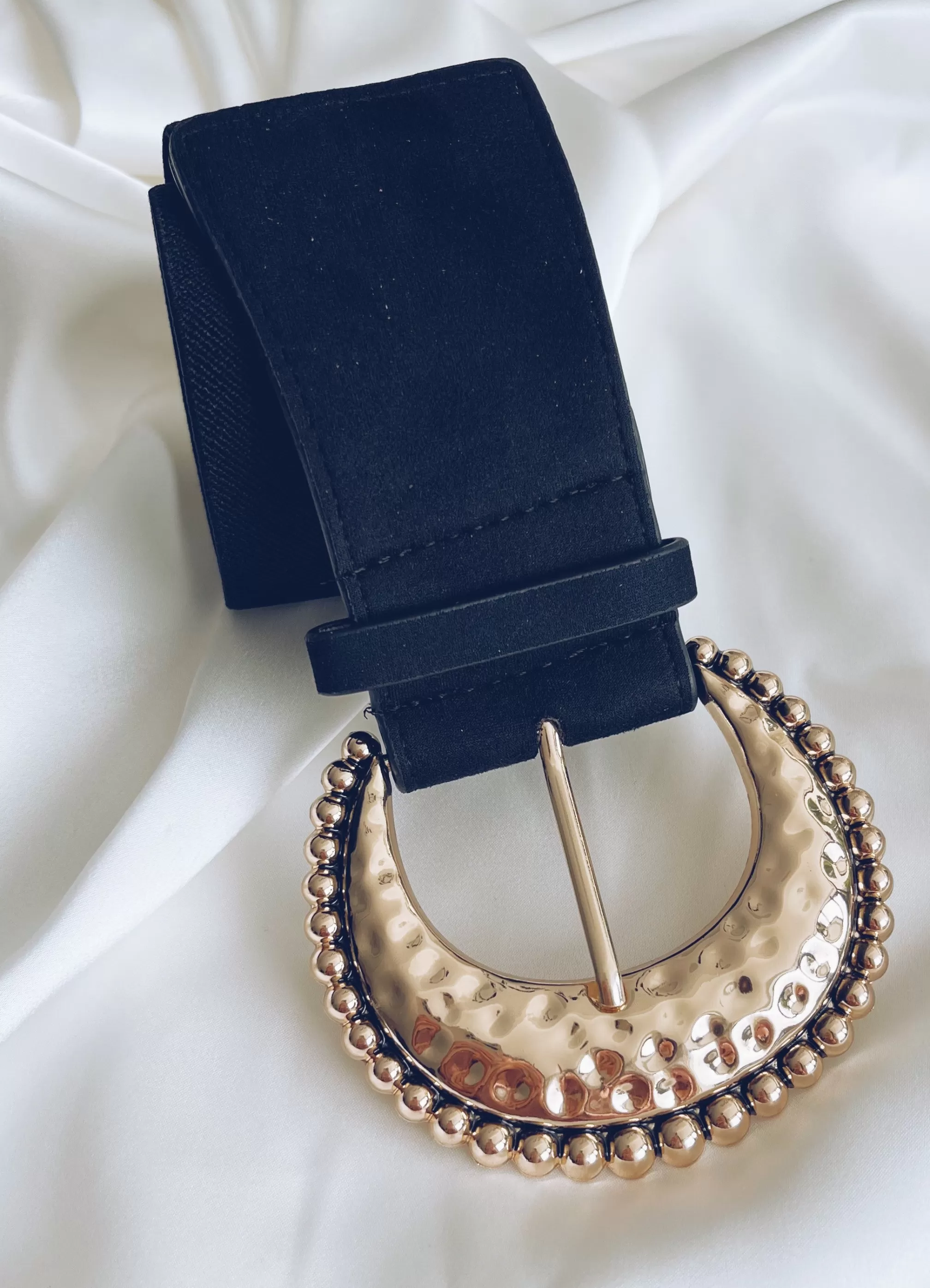 Adjustable Golden hammered buckle Elastic in the backColors : black Lengt…