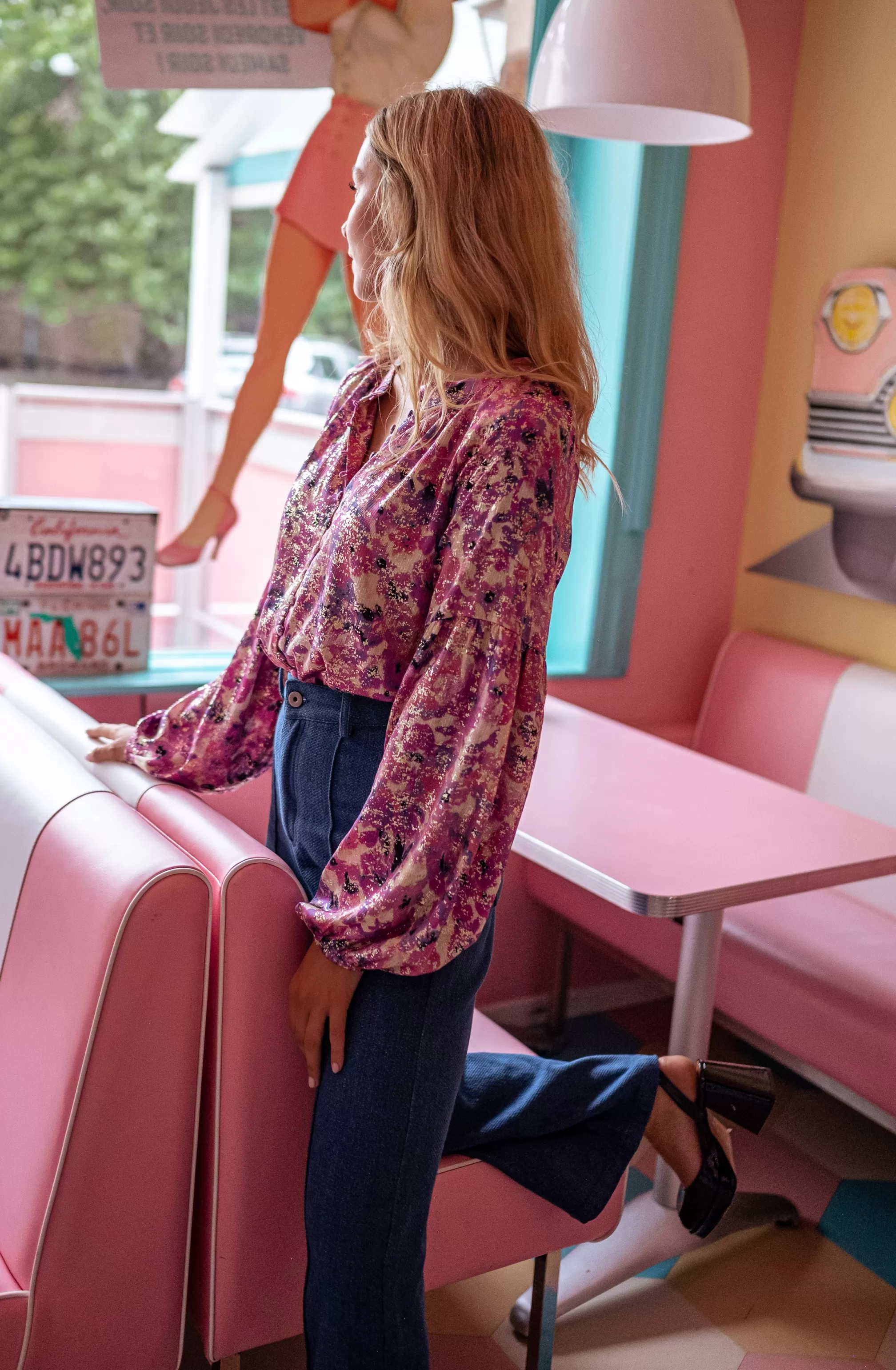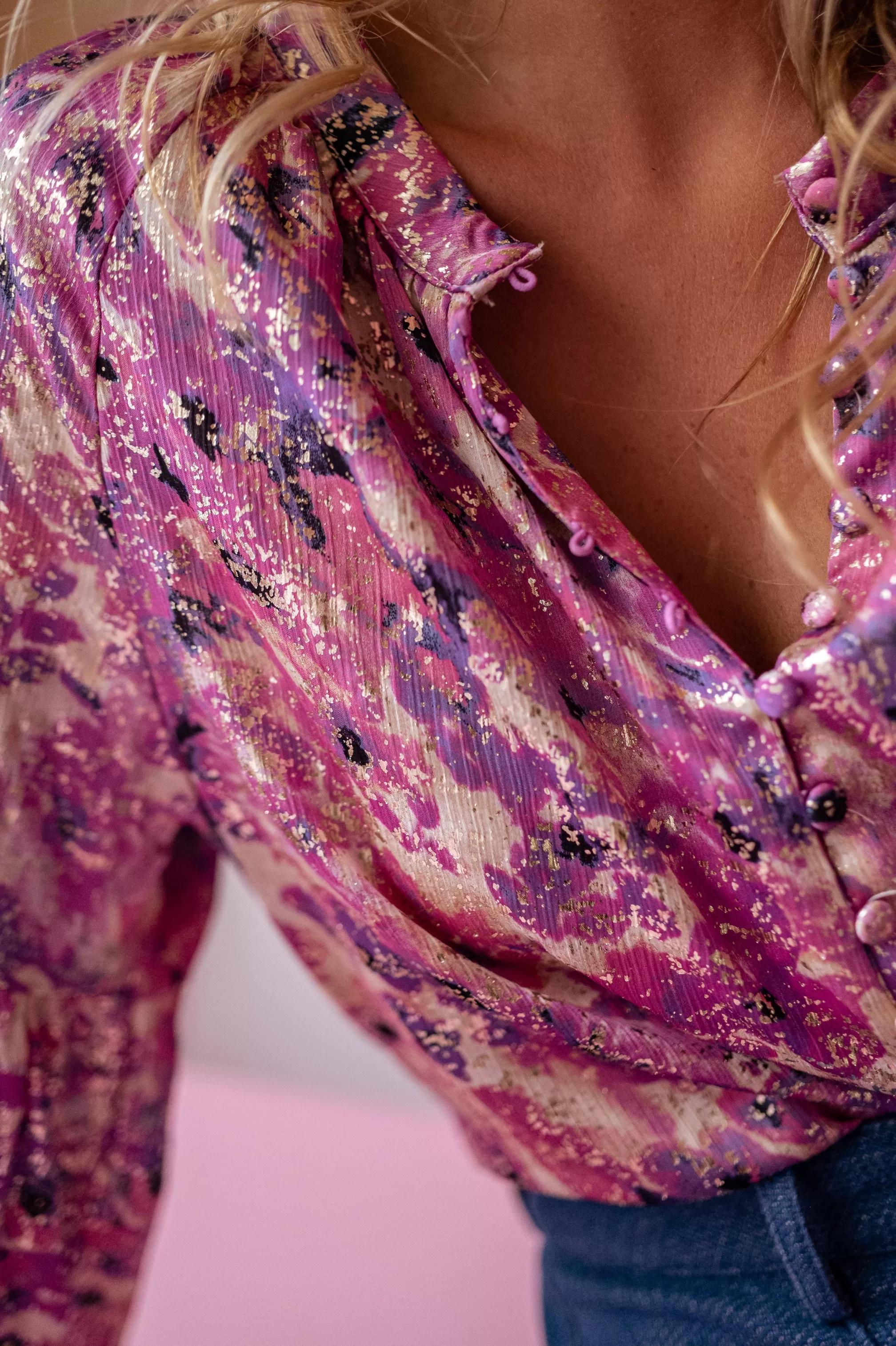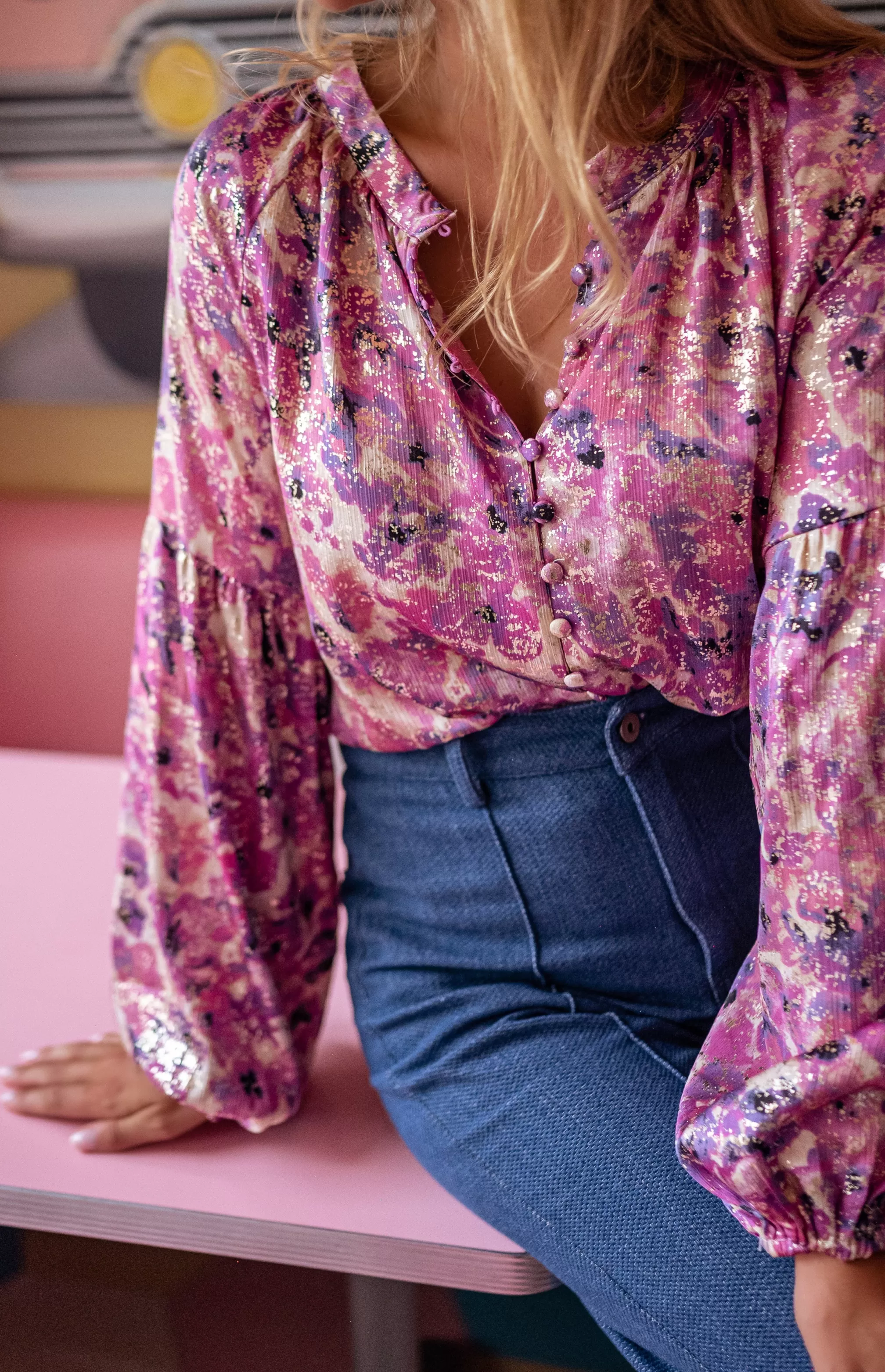 Long sleeves FluidMauve and silvery Balloons sleevesFluidButtons all along the blous…