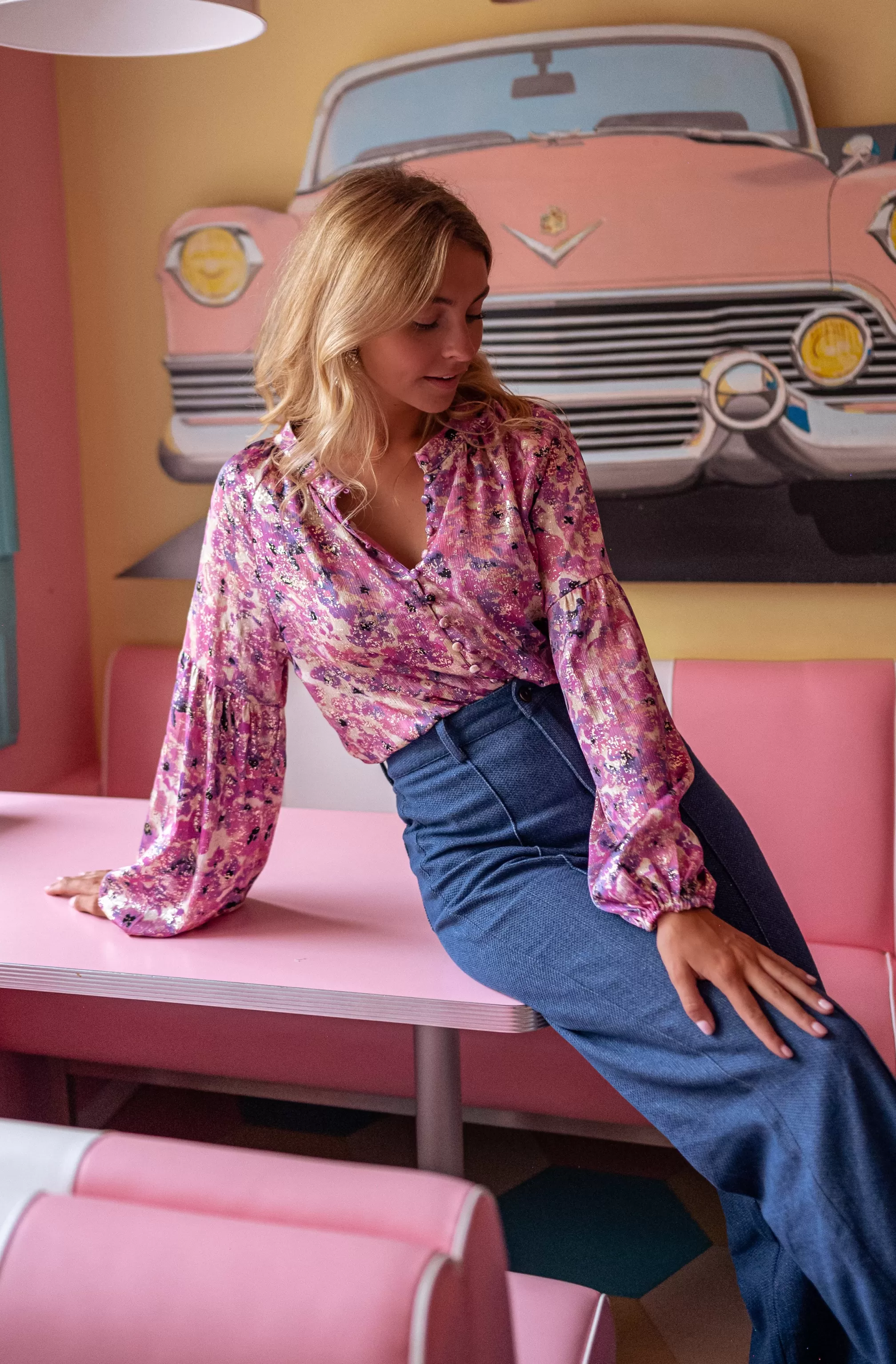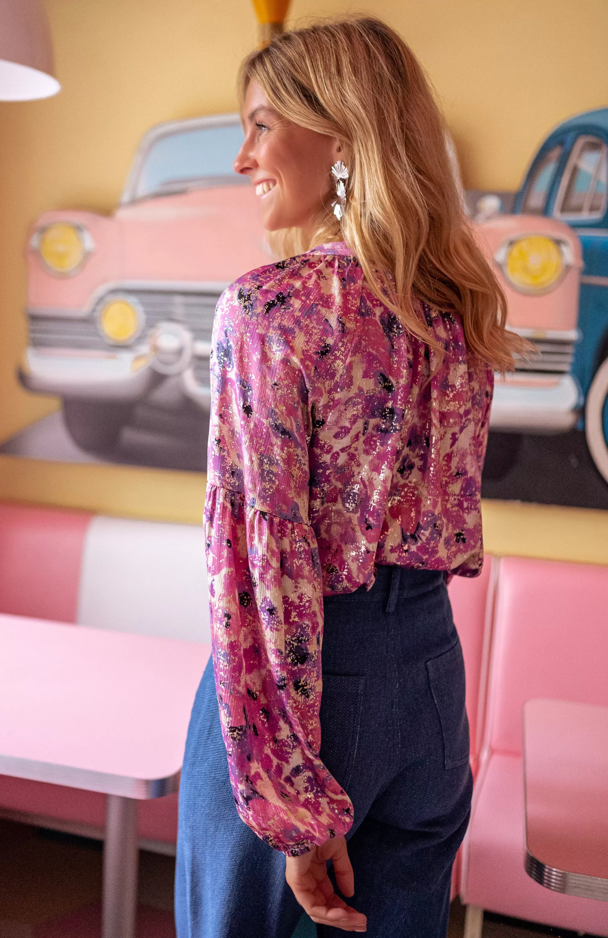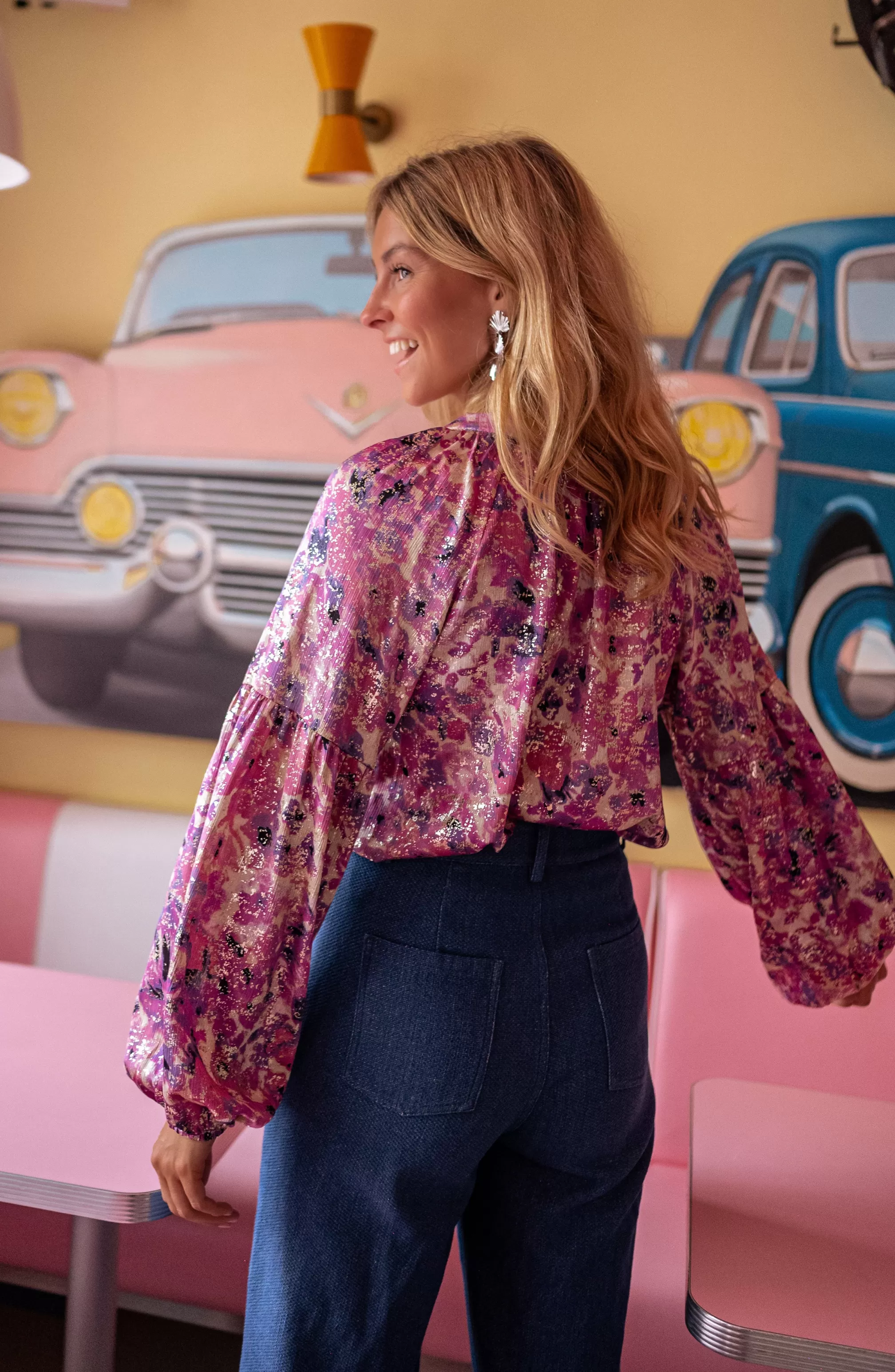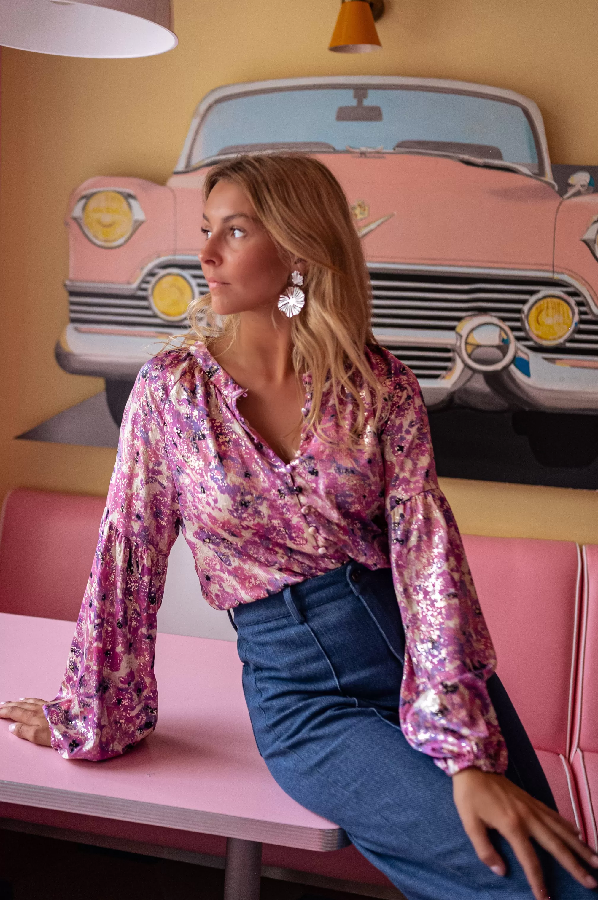 Long sleeves FluidMauve and silvery Balloons sleevesFluidButtons all along the blous…