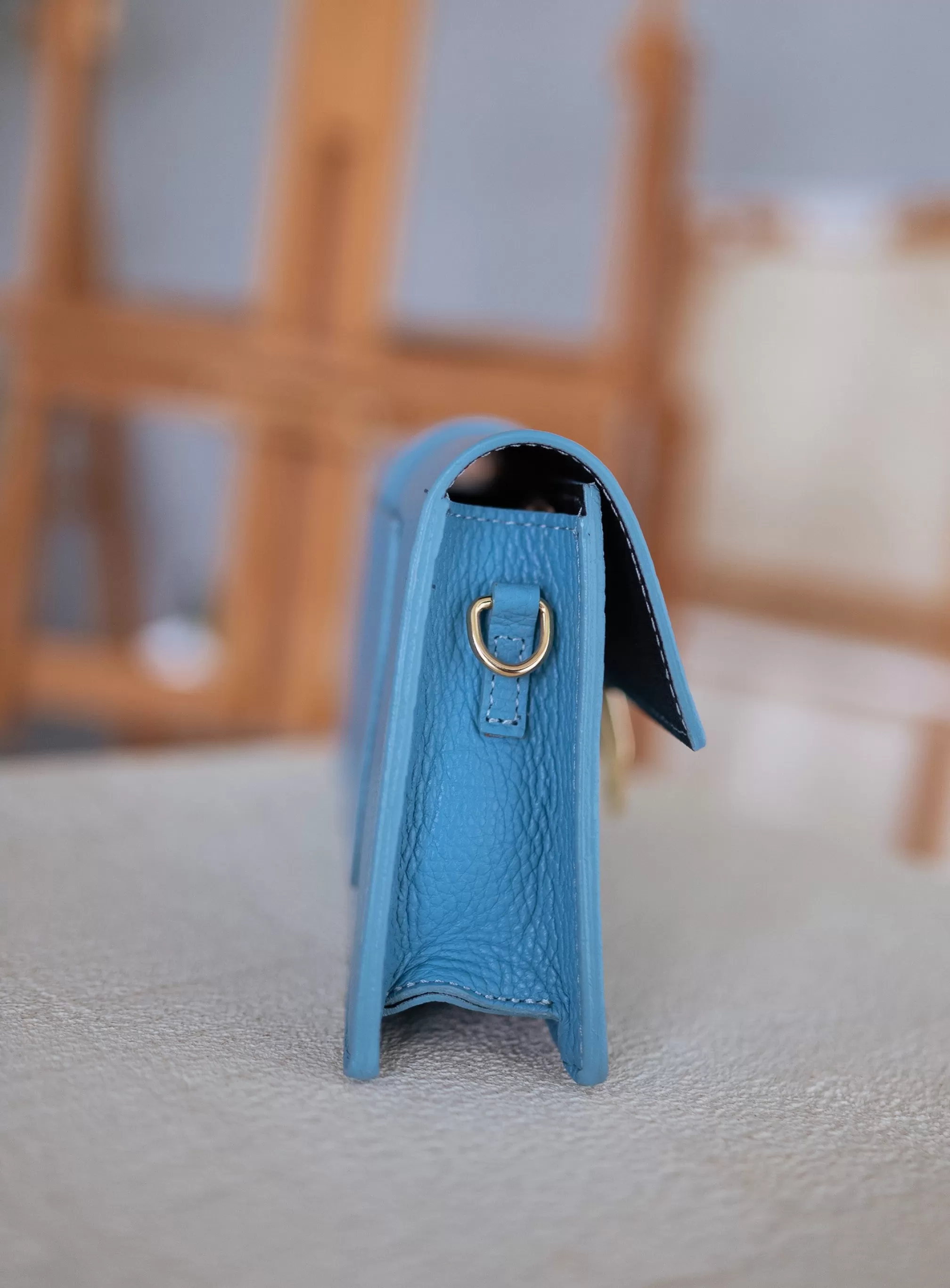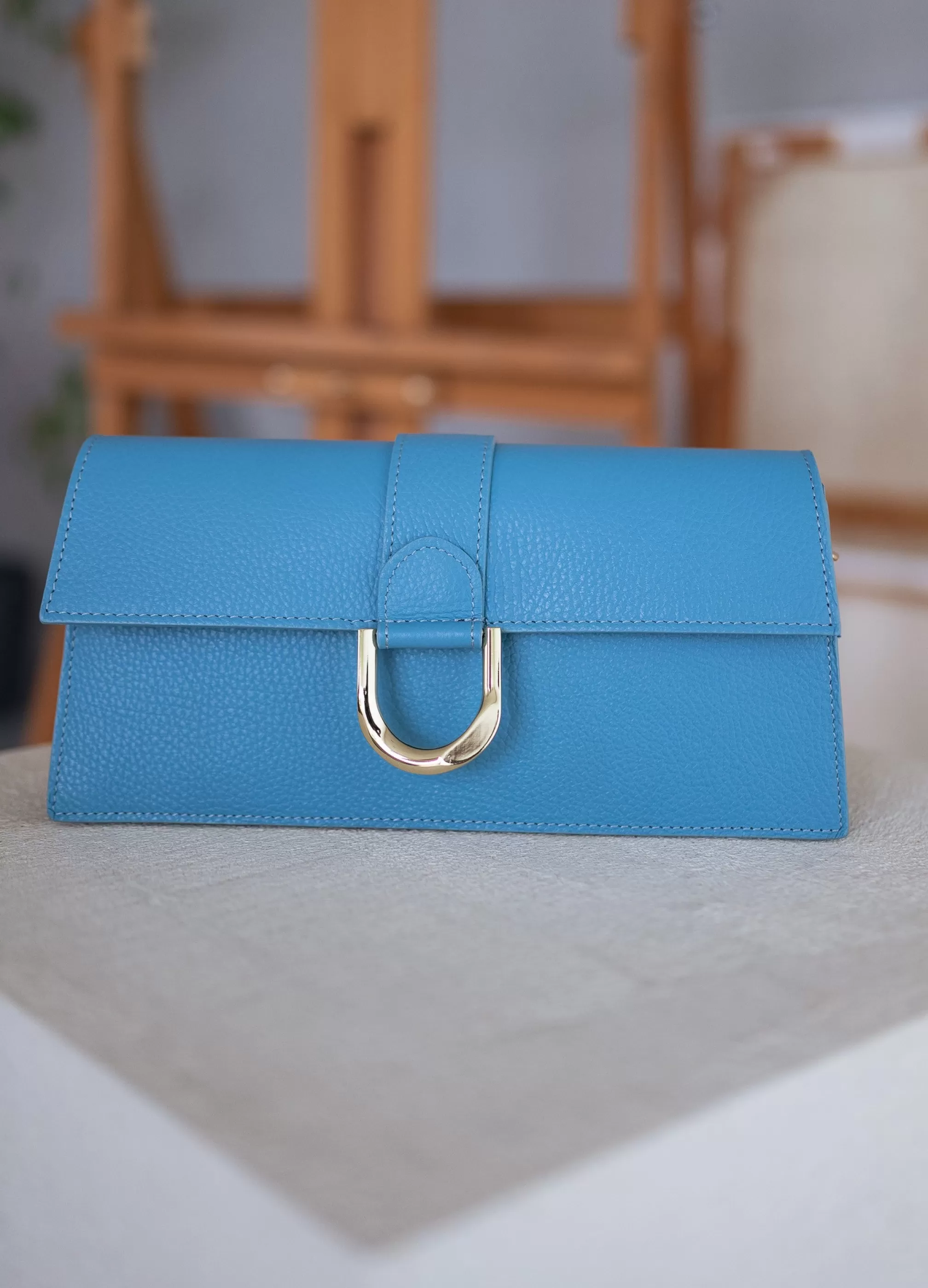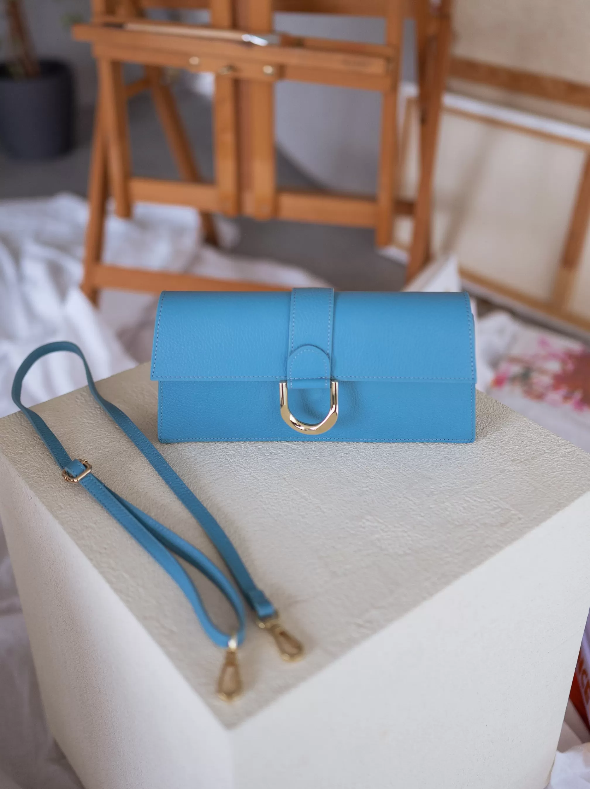 Rectangular shapeGolden buckleTwo straps provided : a short one / a long oneColors : blue …