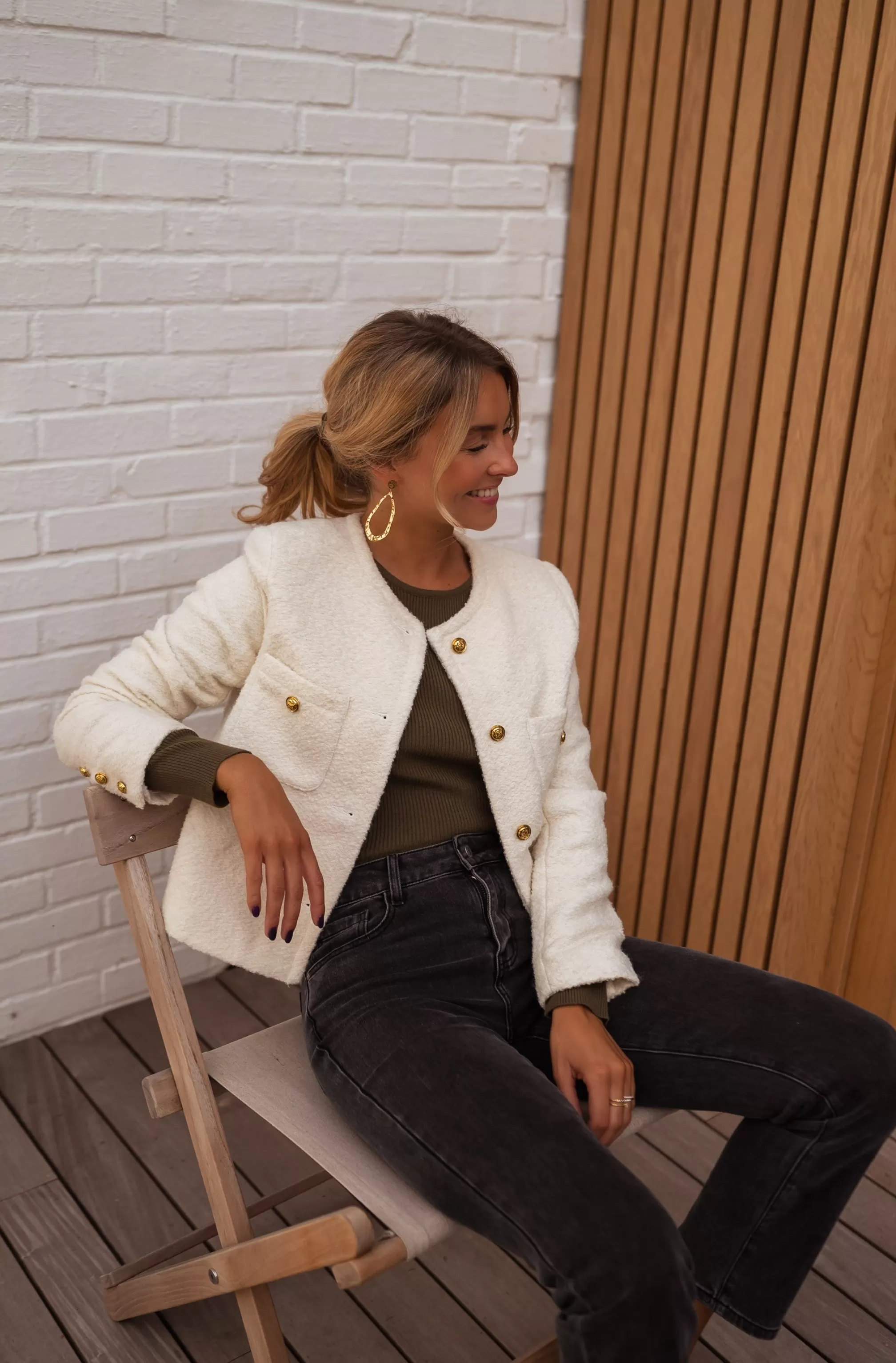 Long sleevesShoulder pads Golden buttons Straight cut Lined Sizes : S / M …