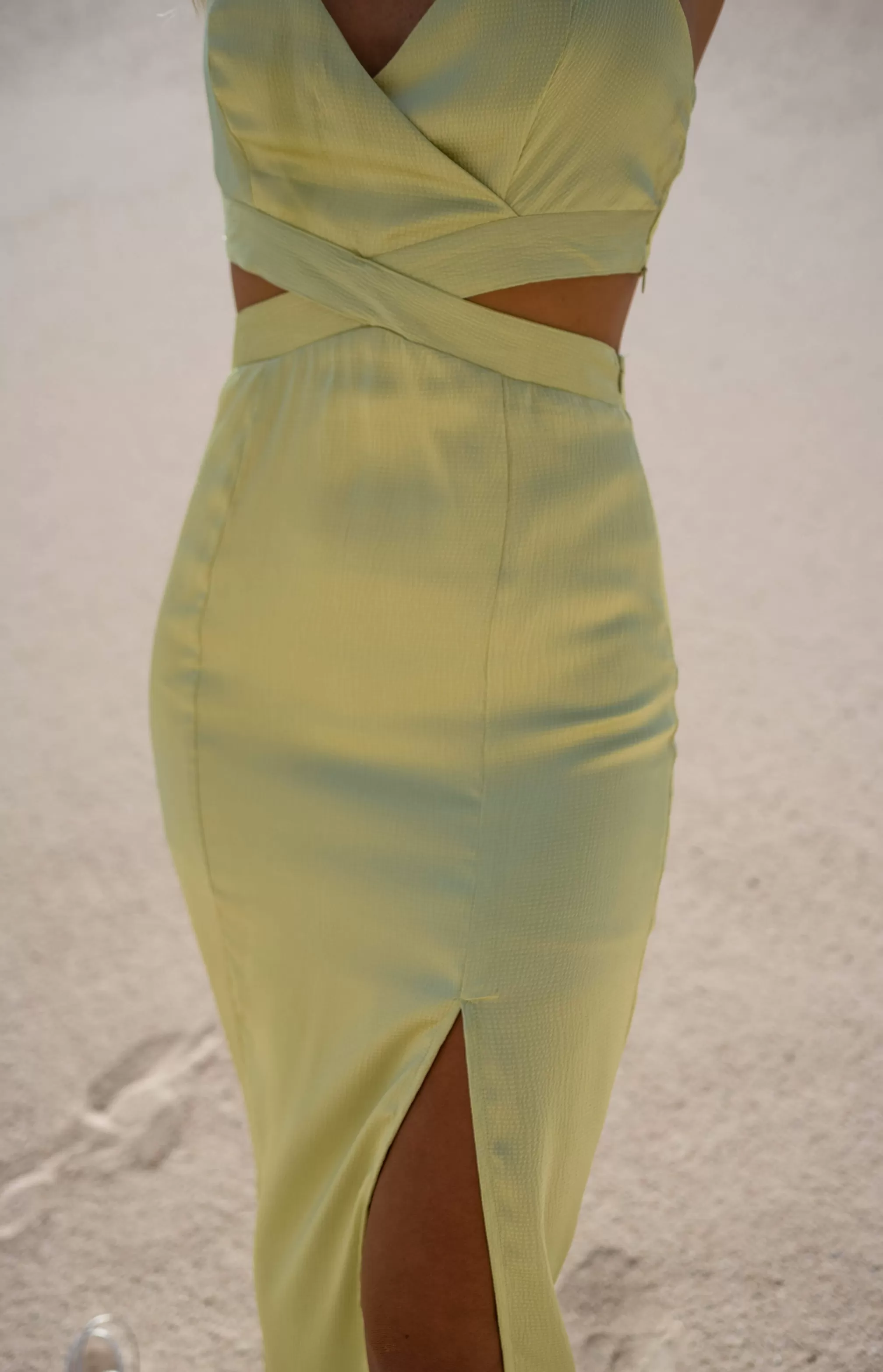 - Side zippers at bust and skirt