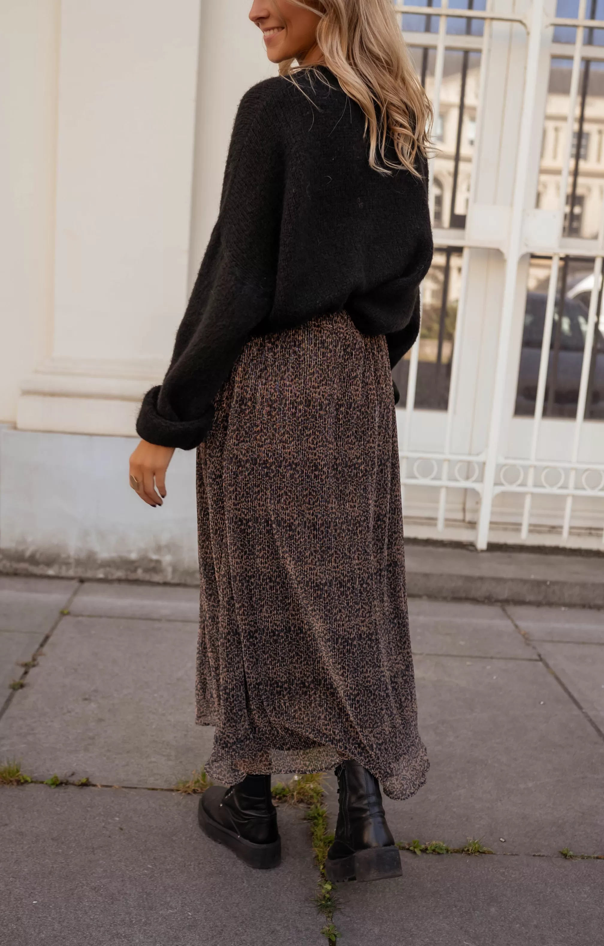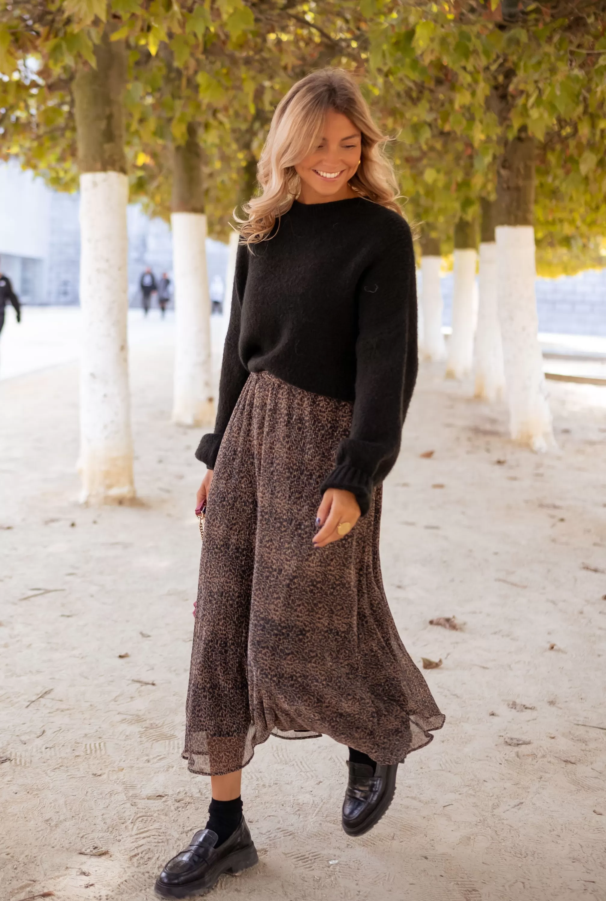 Long skirt Elastic at the waistLinedLeopard pattern with silvery LurexFluidOphélie is 1m…