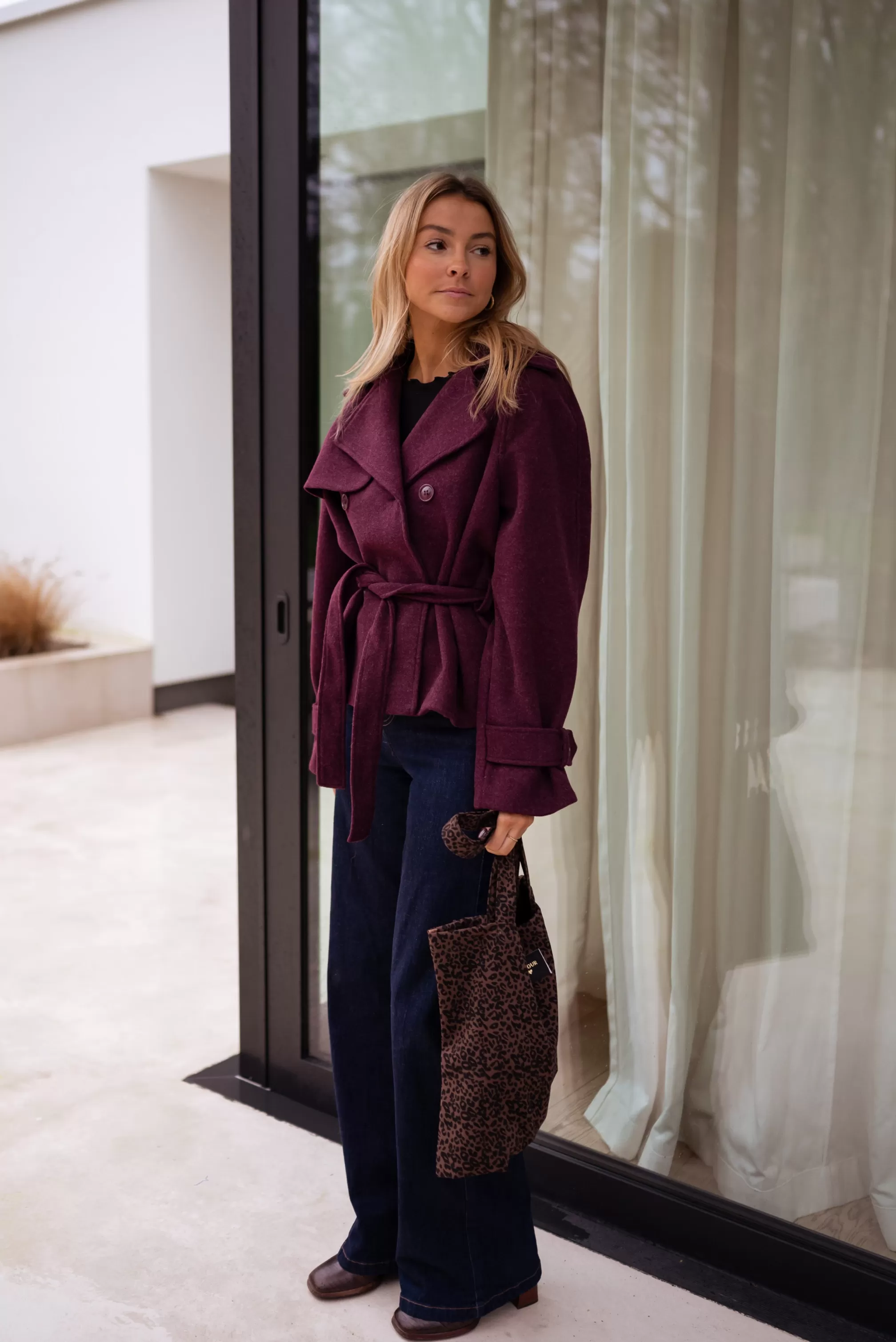 Crop coatOphélie is 1m68 and wears a size S-M Belt to tieLined Two pockets on the f…