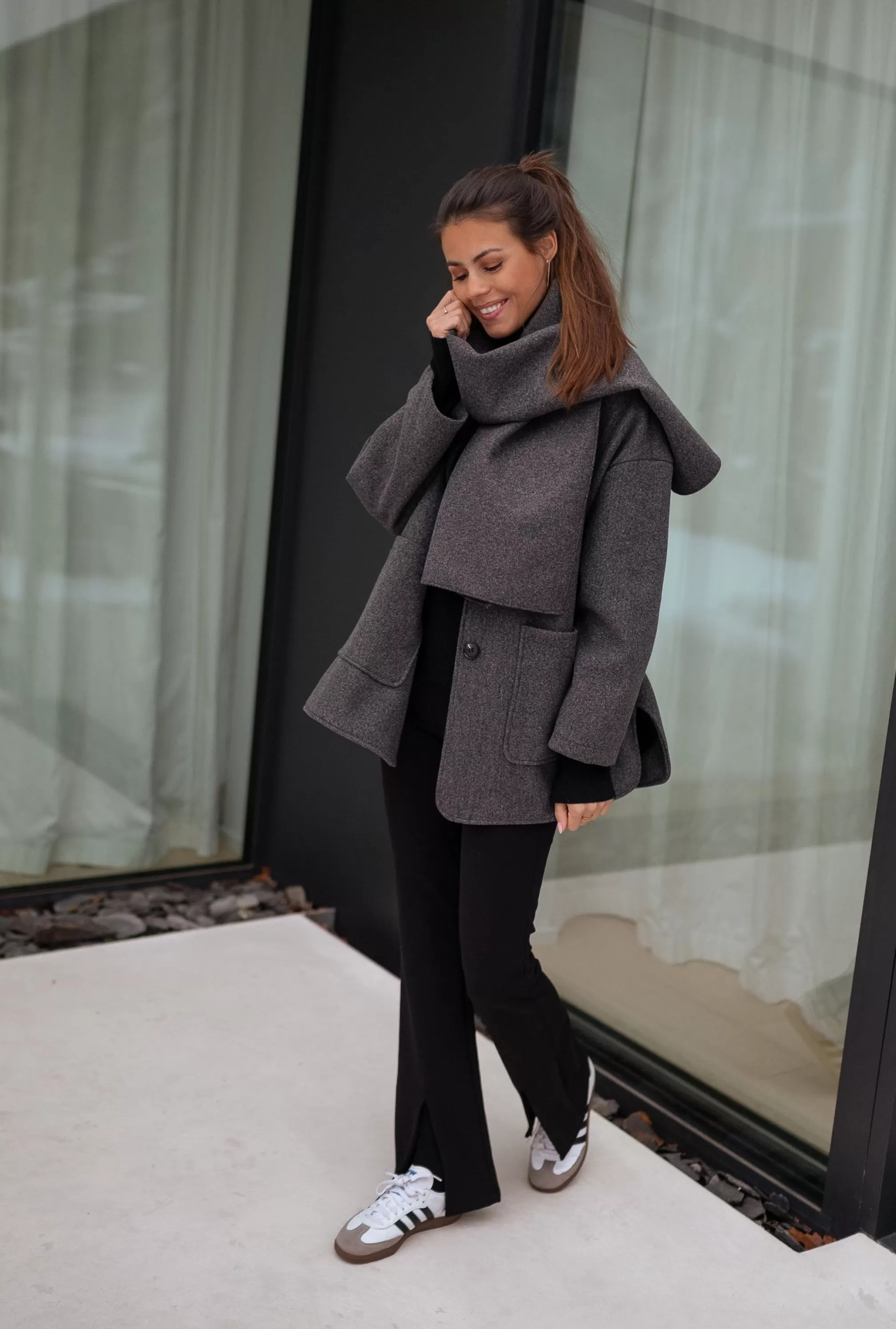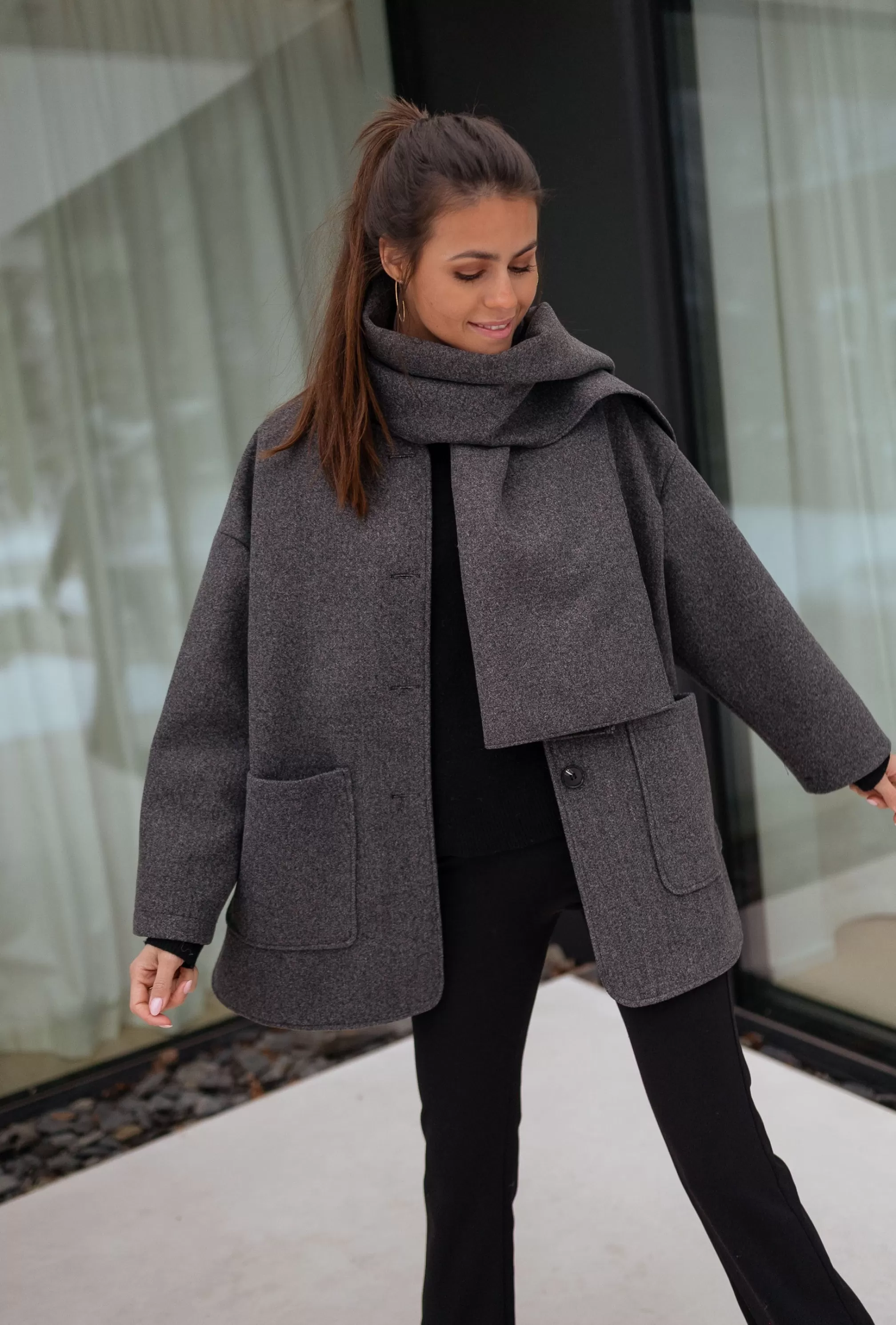 - Gray scarf included
