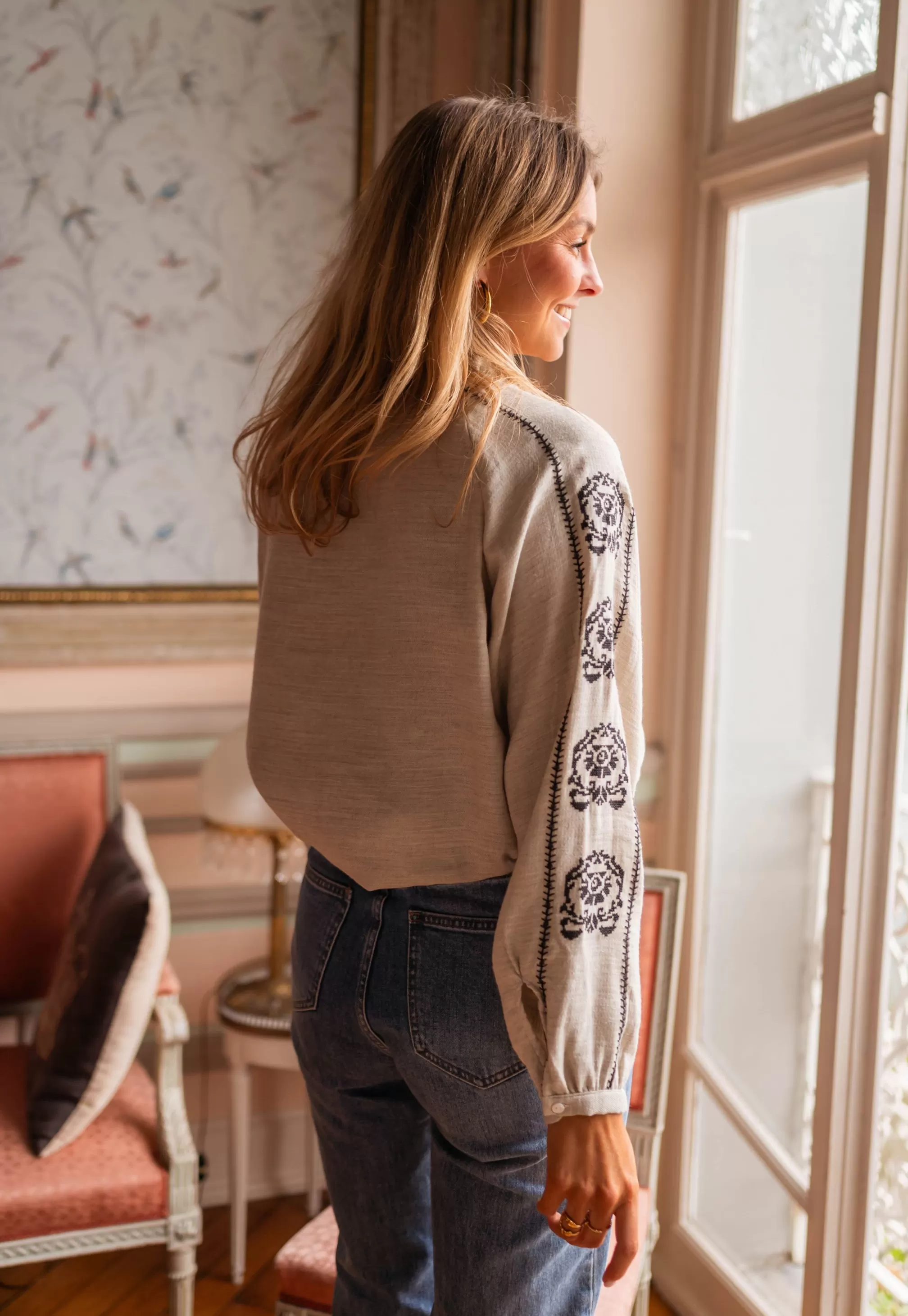 Mandarin collarSlightly loose Ophélie is 1m68 and wears a size S-MManon is 1m69 and wear…