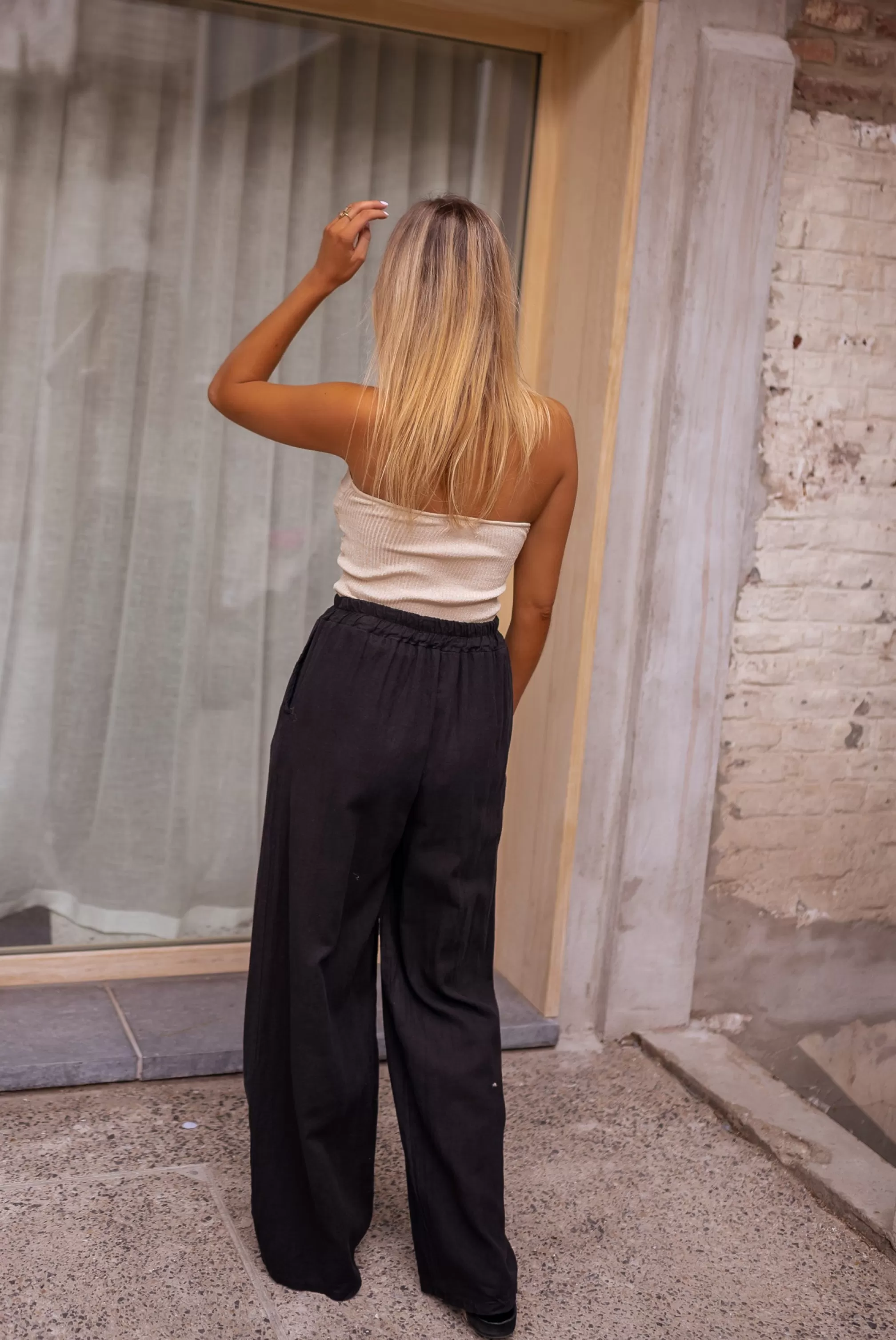 Elastic at the Size Long Fluid Linen pockets At the front of the pants Slightly transparent O…