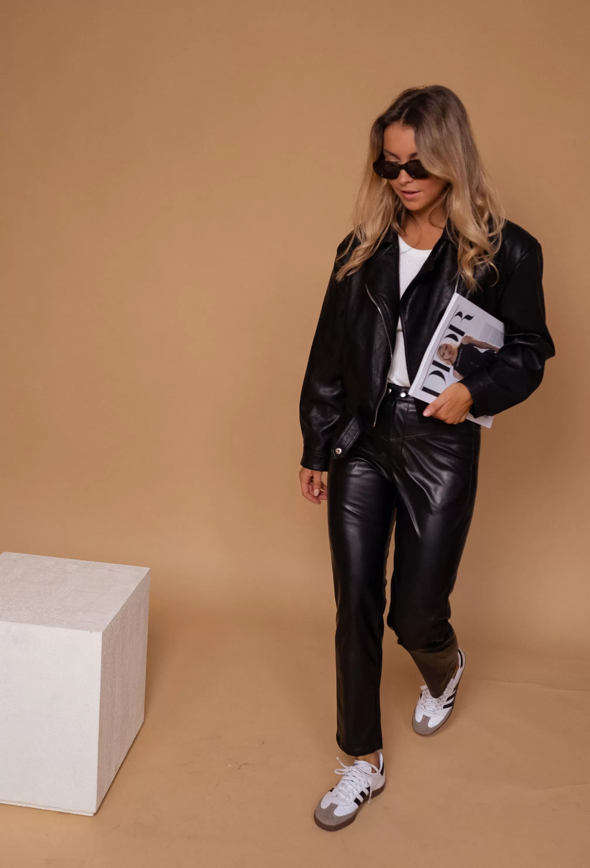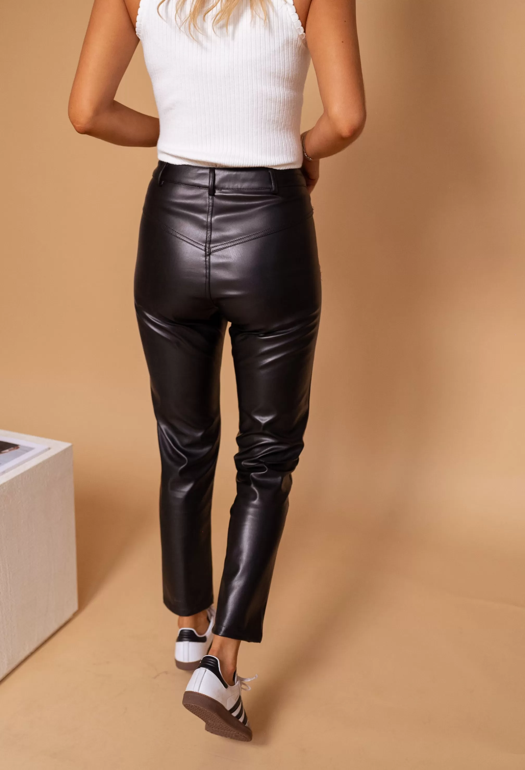 - Black leatherette pants