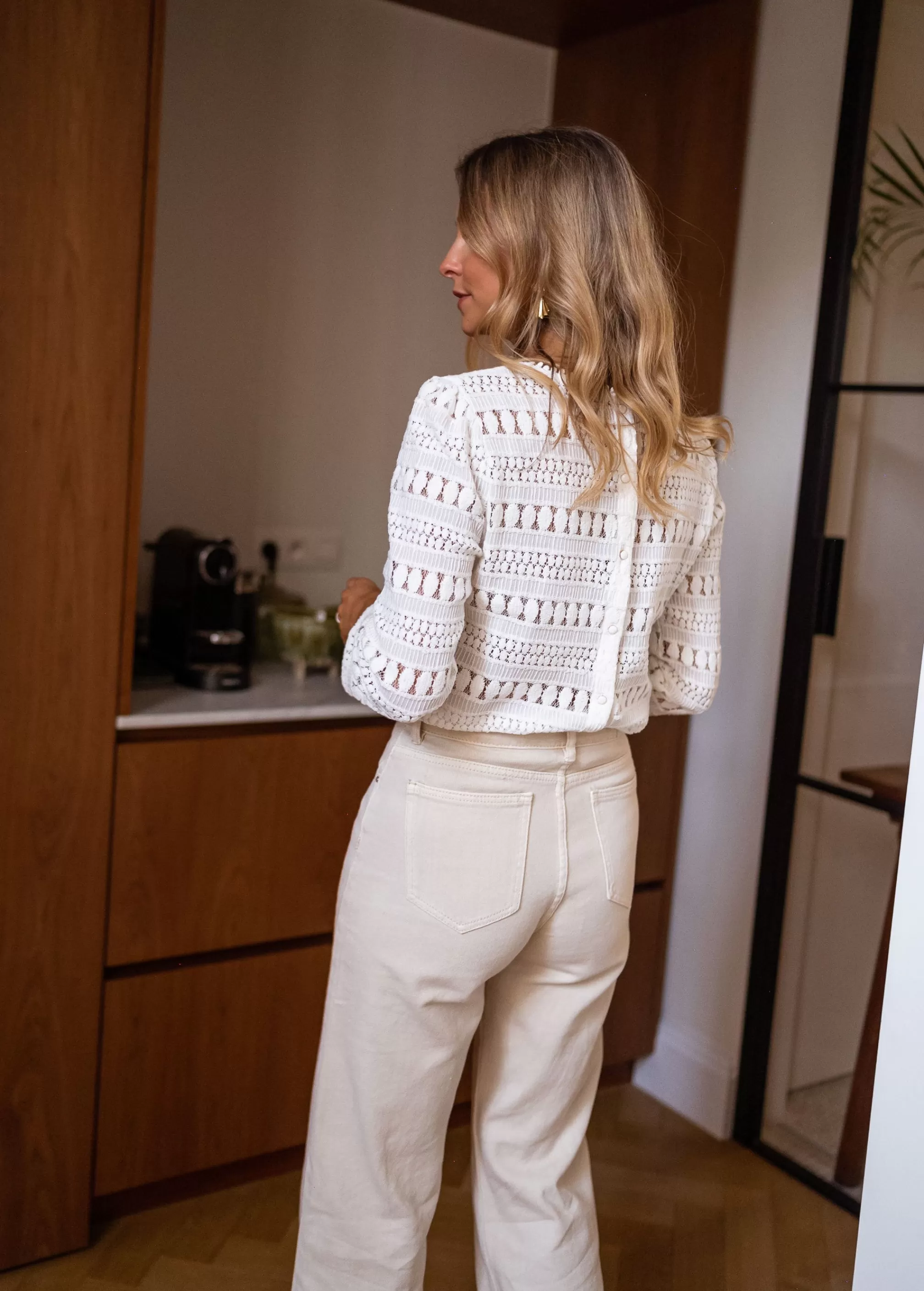 Buttons on the entire backEcru laceOphélie is 1m68 and wears a size SLong sleevesCrewneckNot …