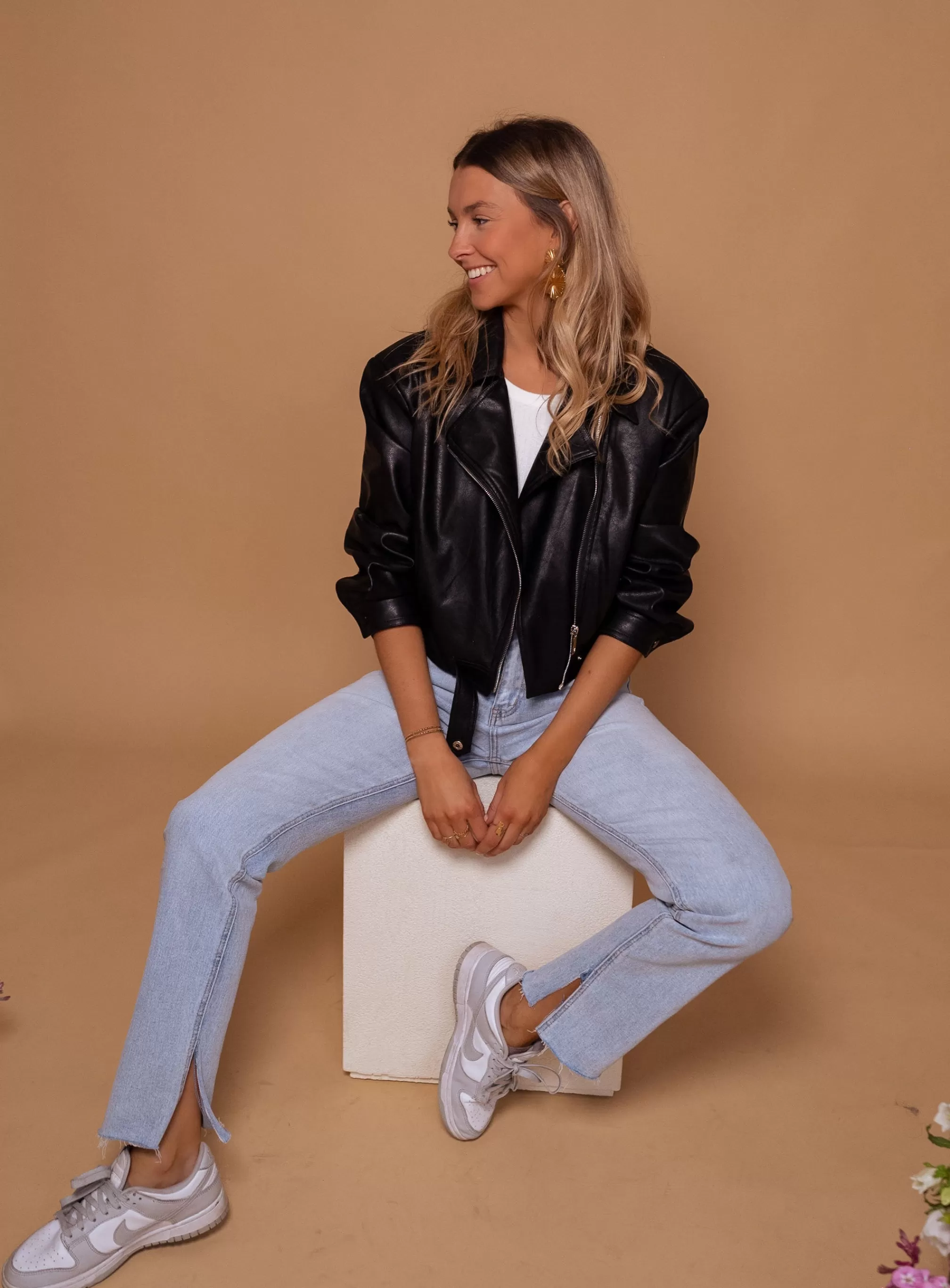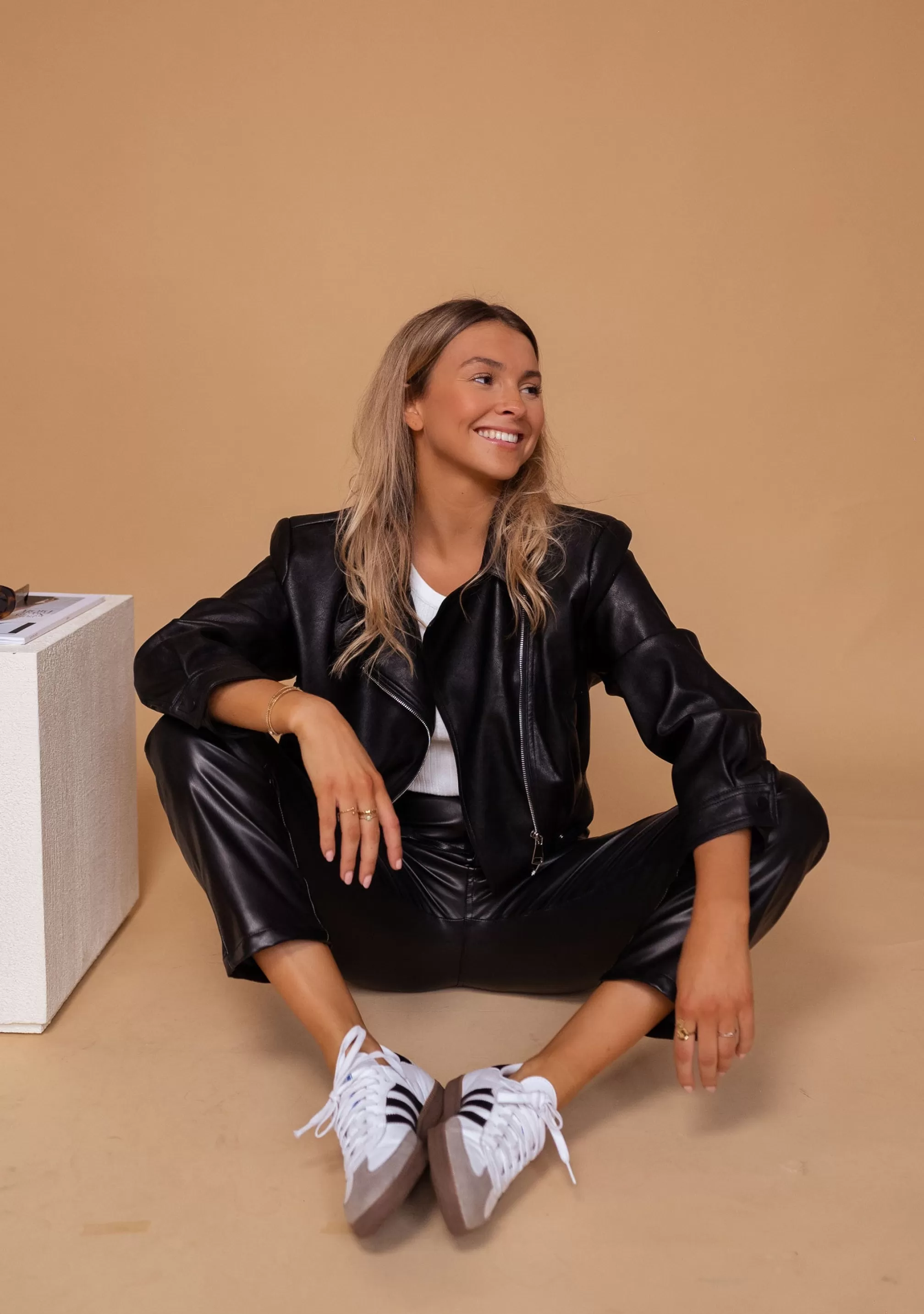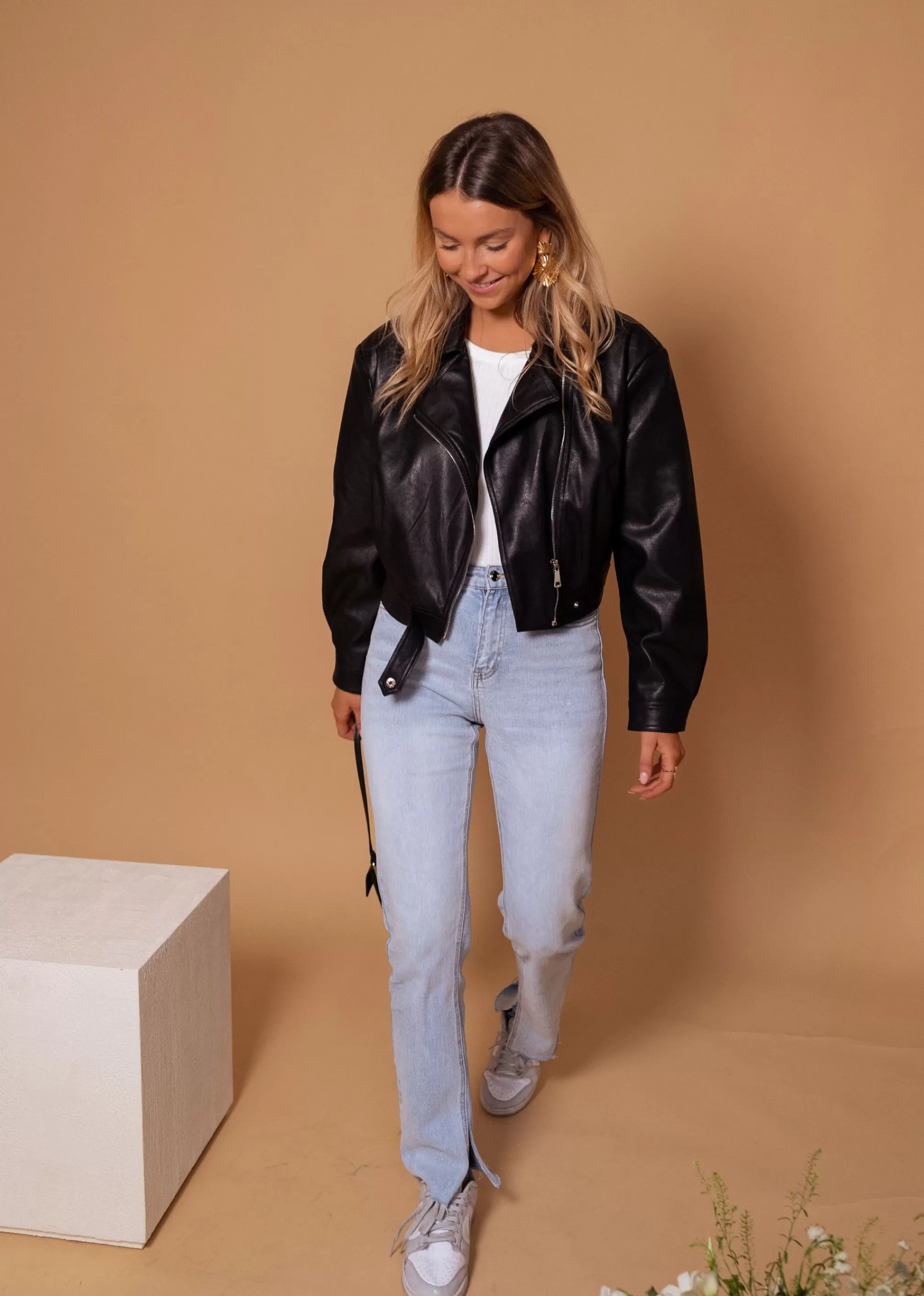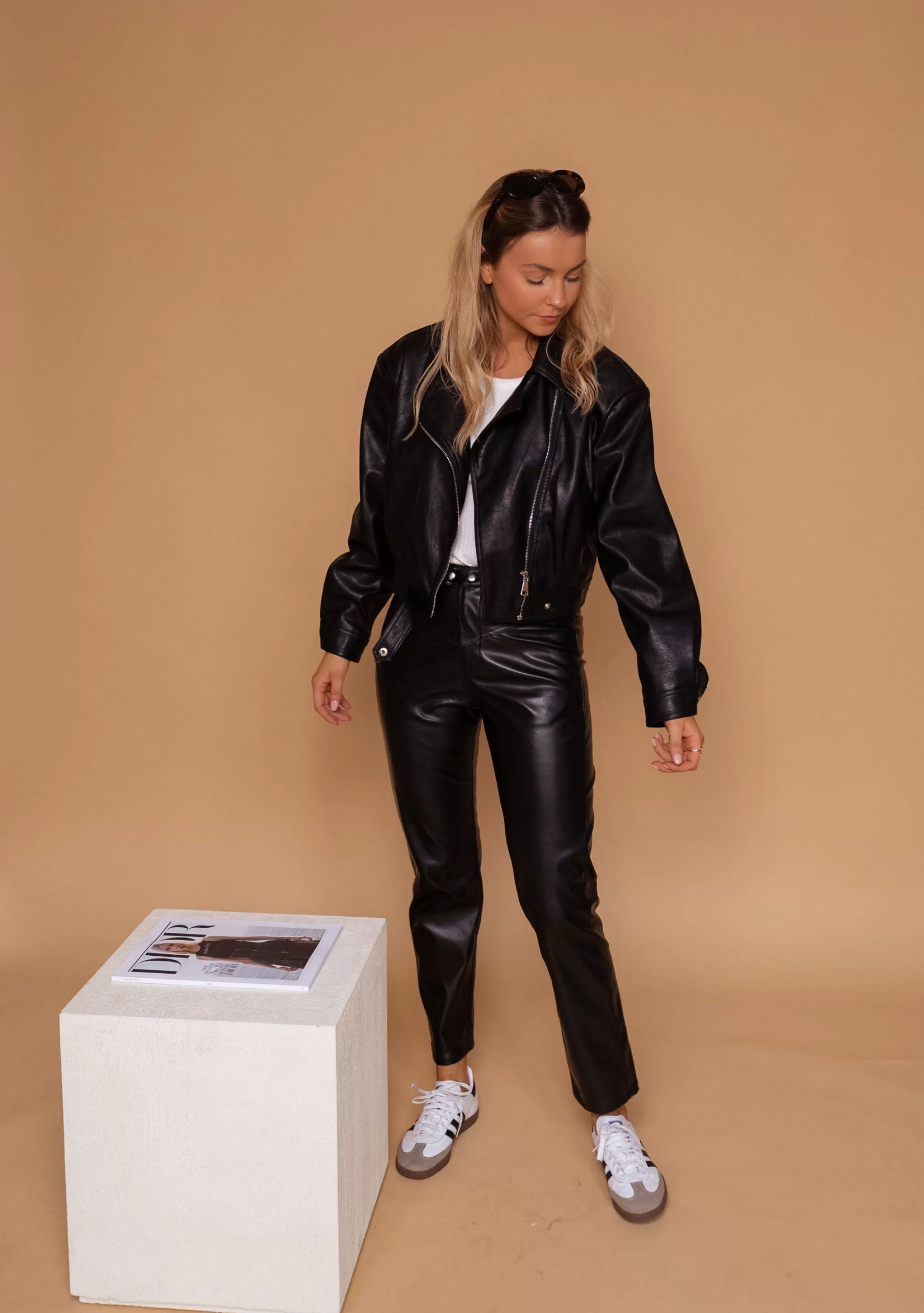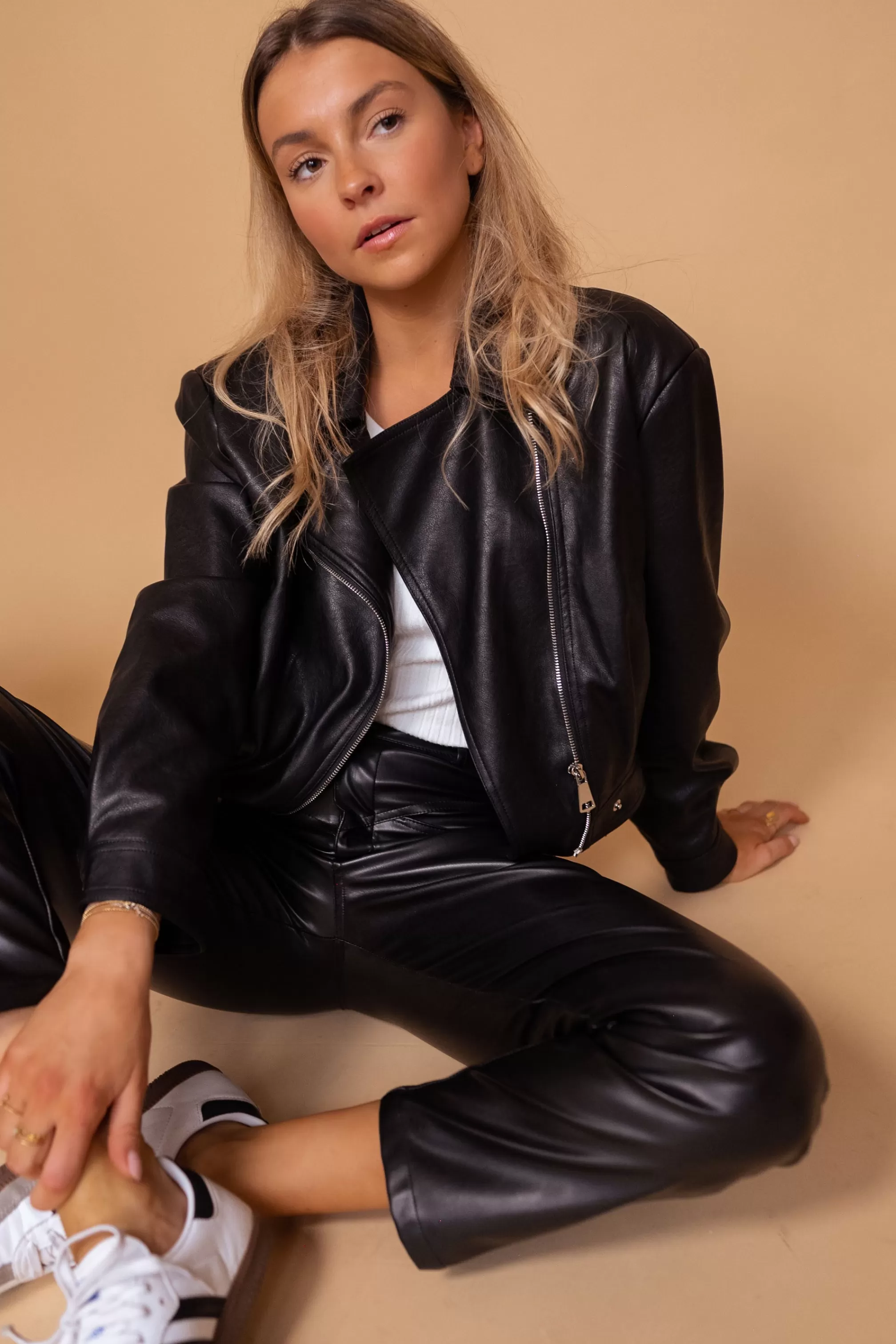 Perfecto in black imitation leatherSlightly cropOphelia is 1m68 and wears a size SLiningPocket…