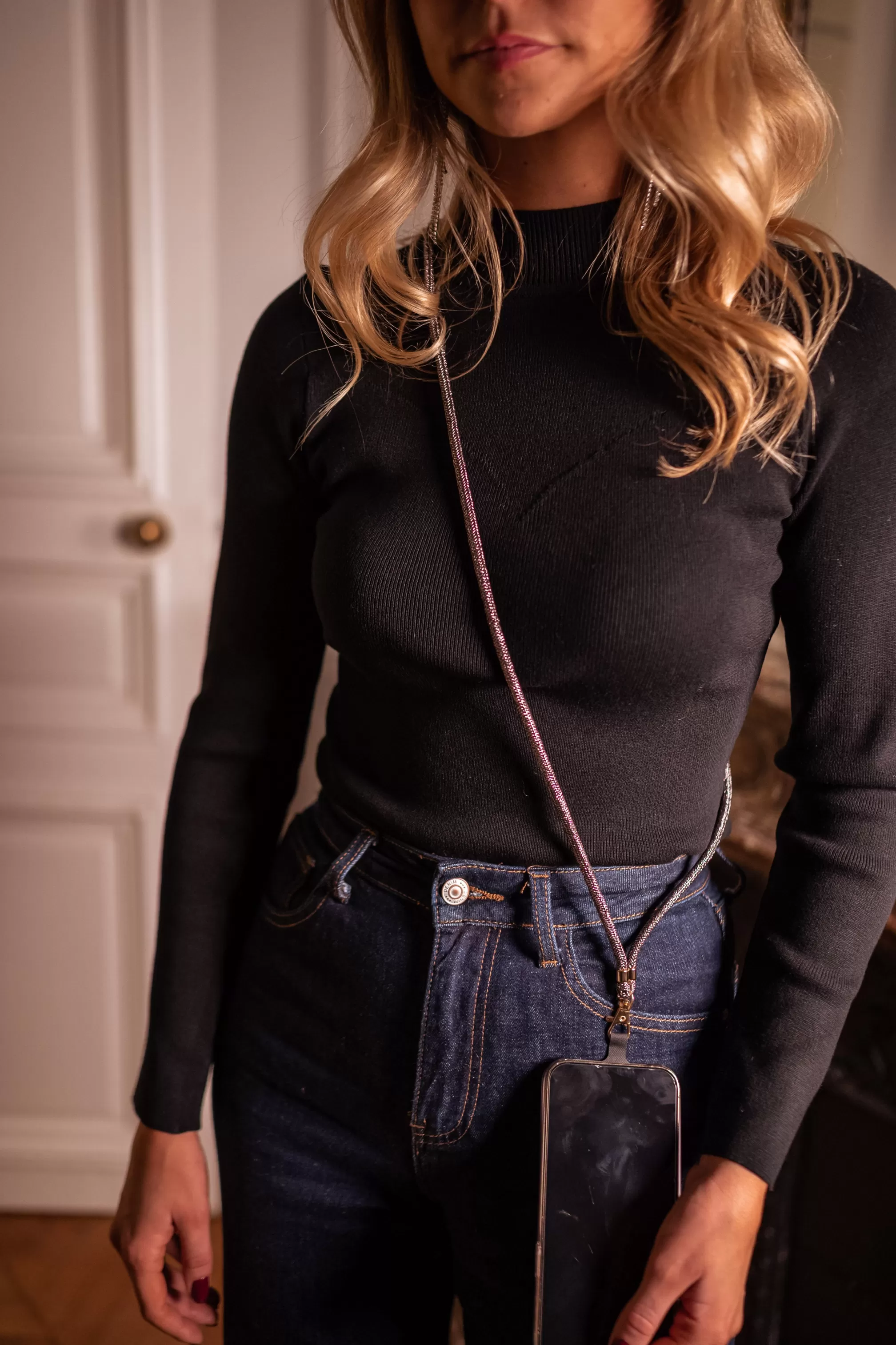 Soft braided lanyardSilvery finishClear plastic to insert in the phone case in order to use th…