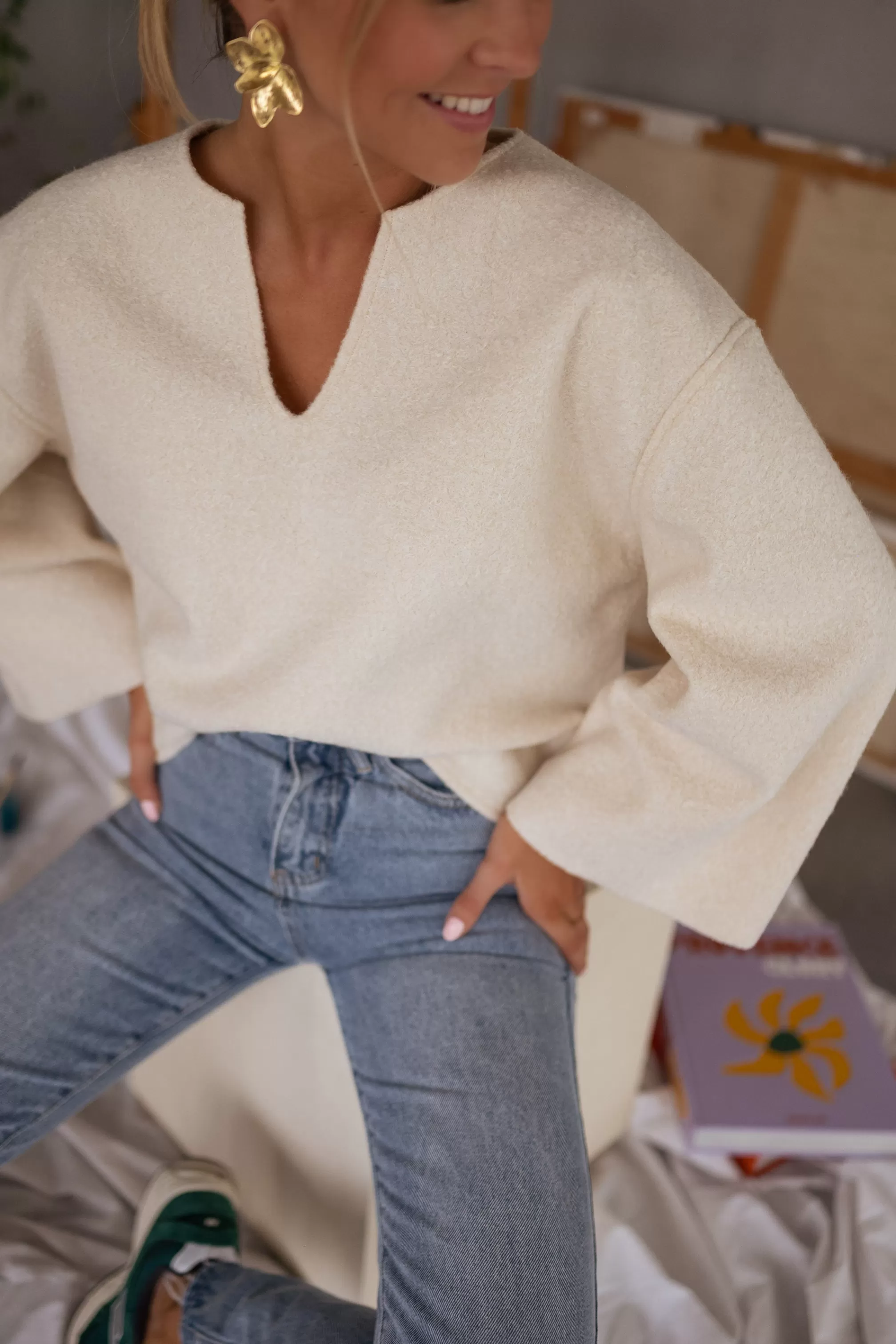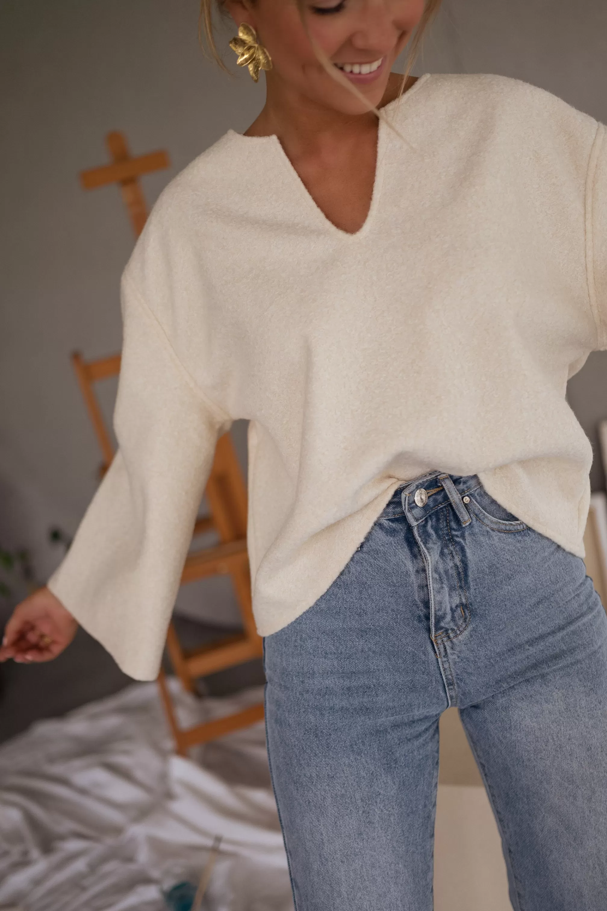 V-neckSlightly looseOphélie is 1m68, Larissa is 1m74 and both usually wear a size SLong sligh…