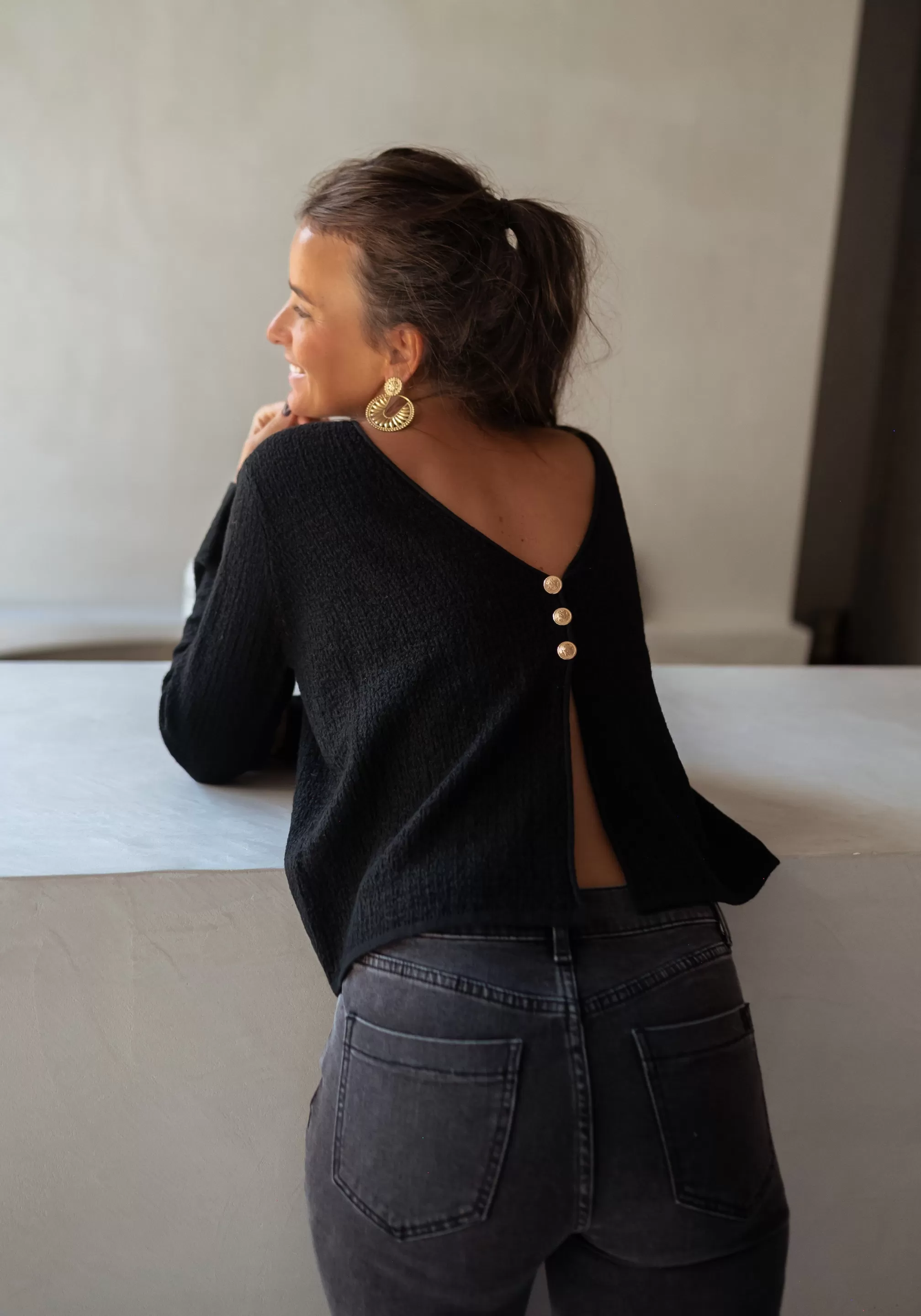 Long sleevesCan be worn both ways Soft3 golden buttons Little opening under the butt…